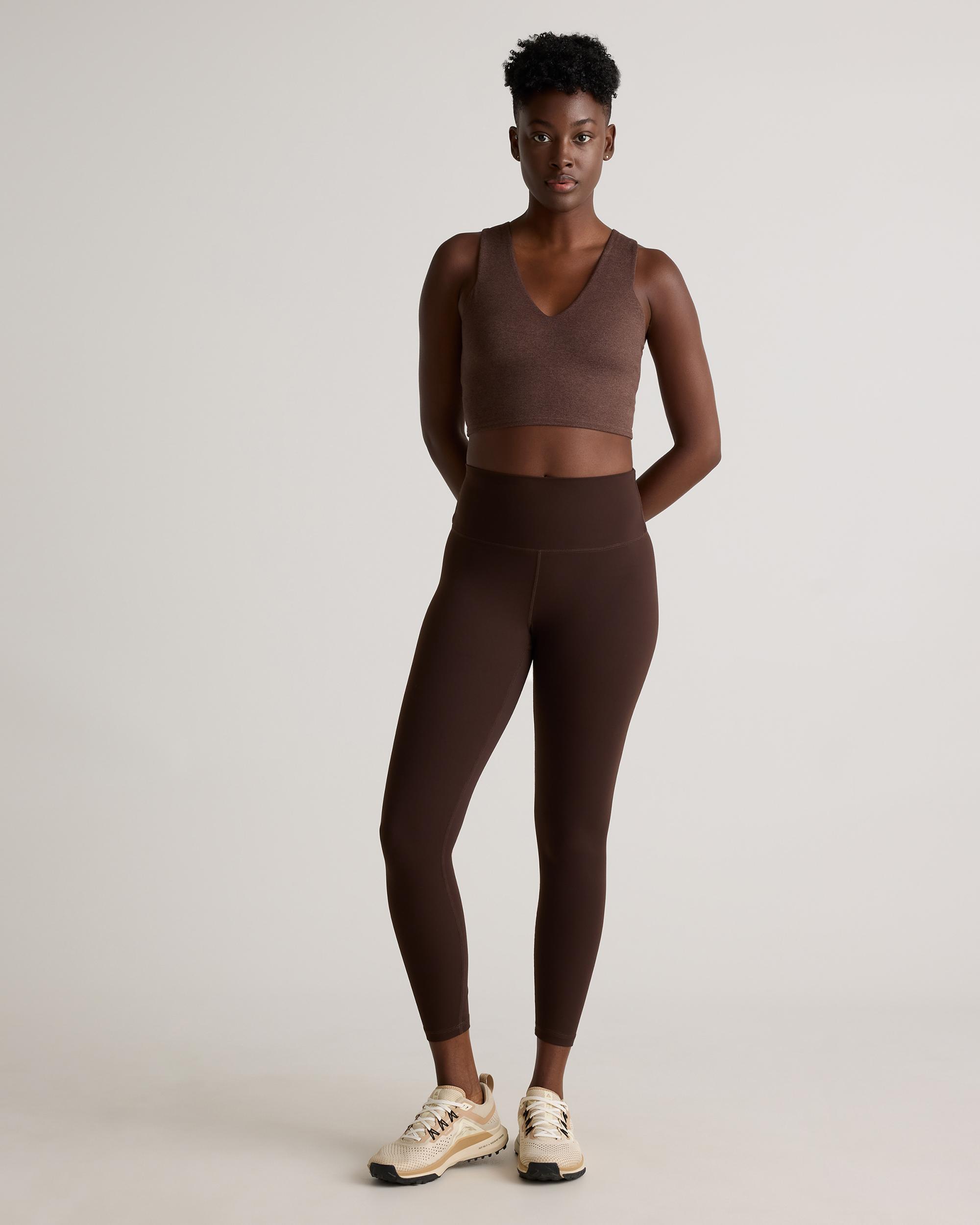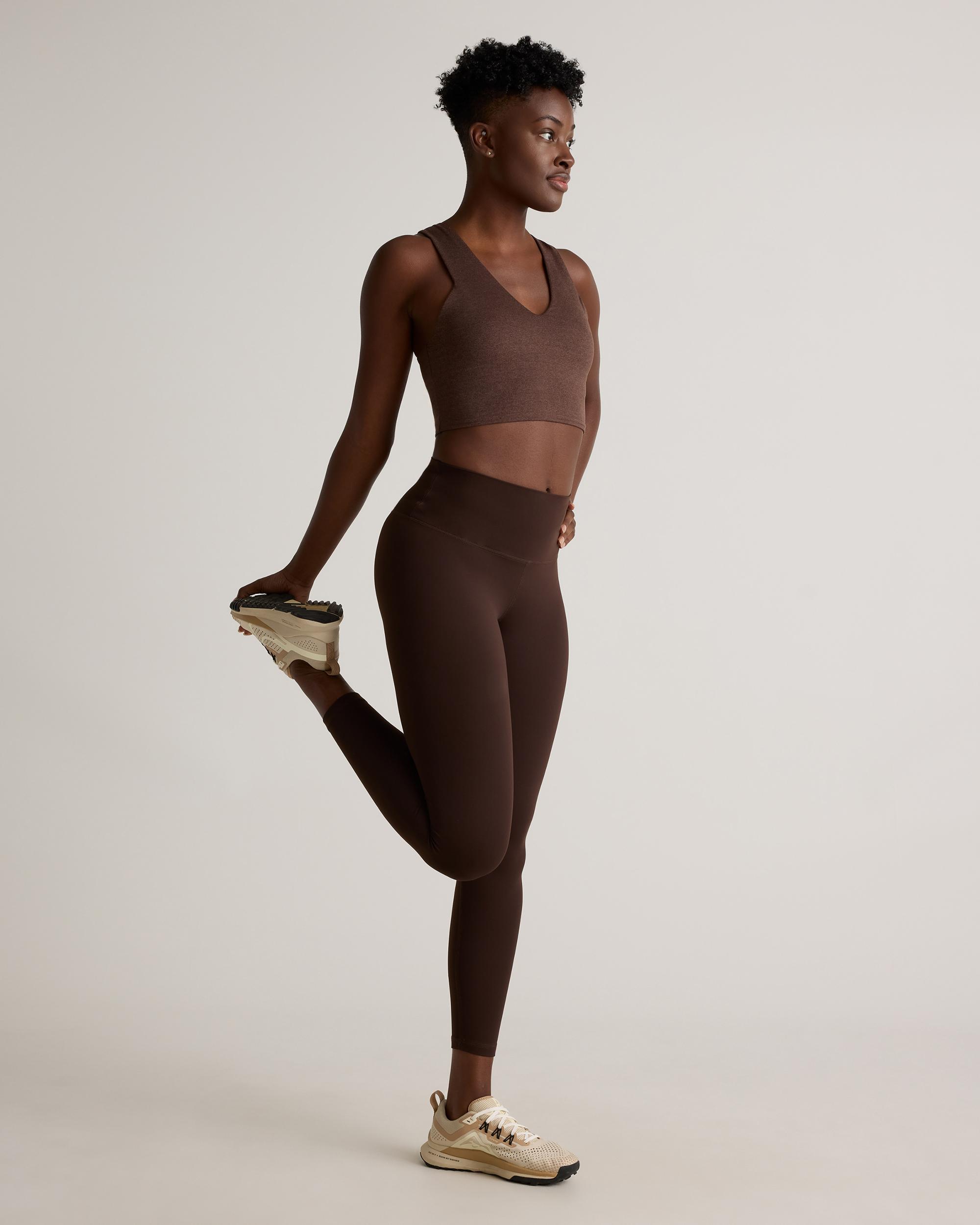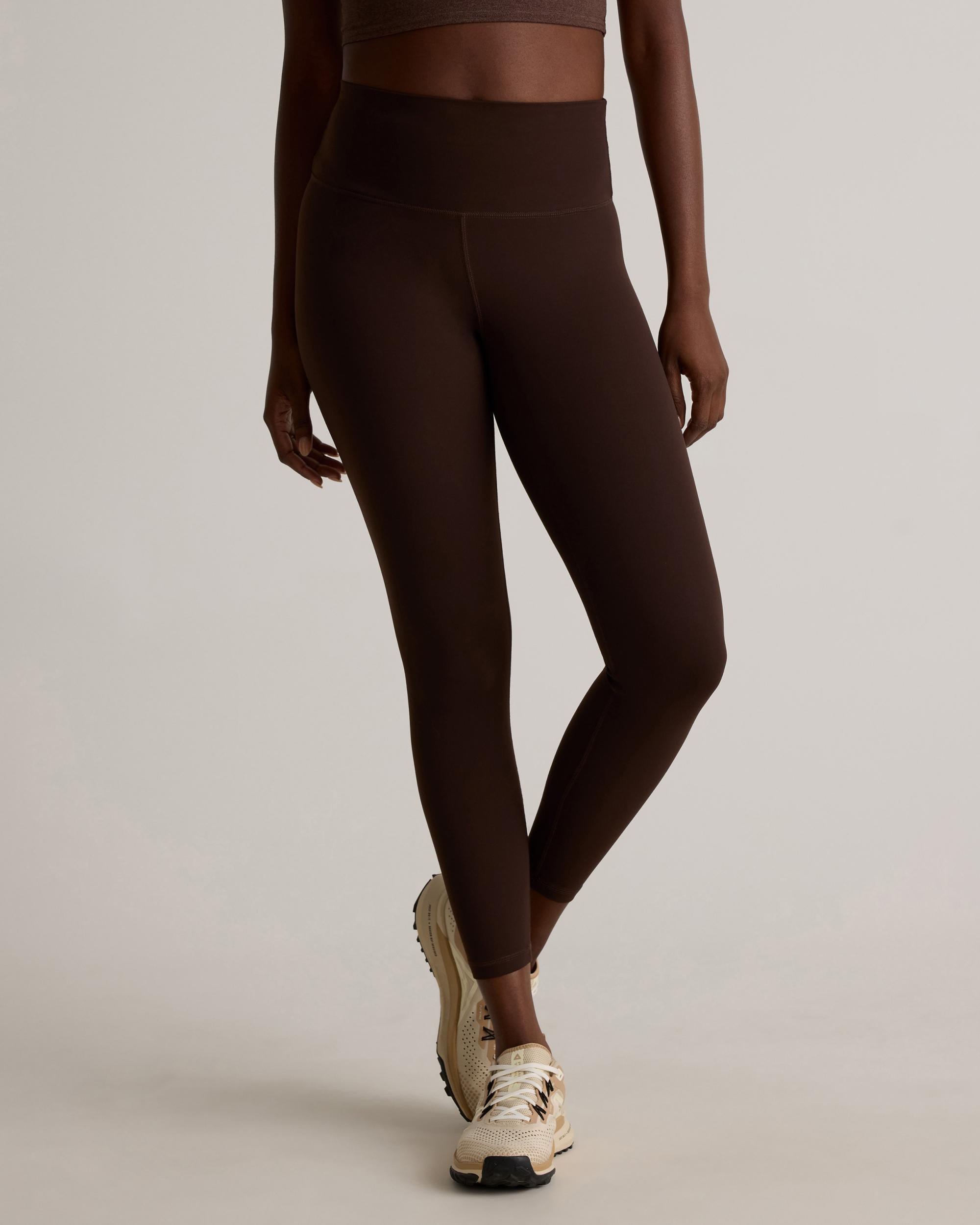 The Power-Up High-Rise Training Legging is designed for your most intense training sessions. Our Power-Up fabric is quick-drying, moisture-wicking and anti-microbial which makes it perfect for sweaty workouts. The 4-way stretch allows for full range of motion, perfect for squats, jumps, and weight lifting. The drop-in waistband pocket provides convenient storage for personal items, and the internal adjustable waistband ensures a secure and comfortable fit. If you prefer exterior side pockets, try our Power-Up High-Rise Training Pocket Legging. | Quince | Women's Power-Up High-Rise Training Legging in Espresso, Size Medium, Nylon/Spandex