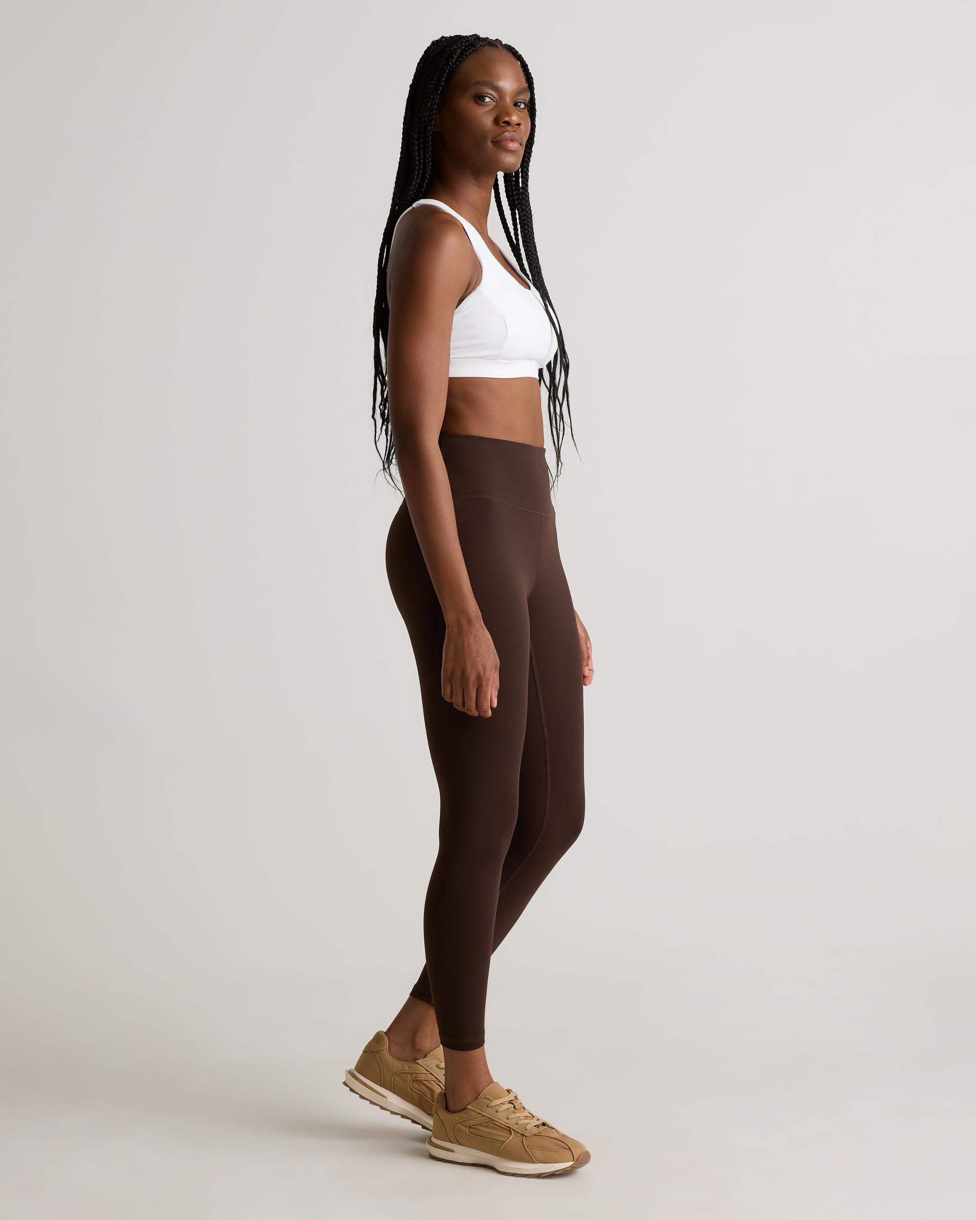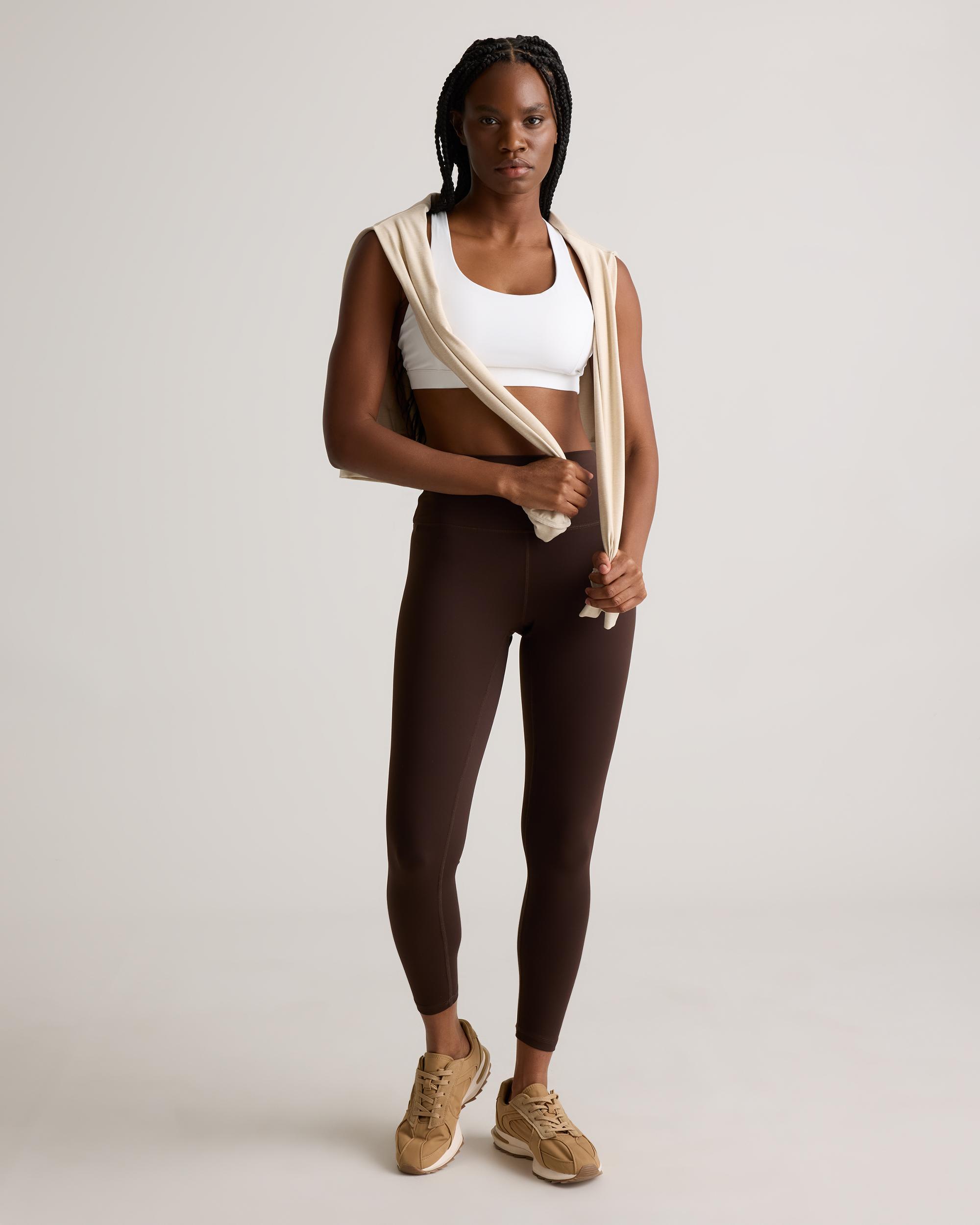 The Power-Up High-Rise Training Legging is designed for your most intense training sessions. Our Power-Up fabric is quick-drying, moisture-wicking and anti-microbial which makes it perfect for sweaty workouts. The 4-way stretch allows for full range of motion, perfect for squats, jumps, and weight lifting. The drop-in waistband pocket provides convenient storage for personal items, and the internal adjustable waistband ensures a secure and comfortable fit. If you prefer exterior side pockets, try our Power-Up High-Rise Training Pocket Legging. | Quince | Women's Power-Up High-Rise Training Legging in Espresso, Size Small, Nylon/Spandex