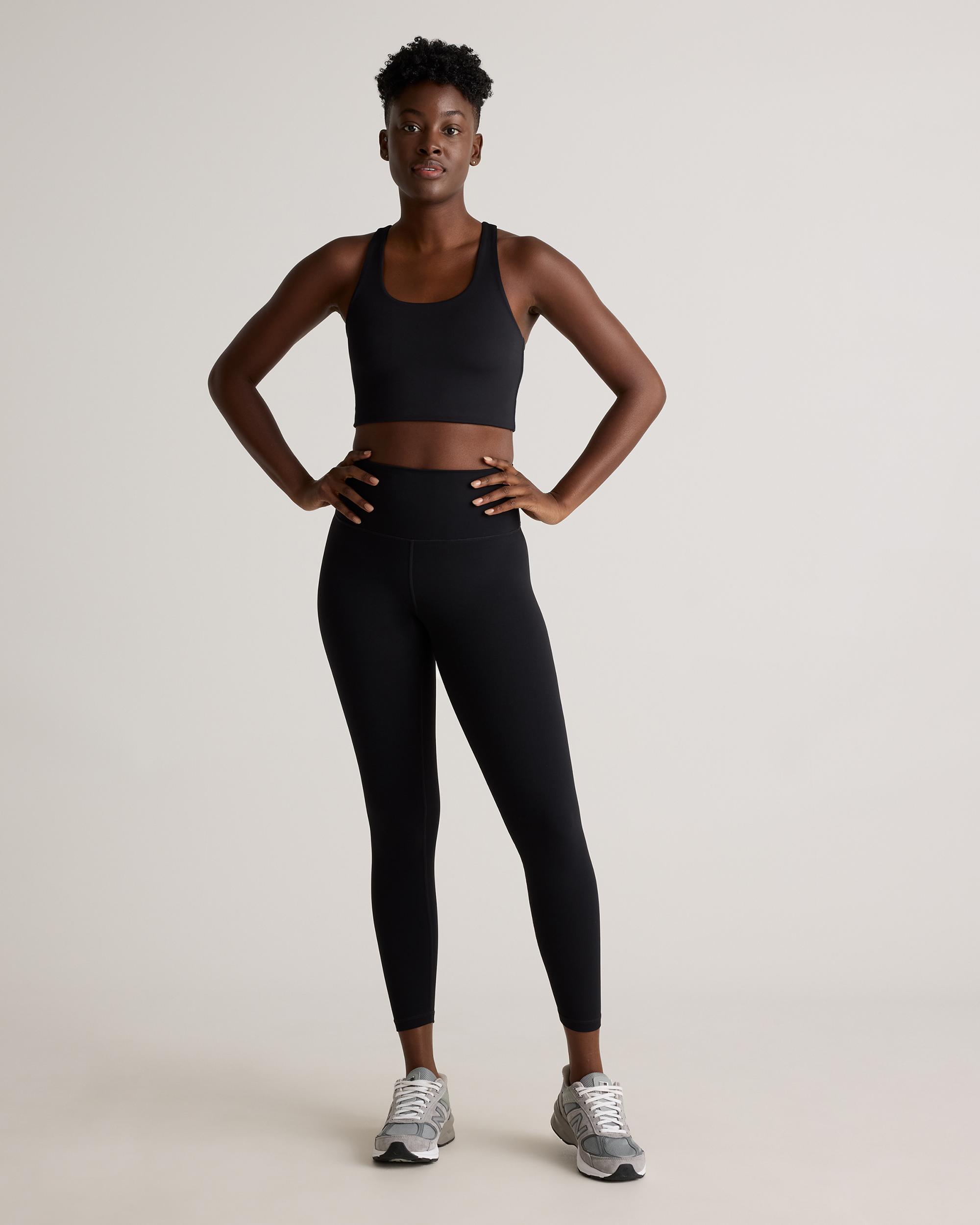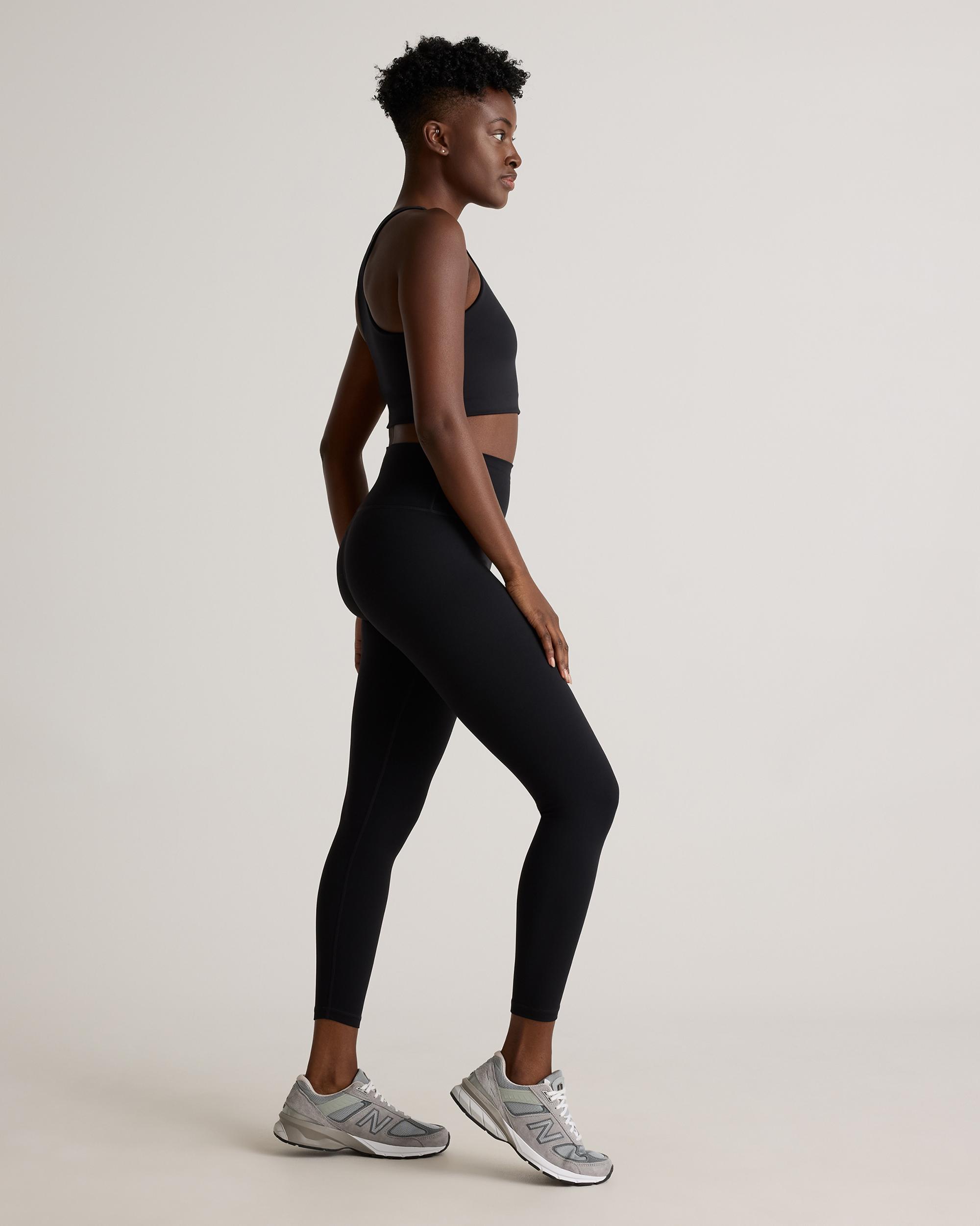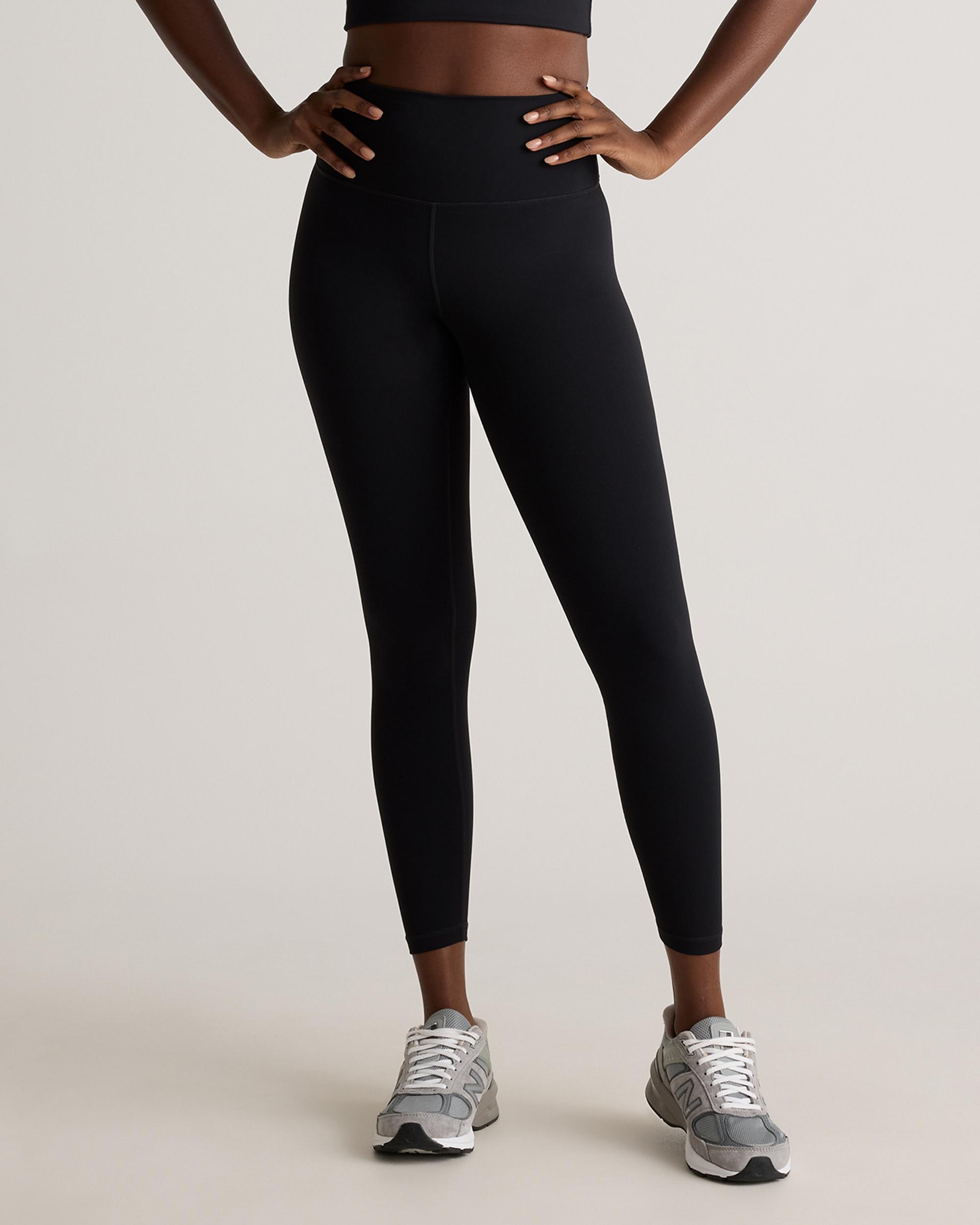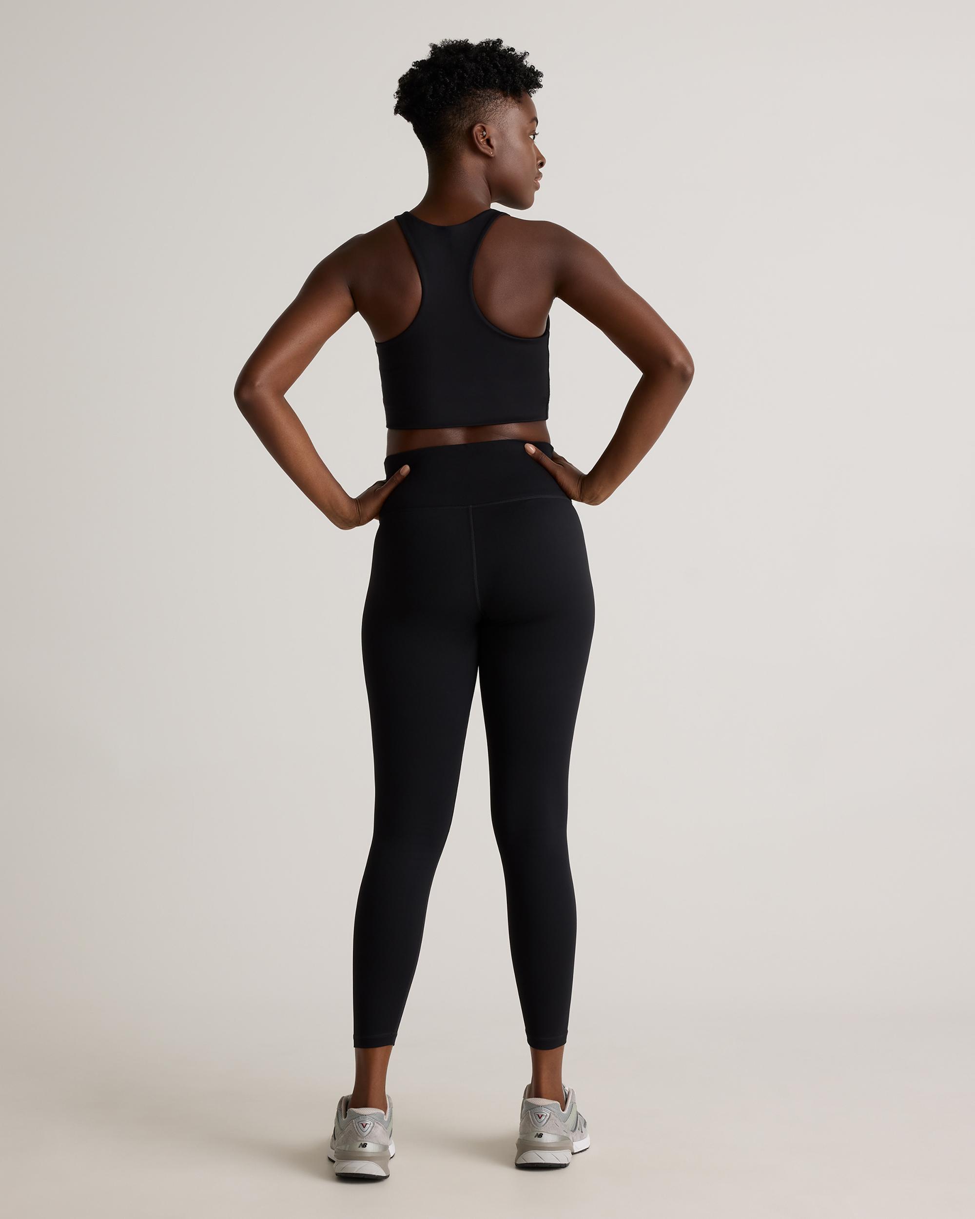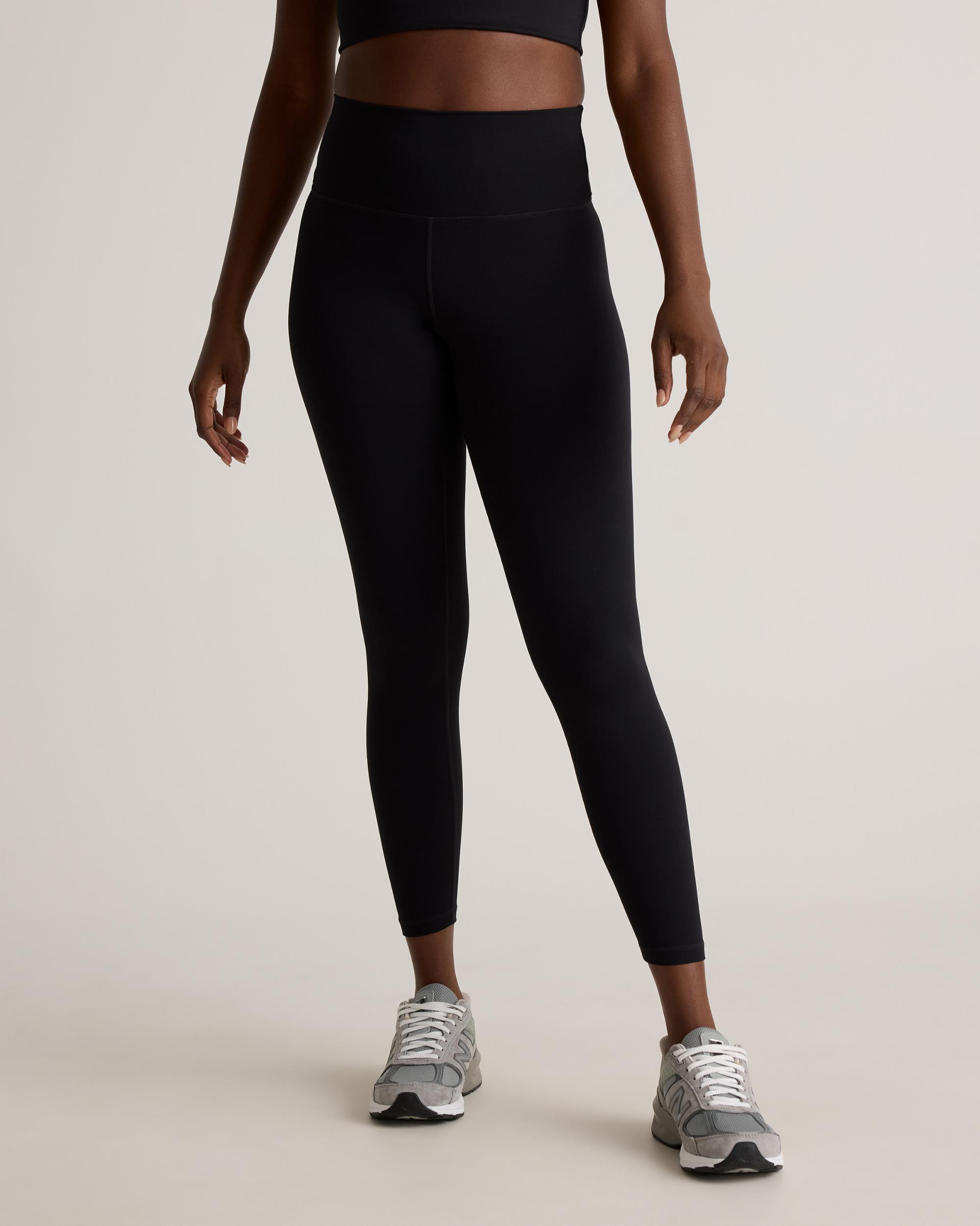 The Power-Up High-Rise Training Legging is designed for your most intense training sessions. Our Power-Up fabric is quick-drying, moisture-wicking and anti-microbial which makes it perfect for sweaty workouts. The 4-way stretch allows for full range of motion, perfect for squats, jumps, and weight lifting. The drop-in waistband pocket provides convenient storage for personal items, and the internal adjustable waistband ensures a secure and comfortable fit. If you prefer exterior side pockets, try our Power-Up High-Rise Training Pocket Legging. | Quince | Women's Power-Up High-Rise Training Legging in Black, Size XS, Nylon/Spandex
