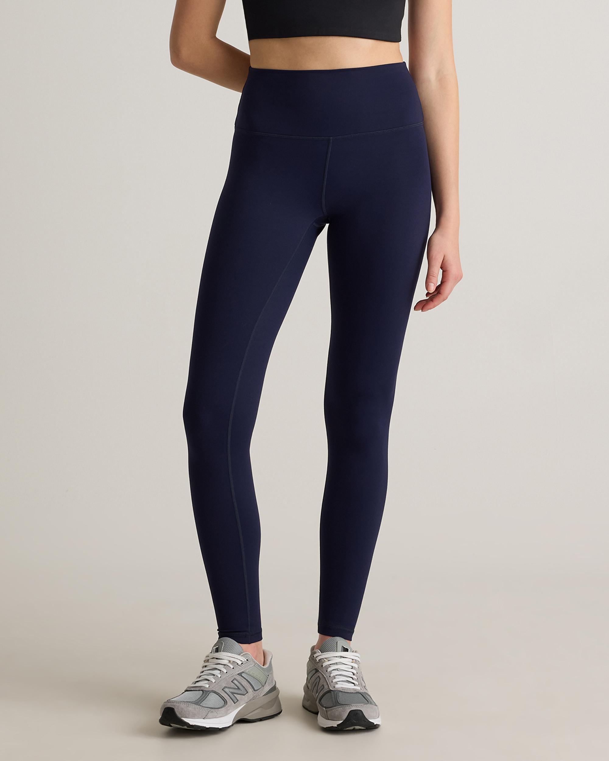 The Power-Up High-Rise Training Legging is designed for your most intense training sessions. Our Power-Up fabric is quick-drying, moisture-wicking and anti-microbial which makes it perfect for sweaty workouts. The 4-way stretch allows for full range of motion, perfect for squats, jumps, and weight lifting. The drop-in waistband pocket provides convenient storage for personal items, and the internal adjustable waistband ensures a secure and comfortable fit. If you prefer exterior side pockets, try our Power-Up High-Rise Training Pocket Legging. | Quince | Women's Power-Up High-Rise Training Legging in Deep Navy, Size Small, Nylon/Spandex