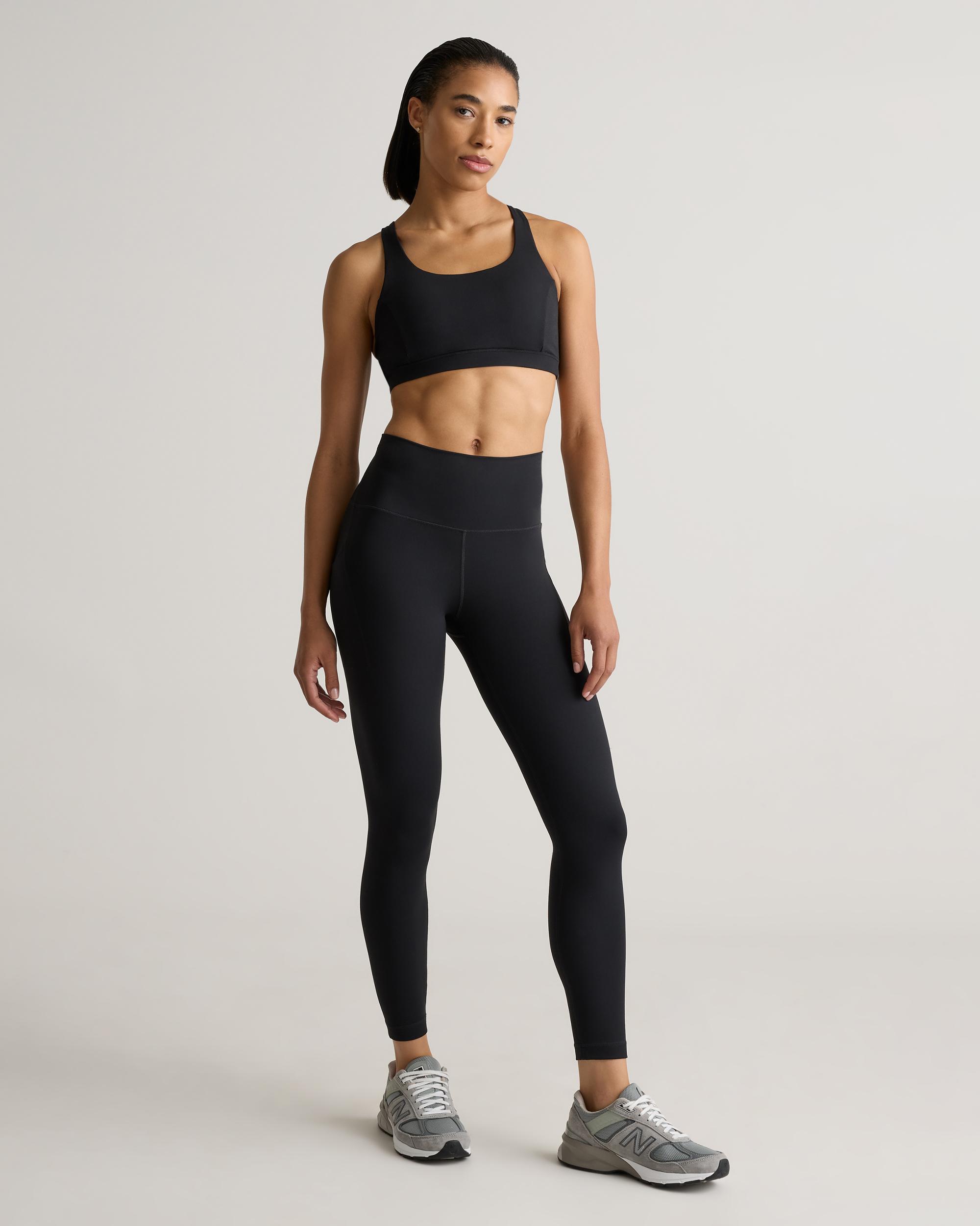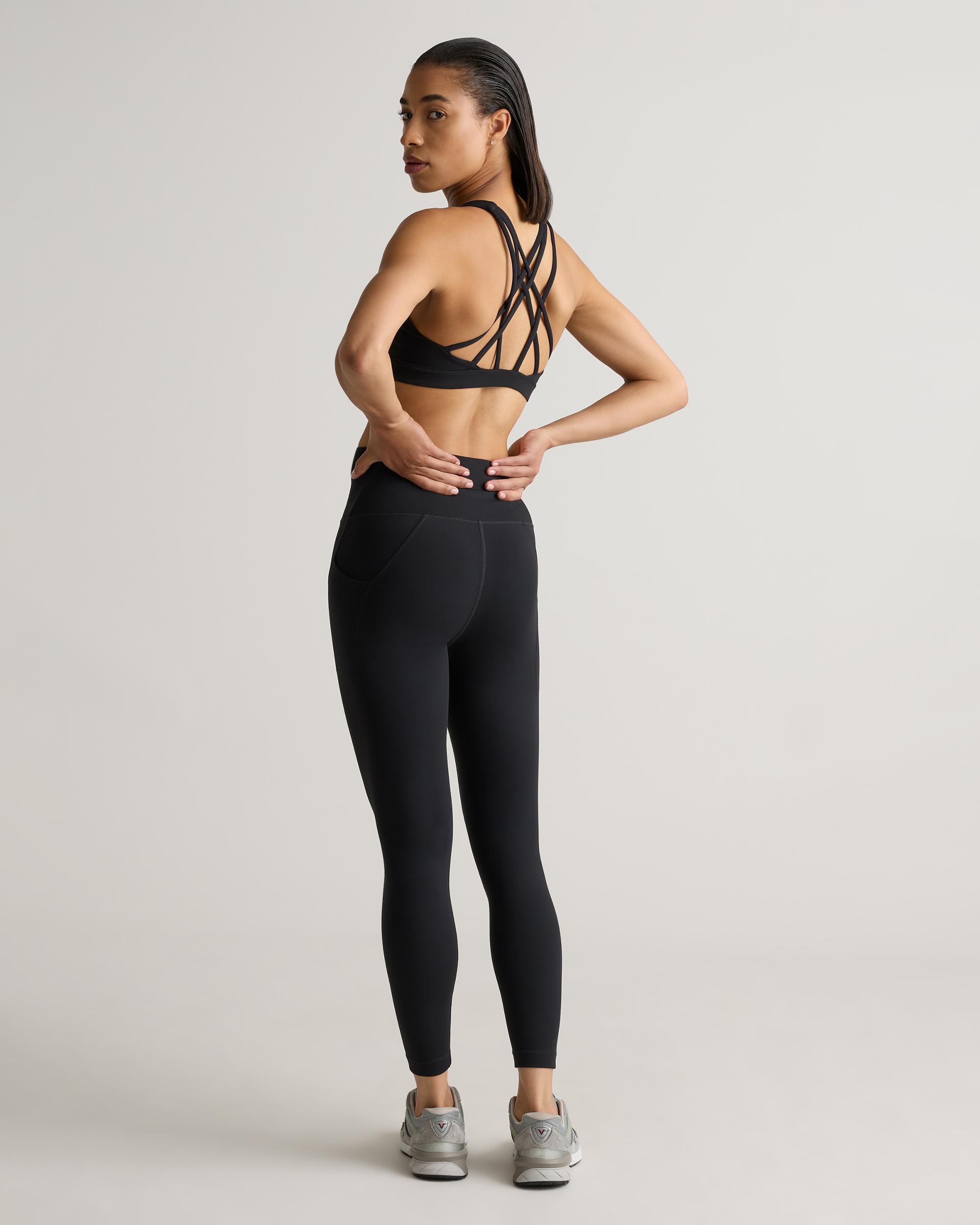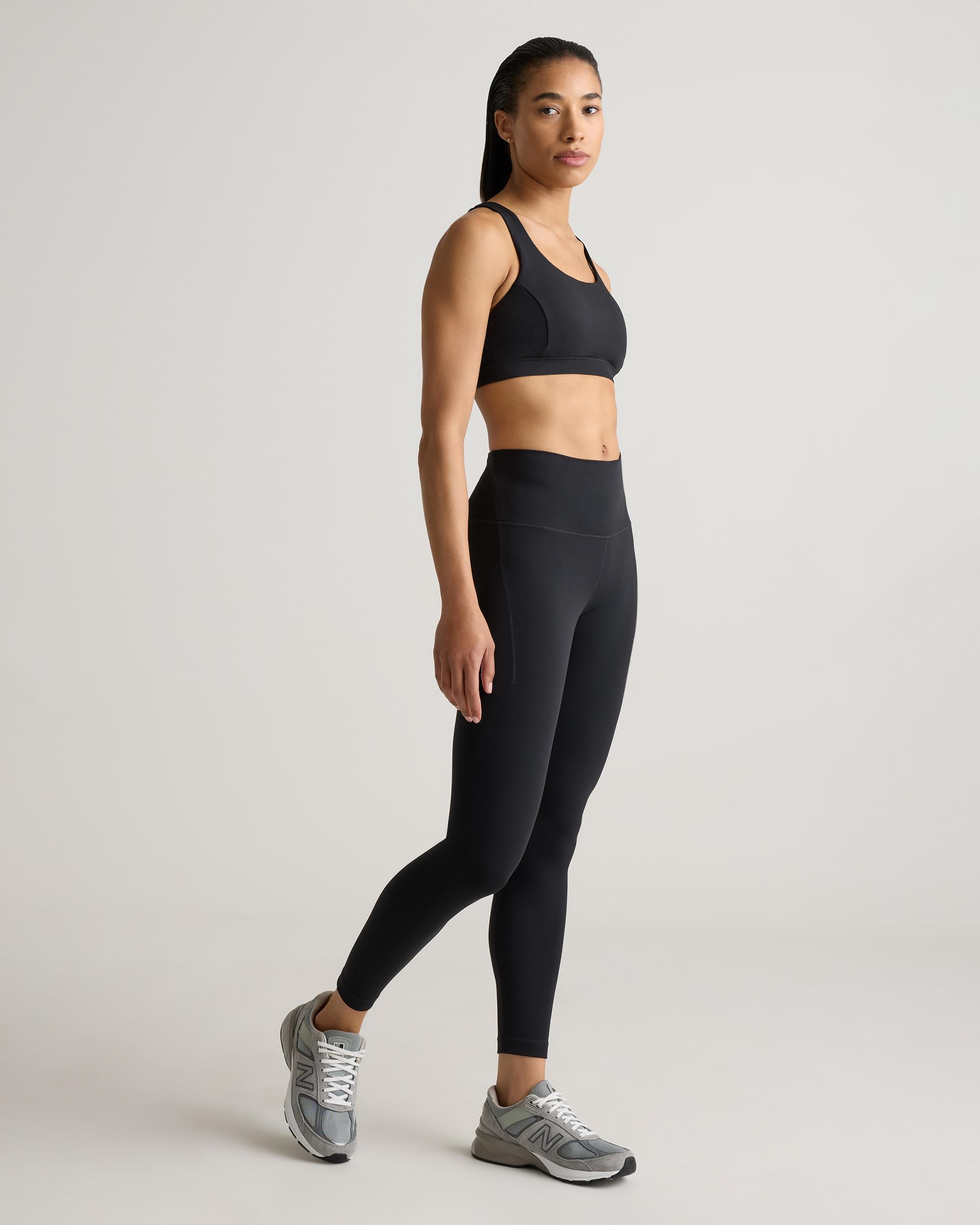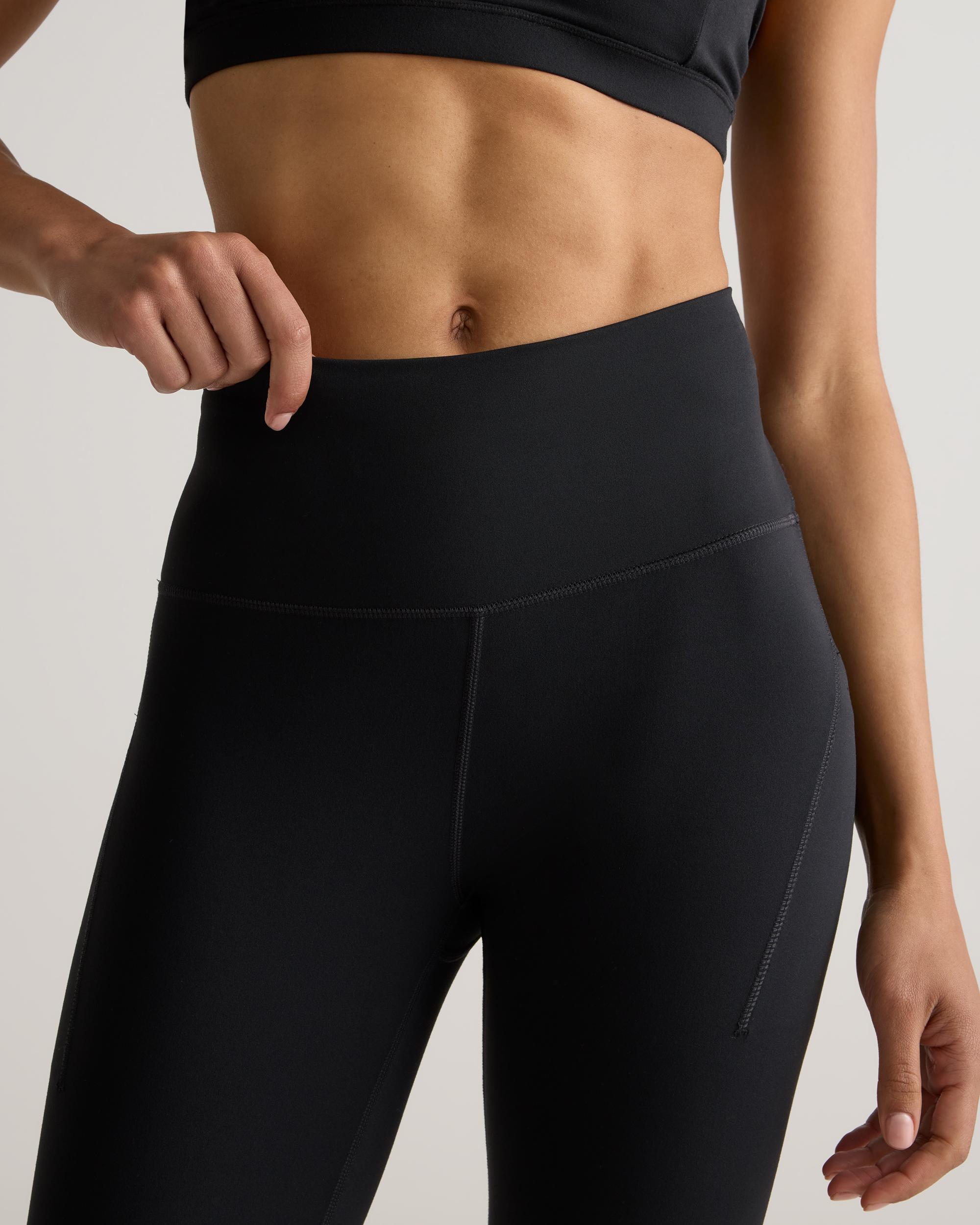 Meet the Power-Up High-Rise Training Pocket Legging, a comfy & durable layer designed for your most intense training sessions. The quick-drying, moisture-wicking, and anti-microbial Power-Up fabric makes it perfect for sweaty workouts and the 4-way stretch allows for full range of motion (think: squats, jumps, and weight lifting). Our favorite details? The drop-in waistband pocket that provides convenient storage and the internal adjustable waistband that ensures a secure and comfortable fit. If you prefer clean lines and no pockets, try our Power-Up High-Rise Training Legging. | Quince | Women's Power-Up High-Rise Training Pocket Legging in Black, Size Medium, Nylon/Spandex