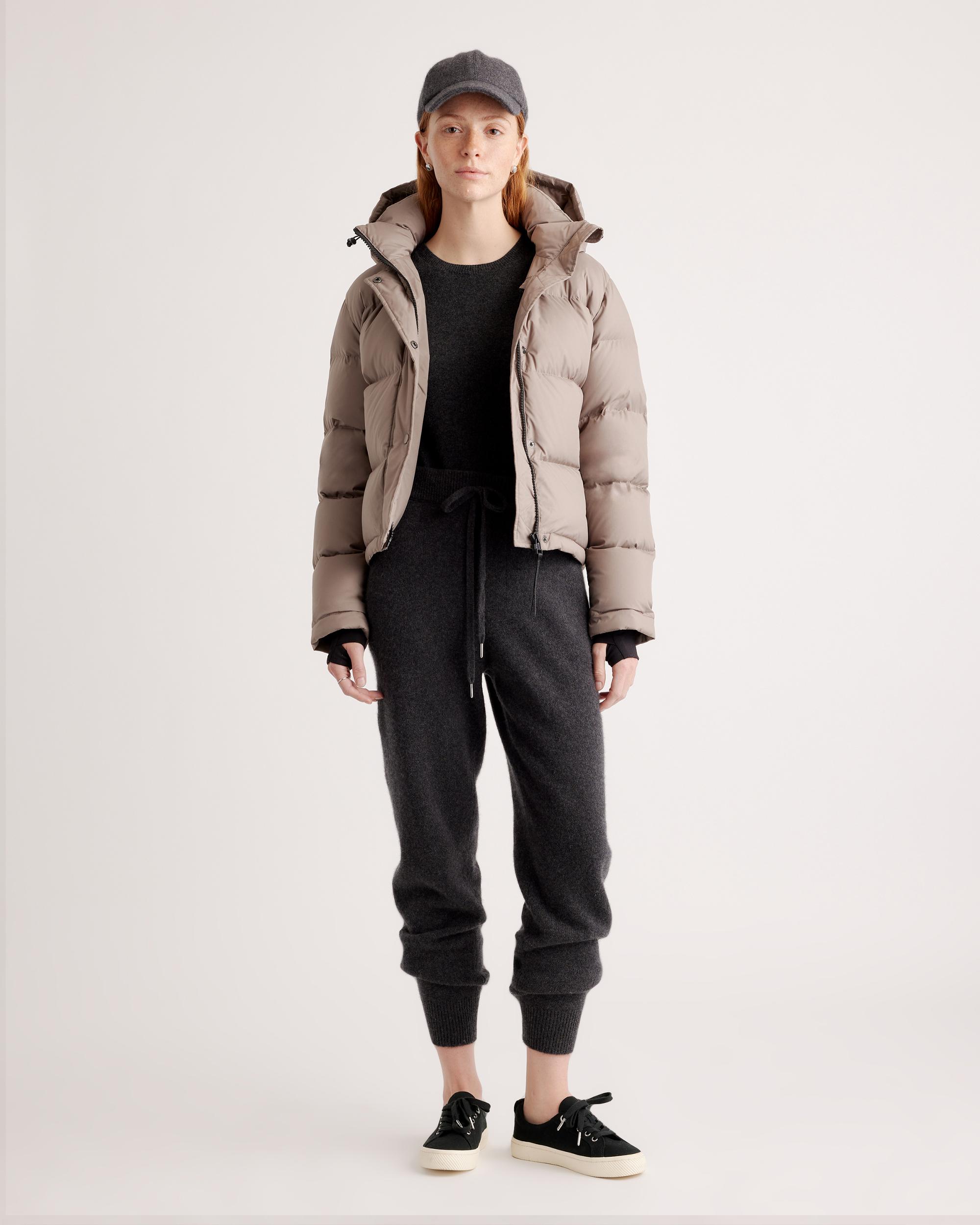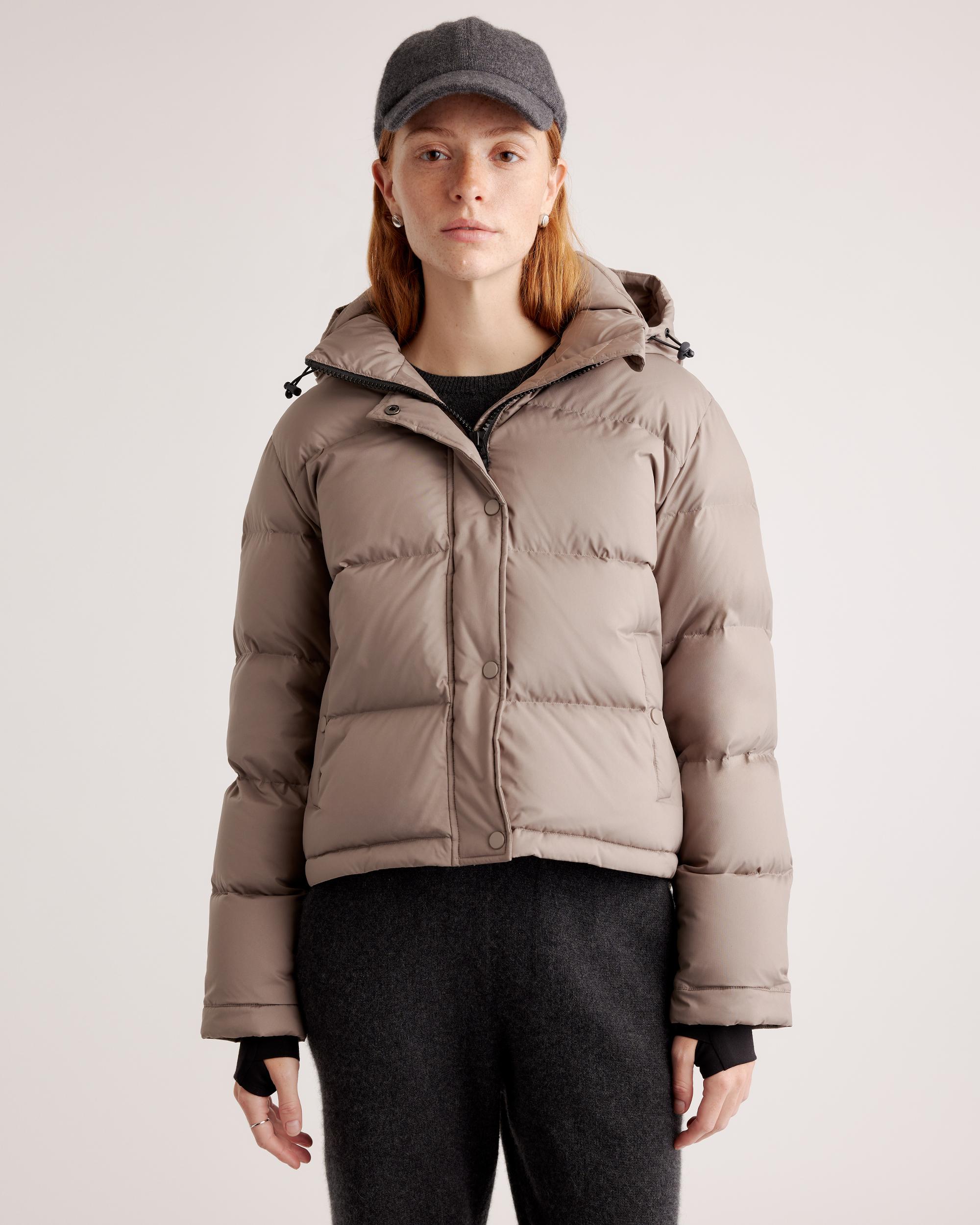 The perfect jacket for your cold-weather adventures is here: our Responsible Down Cropped Puffer Jacket. You'll be warm all winter long in even the coldest of climates, and the water-repellent and wind-resistant fabric make this jacket perfect for any winter activity. Plus, our down products are sourced responsibly to ensure best practices in animal welfare. Meet your new winter wardrobe staple for years to come. | Quince | Women's Responsible Down Cropped Puffer Jacket in Stone Taupe, Size Small, Recycled Polyester