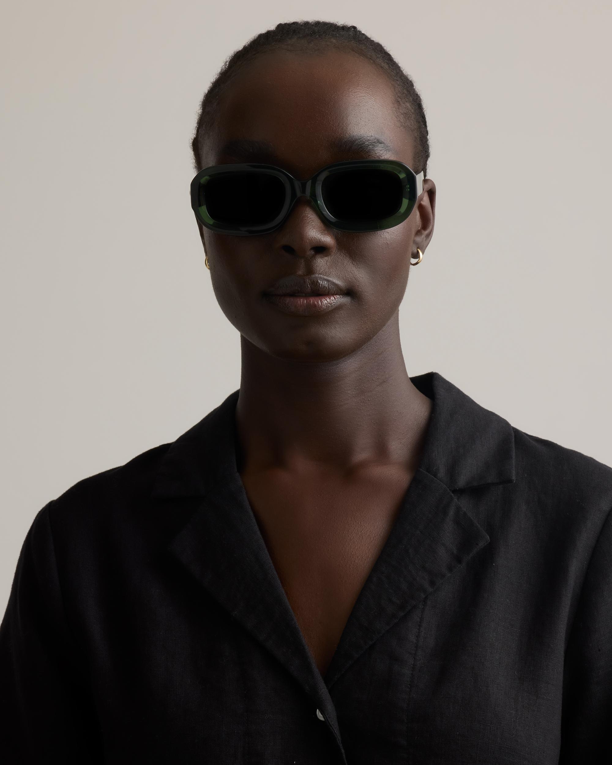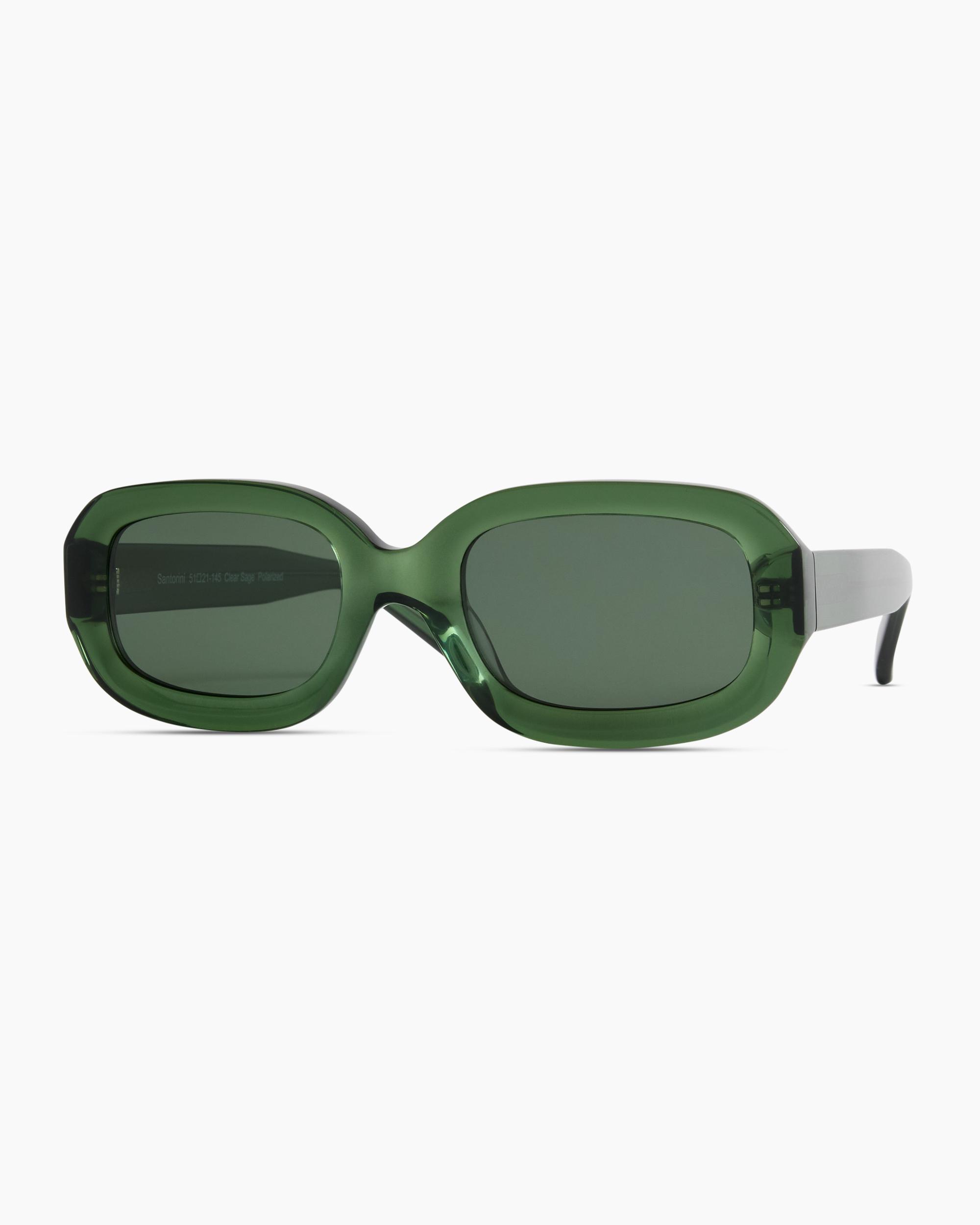 Crafted with polarized lenses, the Santorini Polarized Acetate Sunglasses effectively minimize glare while delivering exceptional clarity and protecting against harmful UV rays. The lightweight yet robust acetate frames ensures lasting comfort, while keeping you stylish. With their timeless design and superior craftsmanship, the Santorini sunglasses offer an unparalleled blend of aesthetic appeal and functional performance. | Quince | Women's Santorini Polarized Acetate Sunglasses in Clear Sage with Green lens, Size Standard, Cellulose Acetate