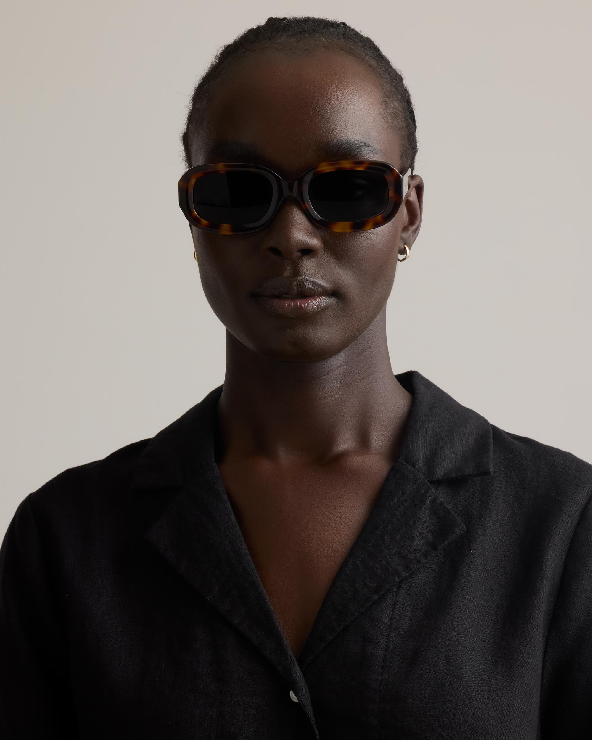 Crafted with polarized lenses, the Santorini Polarized Acetate Sunglasses effectively minimize glare while delivering exceptional clarity and protecting against harmful UV rays. The lightweight yet robust acetate frames ensures lasting comfort, while keeping you stylish. With their timeless design and superior craftsmanship, the Santorini sunglasses offer an unparalleled blend of aesthetic appeal and functional performance. | Quince | Women's Santorini Polarized Acetate Sunglasses in Ginger Tortoise with Grey Lens, Size Standard, Cellulose Acetate