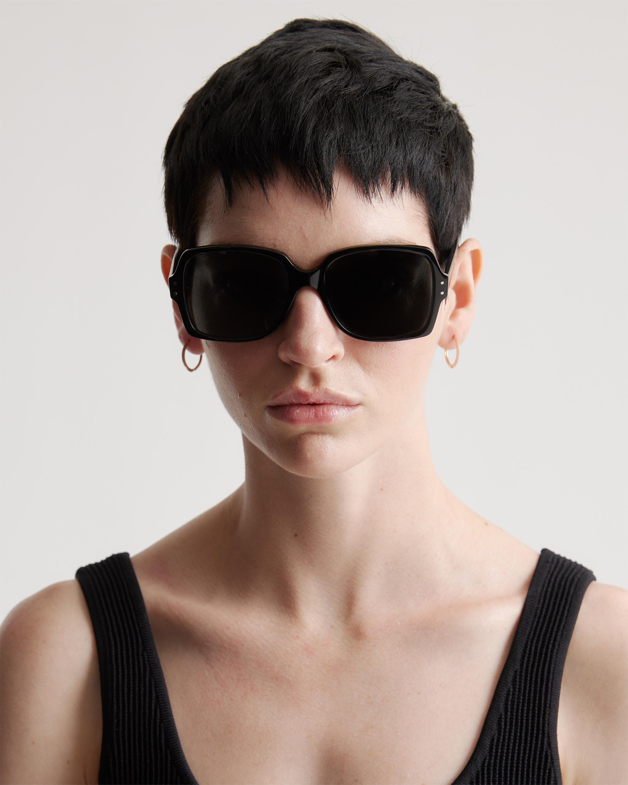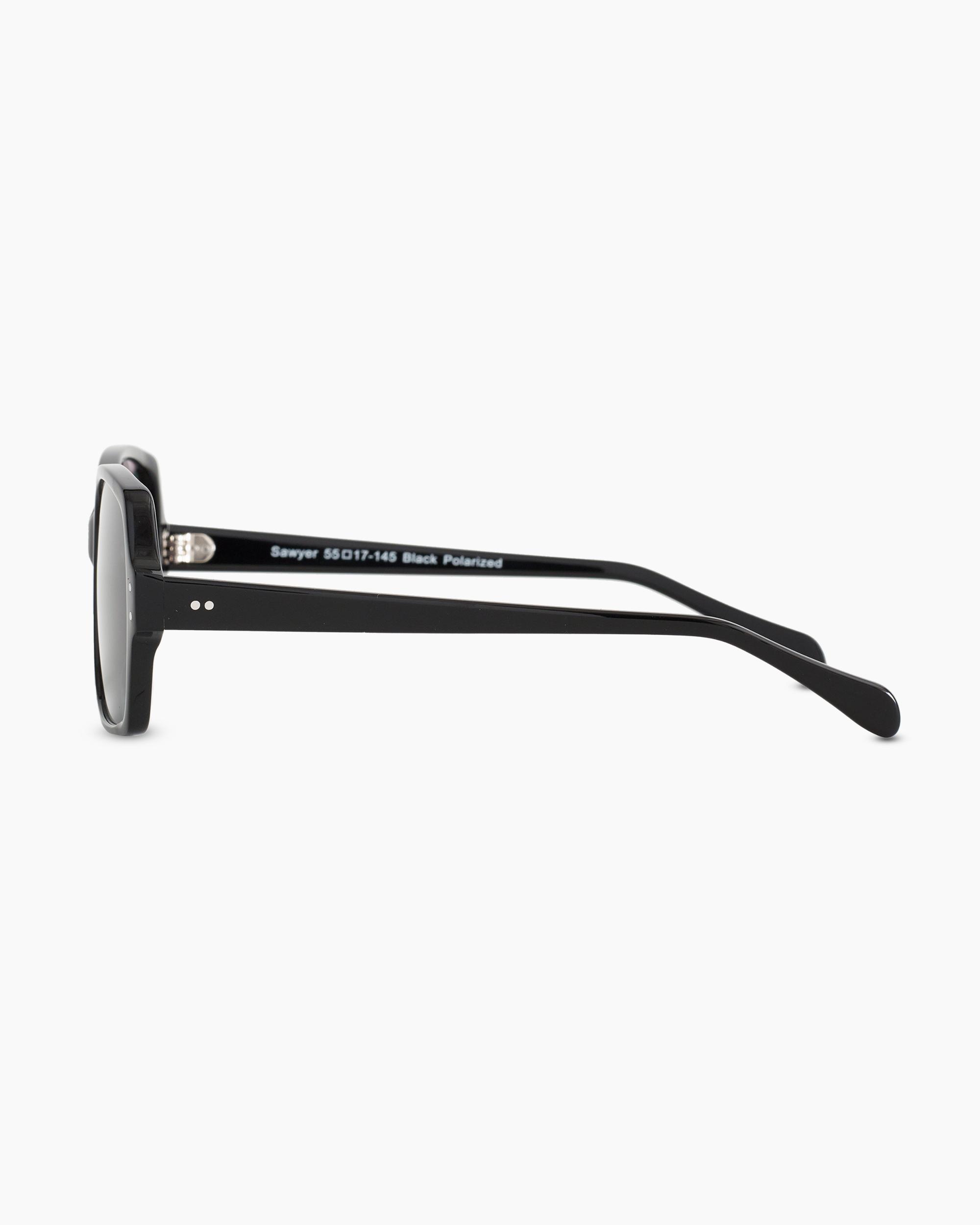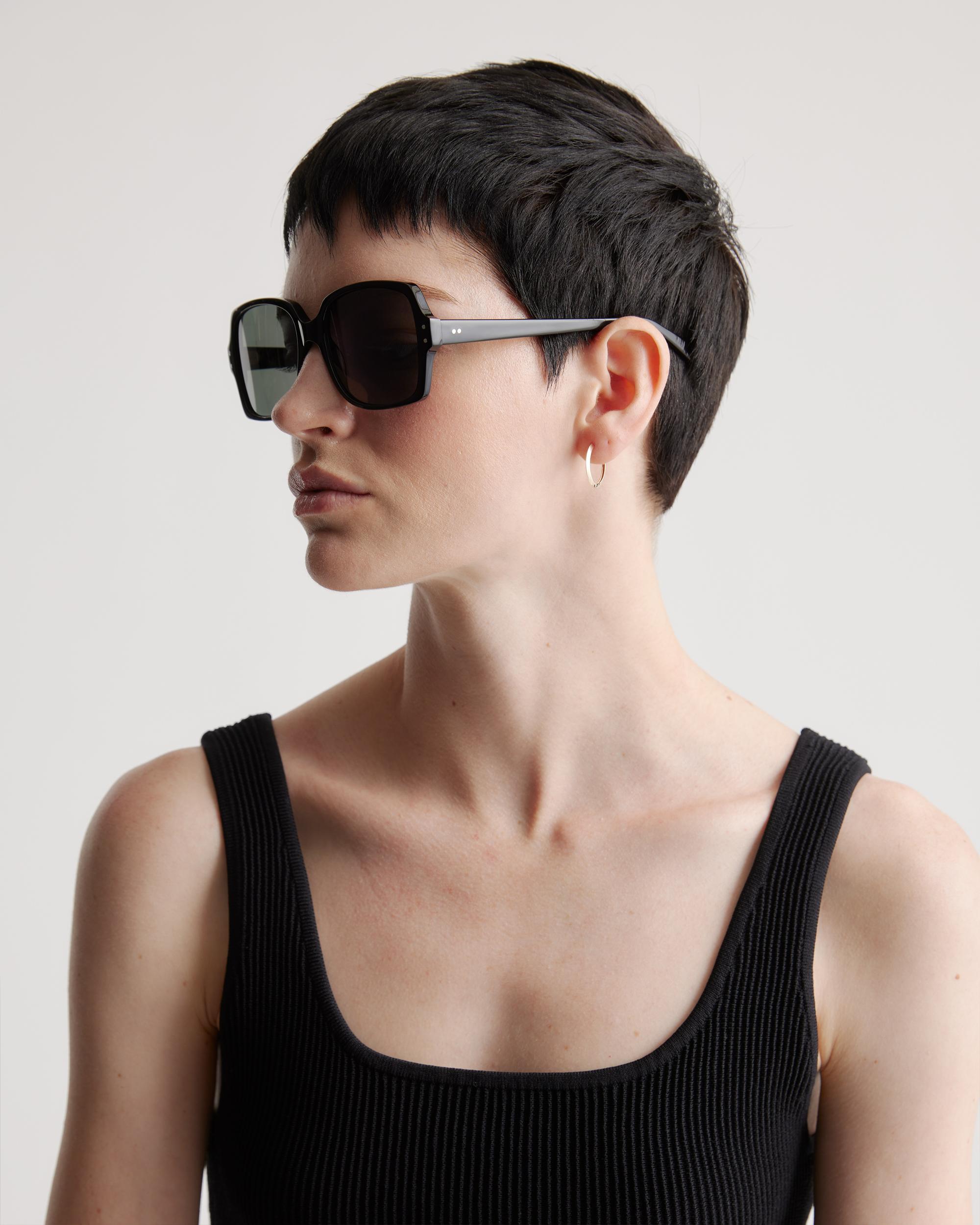 Retro vibes with a modern twist. The Sawyer Polarized Acetate Sunglasses are the '70s-inspired accessory that makes an unforgettable impression. They’re lightweight for all-day comfort, and because they’re polarized, they’ll protect your eyes from glare. Bonus: The acetate frames are a plant-based alternative to conventional plastics made from petroleum, so you can feel good about wearing them too. | Quince | Women's Sawyer Polarized Acetate Sunglasses in Black with Grey lens, Cellulose Acetate