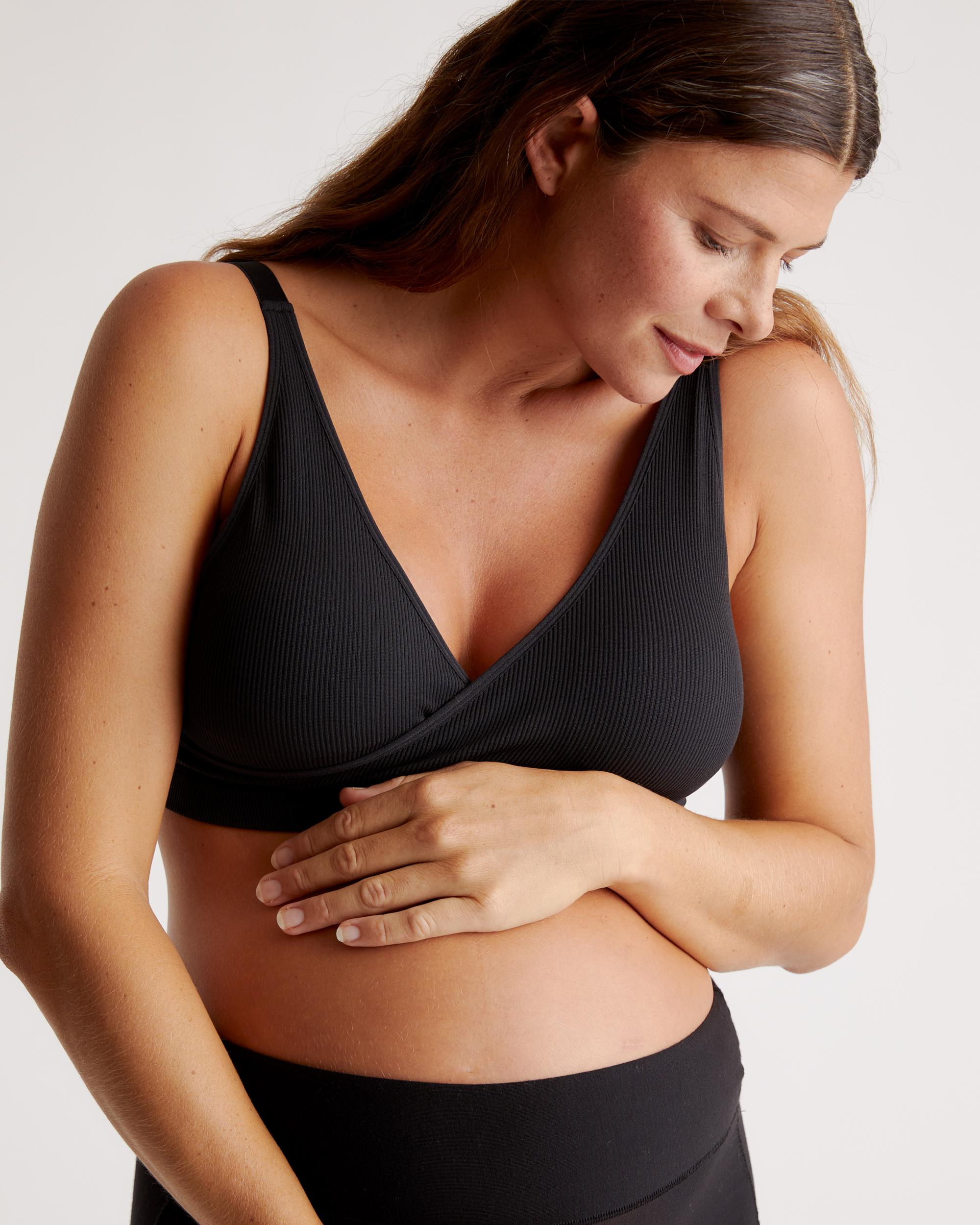 Meet your new everyday essential. The Seamless Crossover Nursing & Lounge Bra is designed to support you through every stage of motherhood—with zero fuss. Made with seamless construction for a smooth, barely-there feel, this 2-pack is all about soft stretch and gentle support where you need it most. The simple crossover front design allows for easy nursing access without clips or snaps, while the flexible fit makes it perfect for pregnancy, postpartum, and everything in between. | Quince | Women's Seamless Crossover Nursing & Lounge Bra in Black, Size XL, Nylon/Spandex
