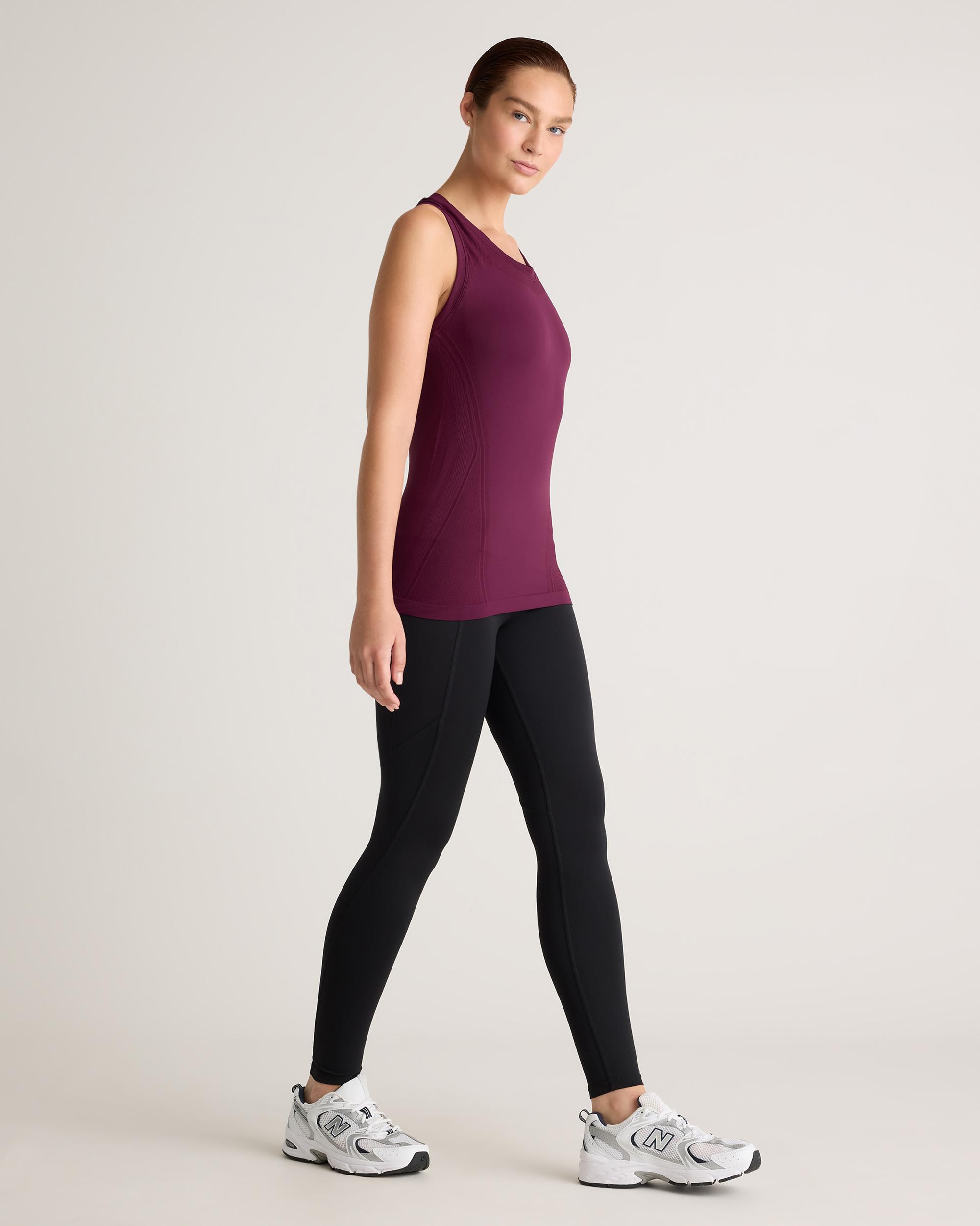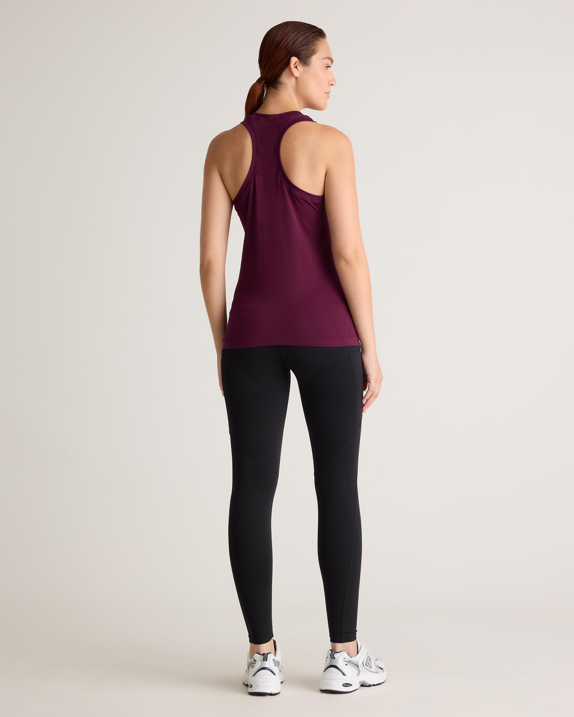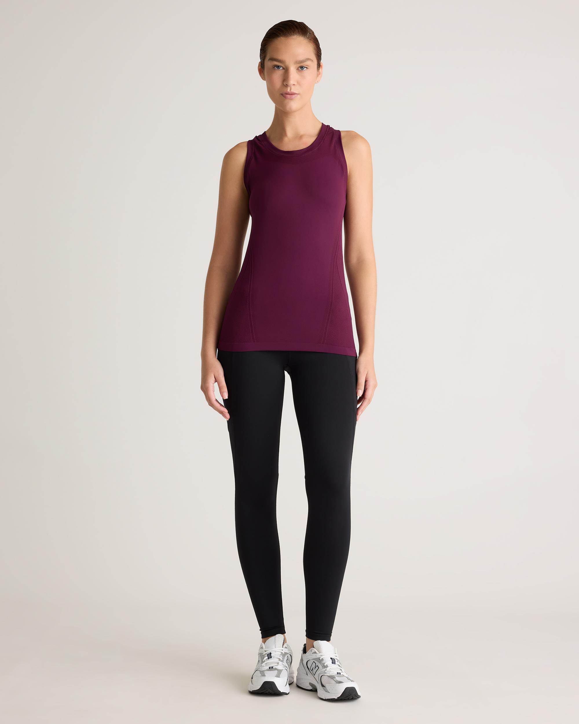 The Seamless Racerback Tank is the perfect addition to your workout wardrobe. Whether you're hitting the pavement for a long run or pushing yourself through a tough training session, this lightweight top will keep you cool and comfortable. The engineered mesh allows breathability in high sweat zones, minimal seams reduce chafing, while the body skimming design ensures a flattering fit. The racerback style allows for full range of motion, so you can move freely and confidently. Stay focused on your workout and let this tank take care of the rest. | Quince | Women's Seamless Racerback Tank Top in Plum, Size Large, Nylon