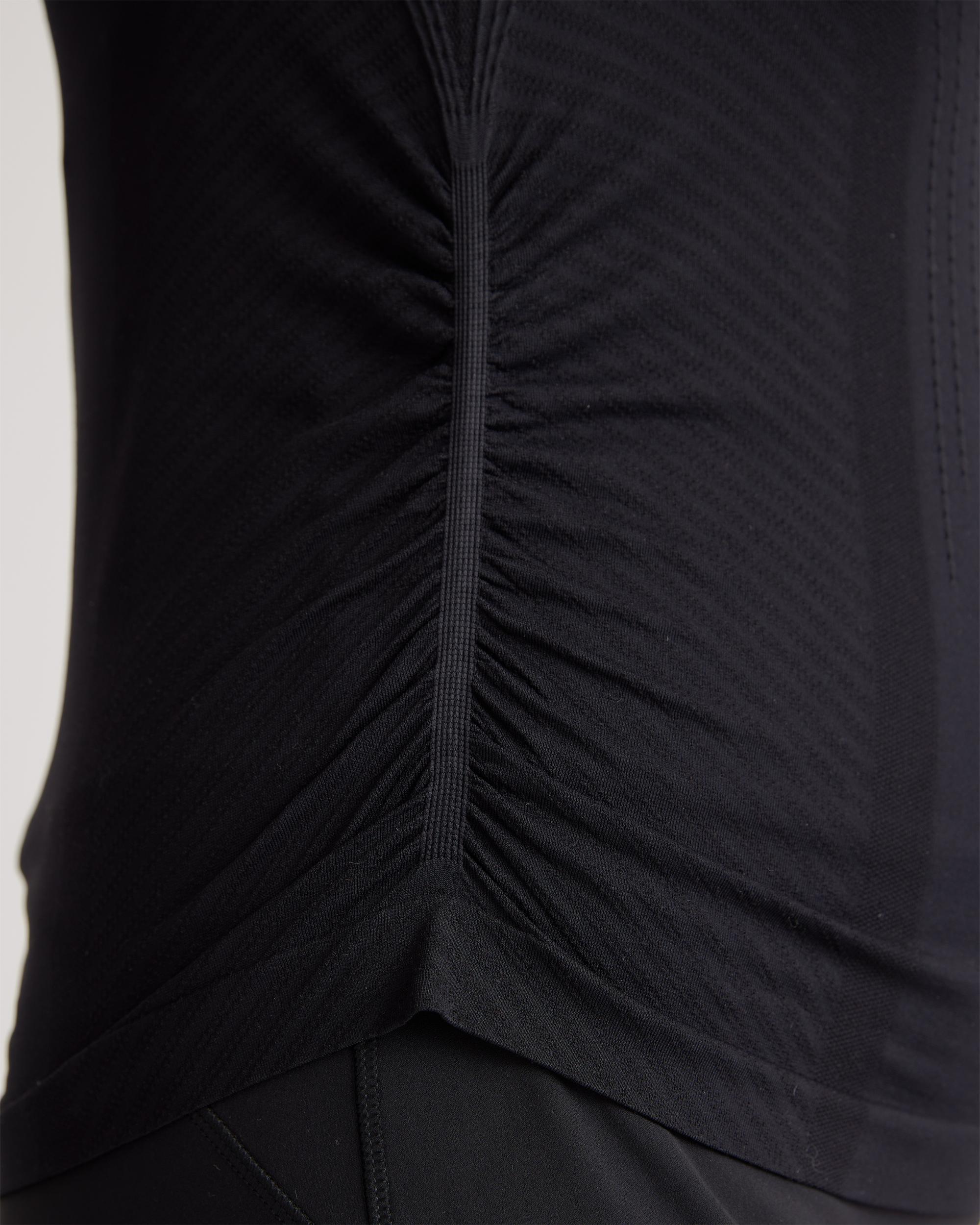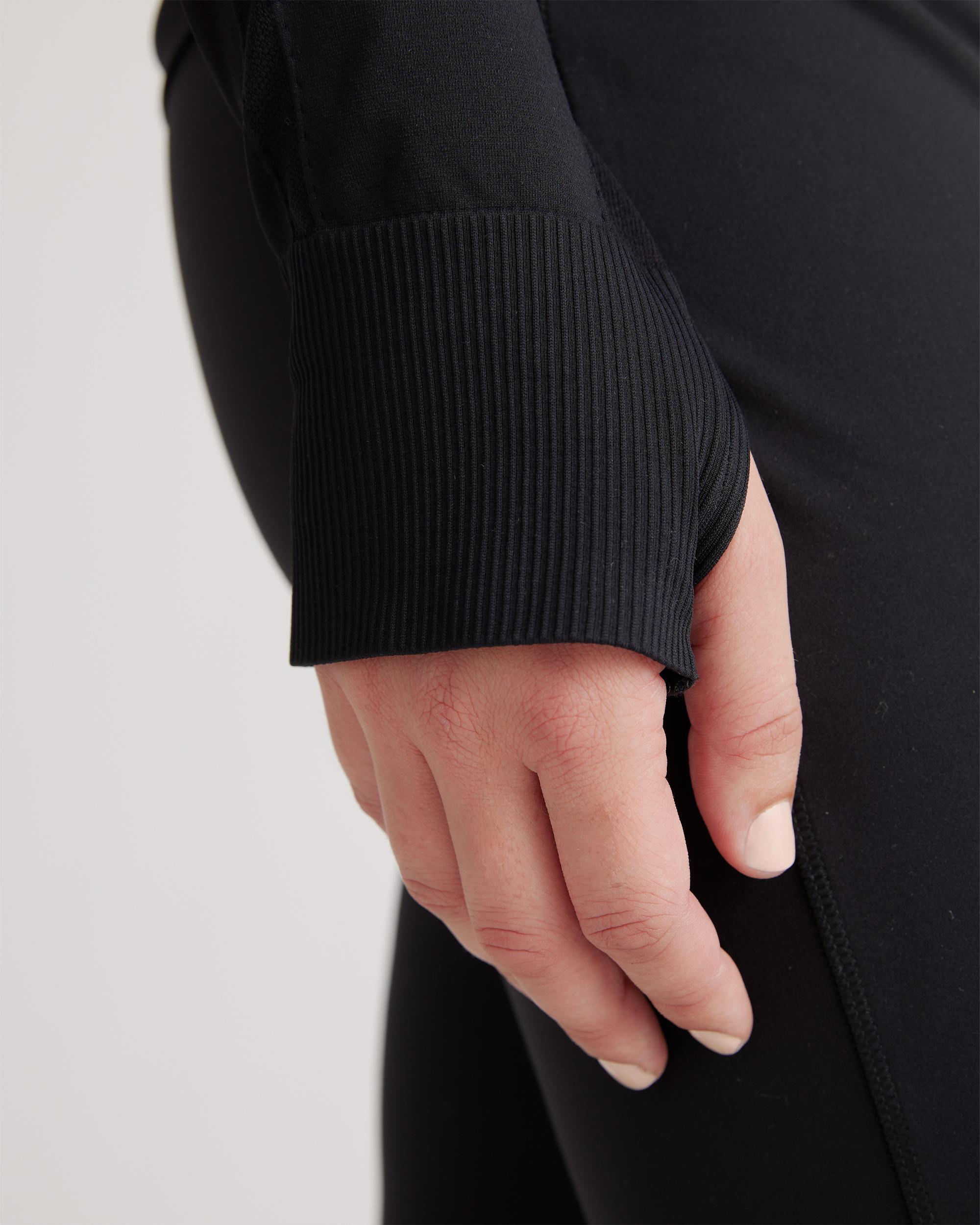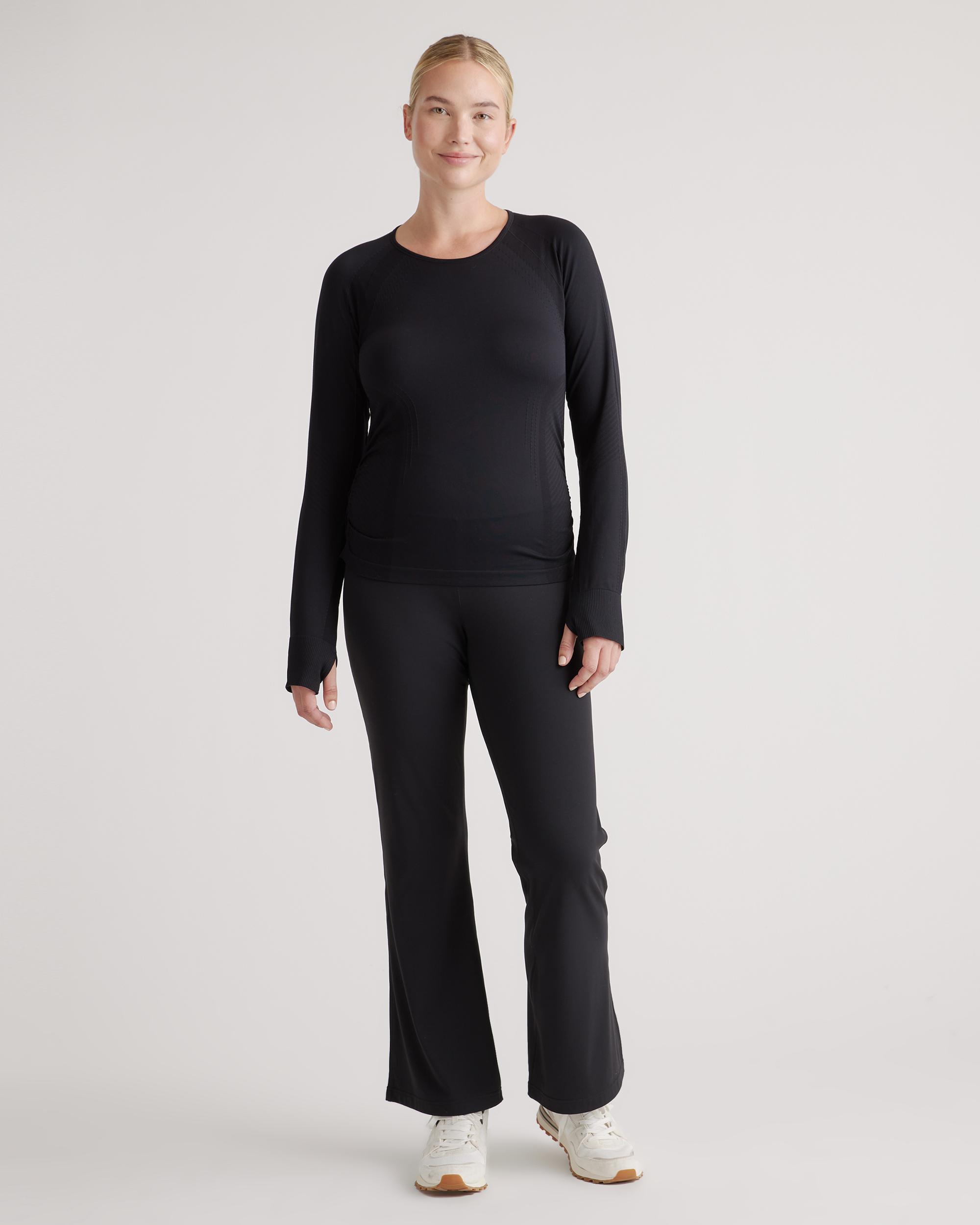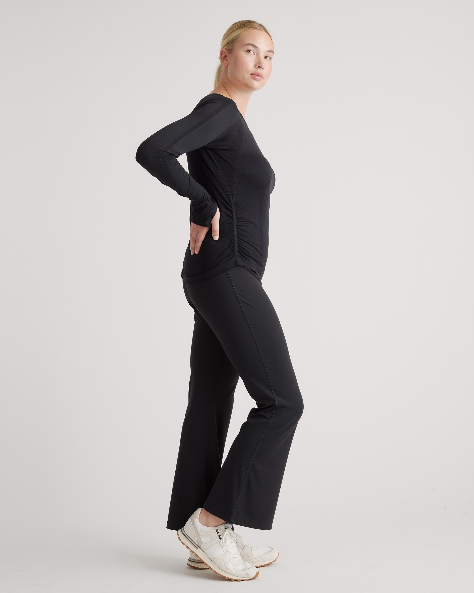 Achieve peak performance in our Seamless Ruched Long Sleeve Top, designed to elevate your workout experience. With features like thumbholes and internal hem-grippers, you'll enjoy a secure and stay-put fit during any activity. The 4-way stretch ensures freedom of movement, while the side ruching adds a touch of style to your fitness routine. Conquer your fitness goals in style and comfort with our Seamless Ruched Long Sleeve Top. | Quince | Women's Seamless Ruched Long Sleeve Top in Black, Size Small, Nylon