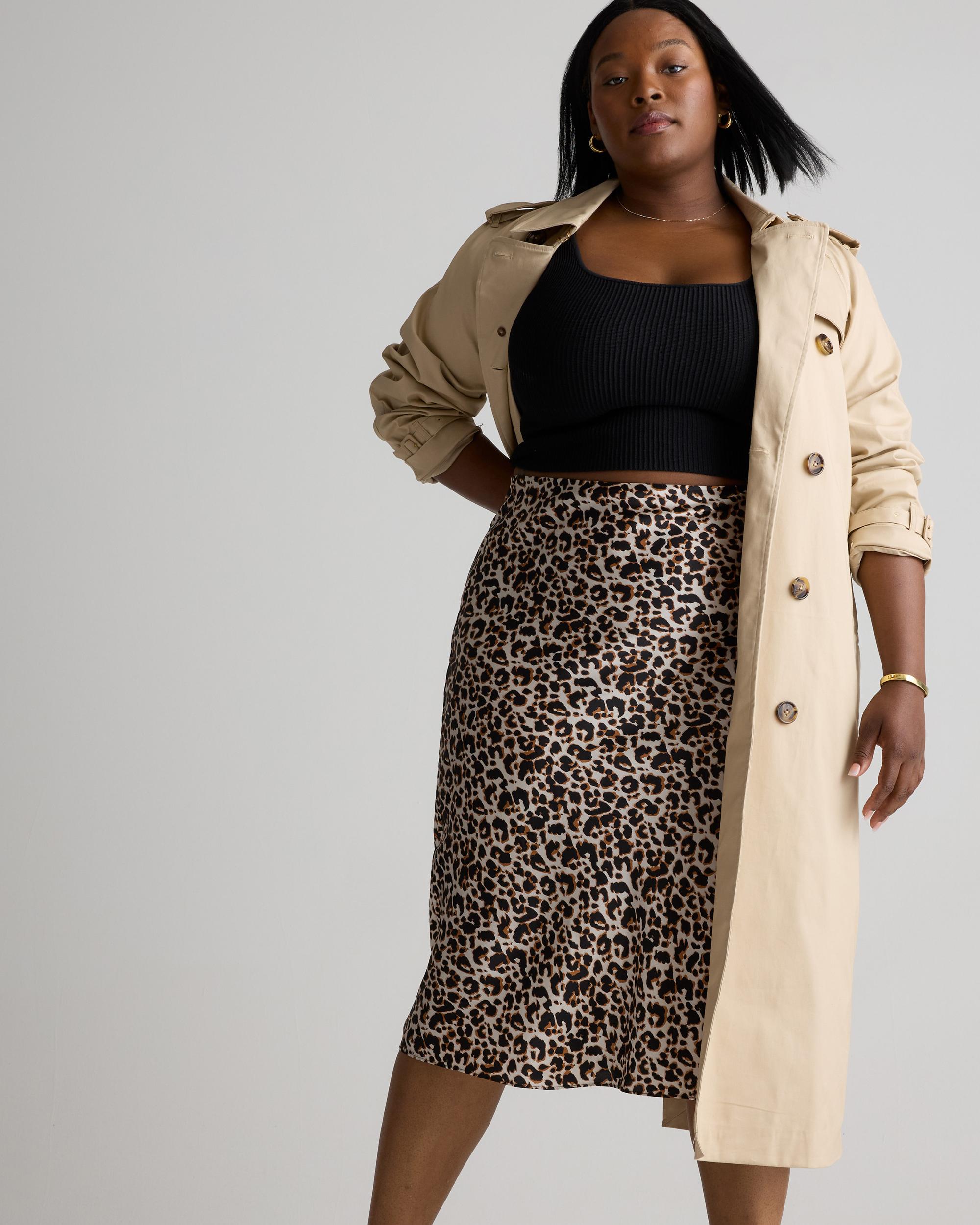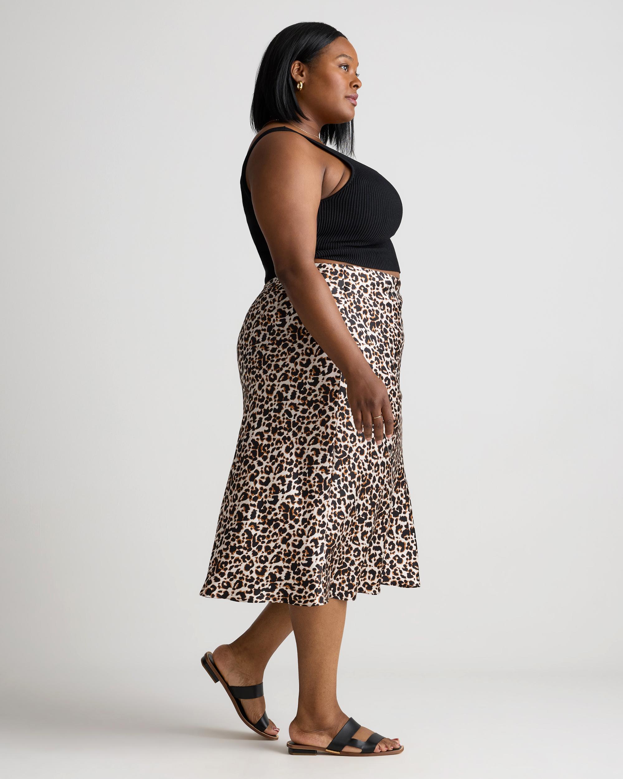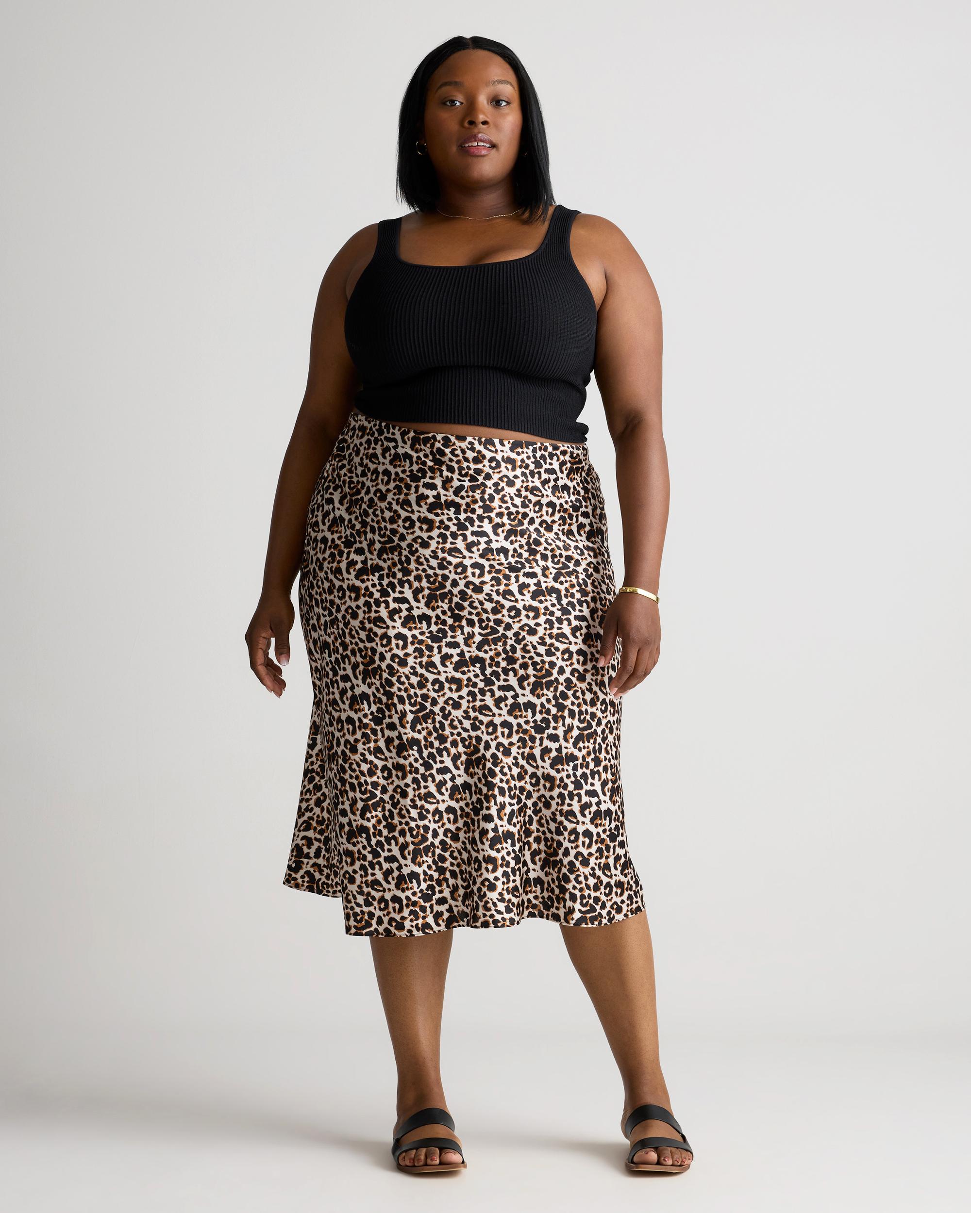 Modern, midi, mulberry. This skirt is a trio of fab style points and pairs perfectly with even more than you can imagine. Now available in extended sizes, it features a bias cut and comfy hidden elastic waist. Slip it on and enjoy the other mulberry silk benefits that go beyond style—it's great for skin, hypo-allergenic, and naturally thermoregulating. Also offered in sizes XS-XL. | Quince | Women's Skirt in Leopard, Size 3X, Silk