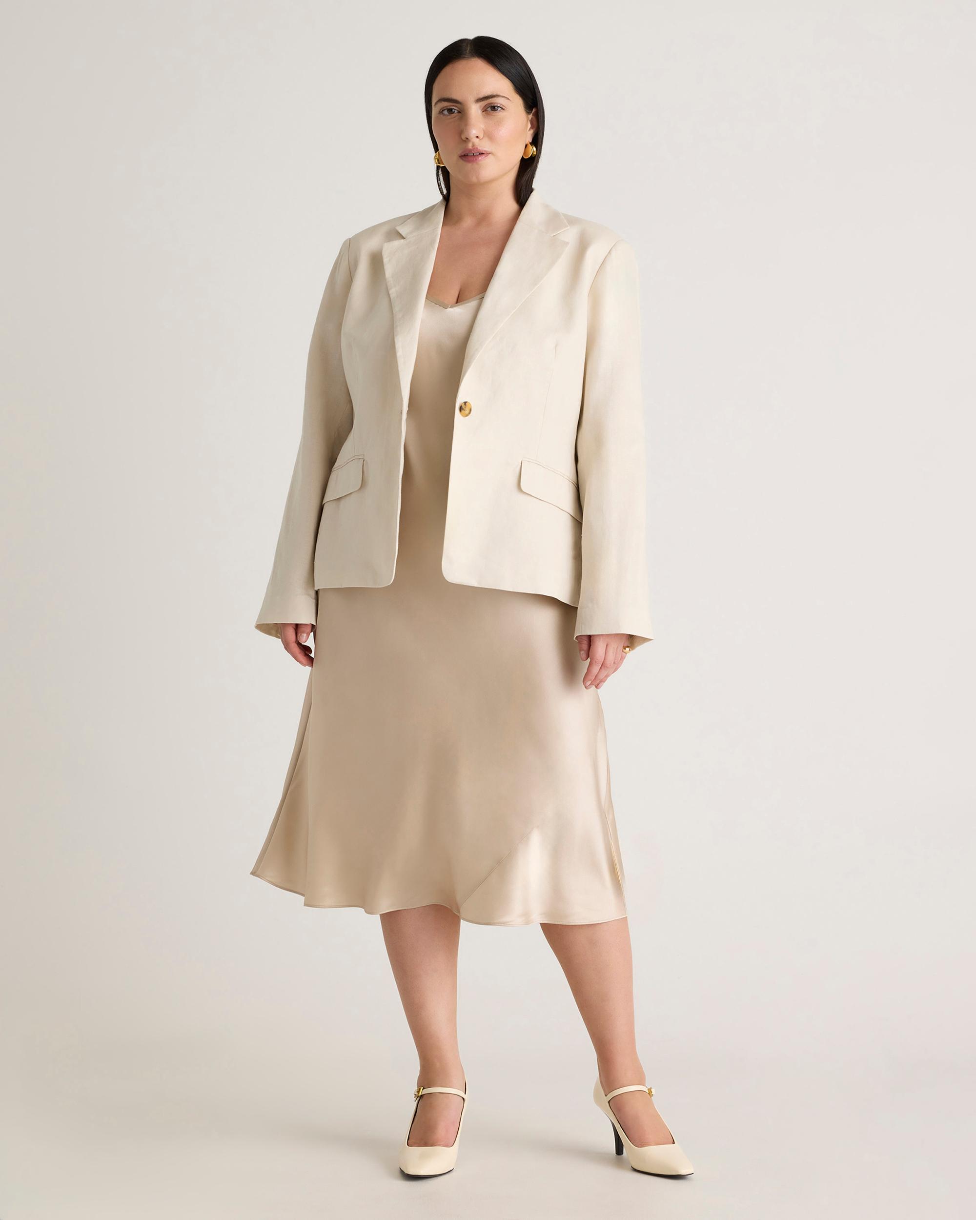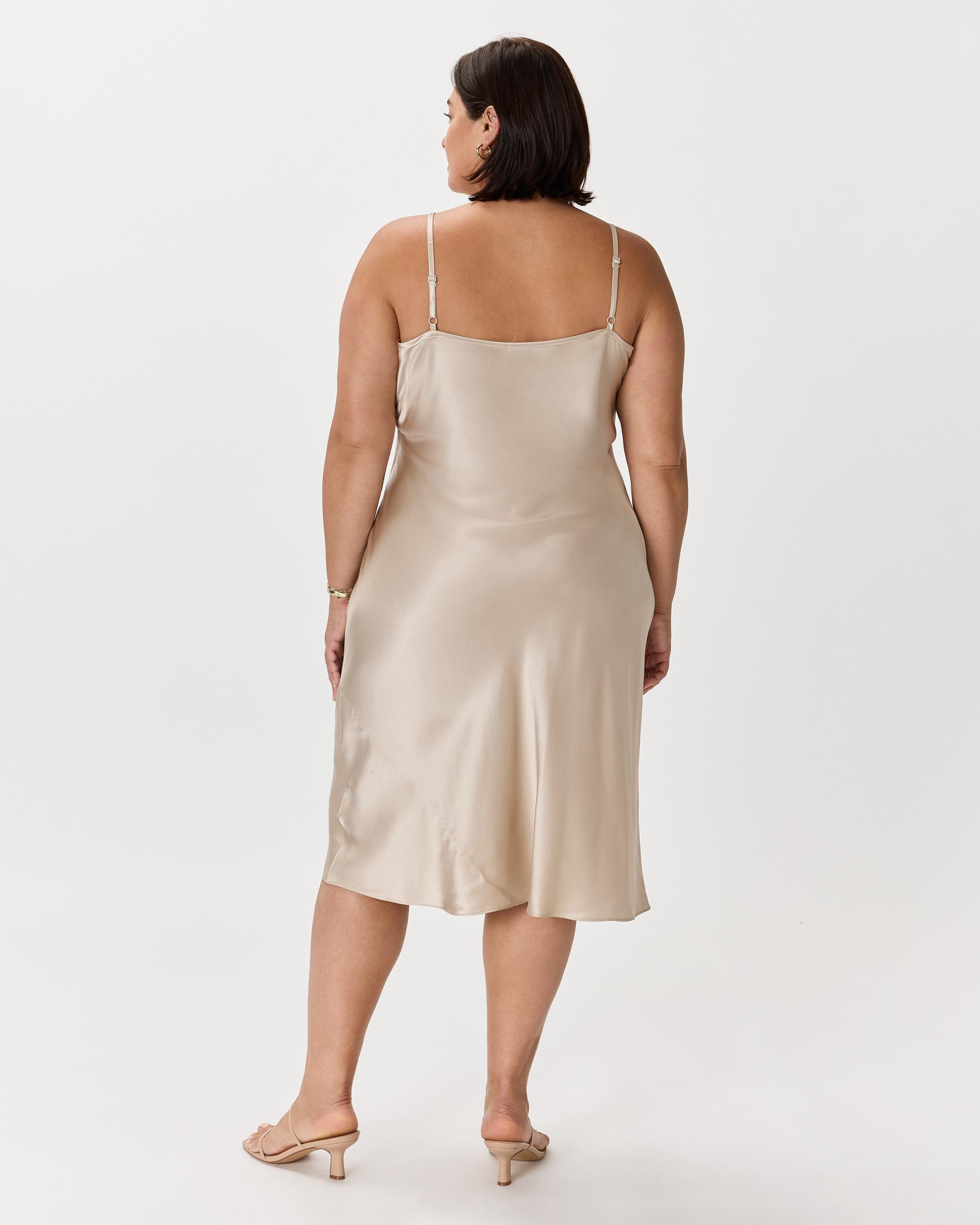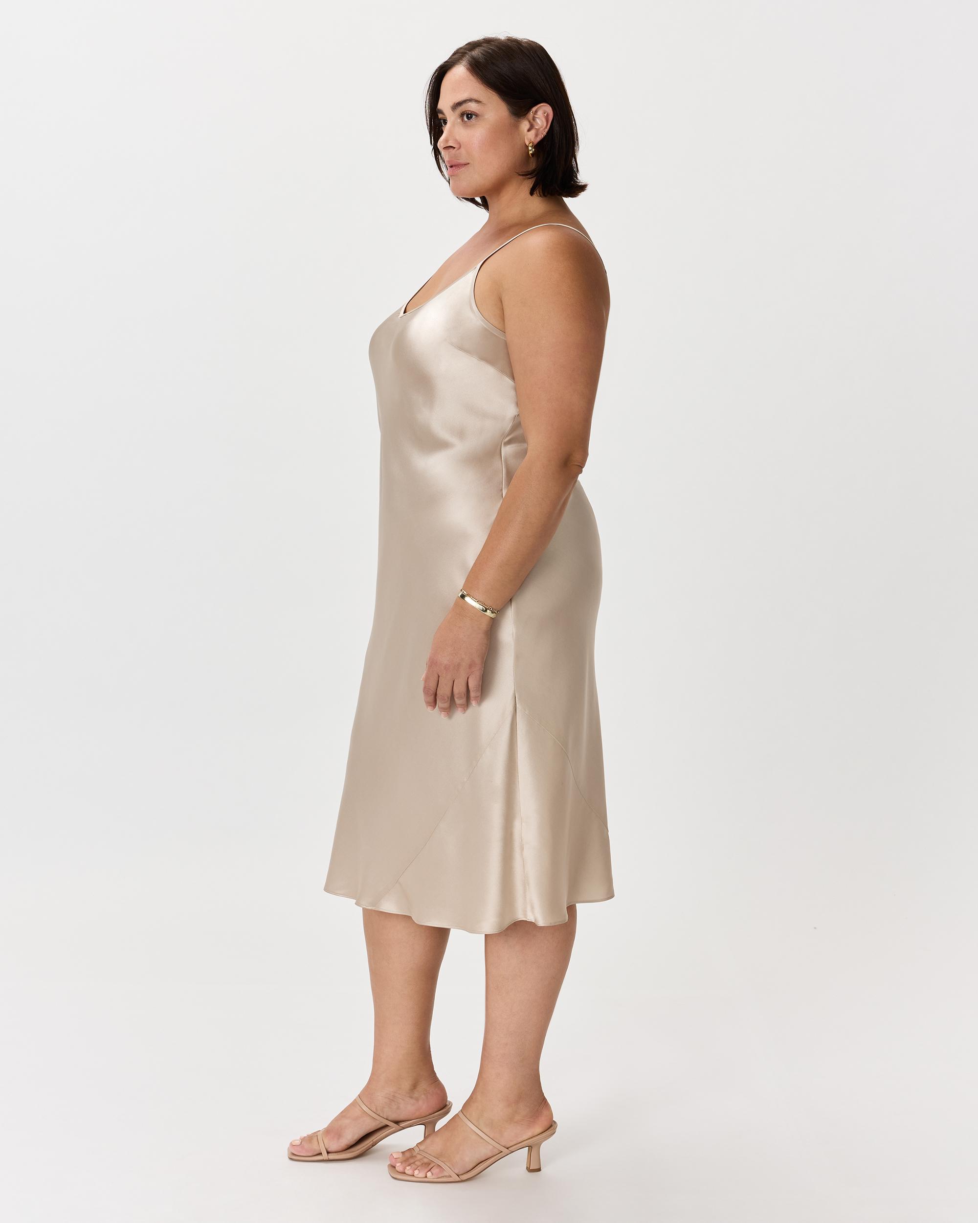 We love the midi length and bias cut of this dress. This super flattering fit is made from 100% mulberry silk, in a satin finish, and is now available in extended sizes. The kicker? Our silk is washable. Easy to style, easy to wash for low-maintenance luxe. Plus, silk fiber contains 18 kinds of amino acids that make it amazing for skin nourishment, hypo-allergenic, and naturally thermoregulating to help maintain body temperature. Also offered in sizes XS-XL. | Quince | Women's Slip Dress in Champagne, Size 1X, Silk