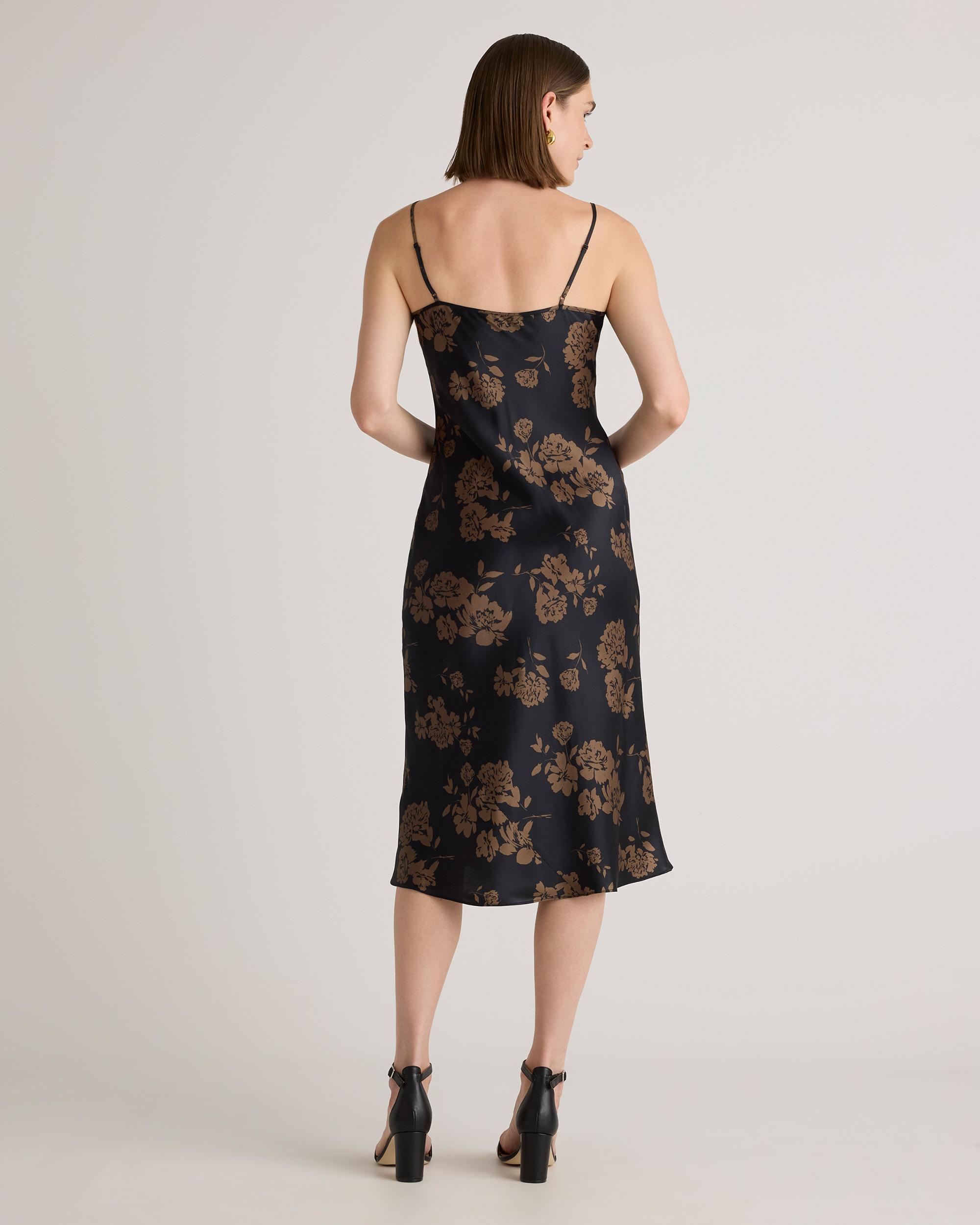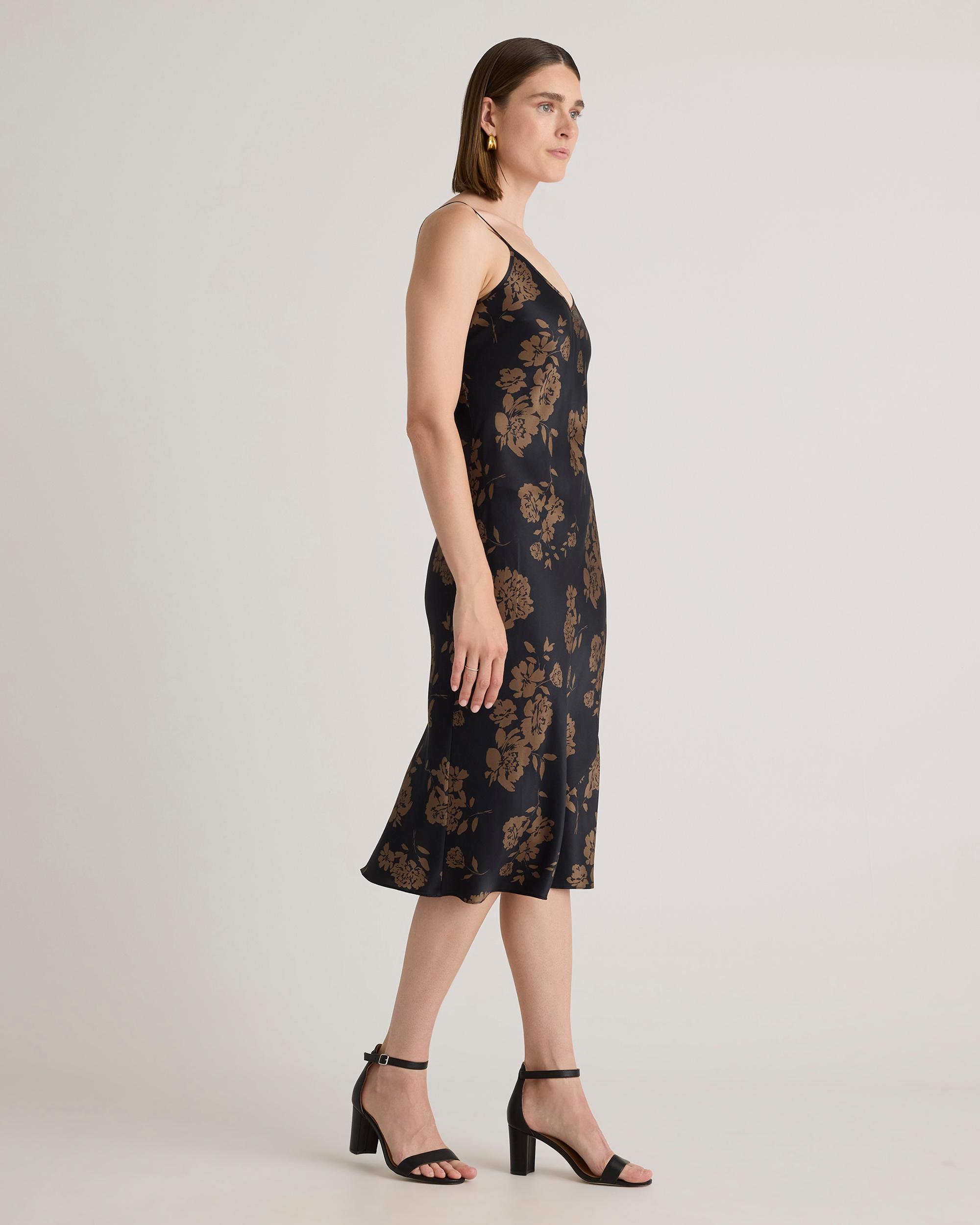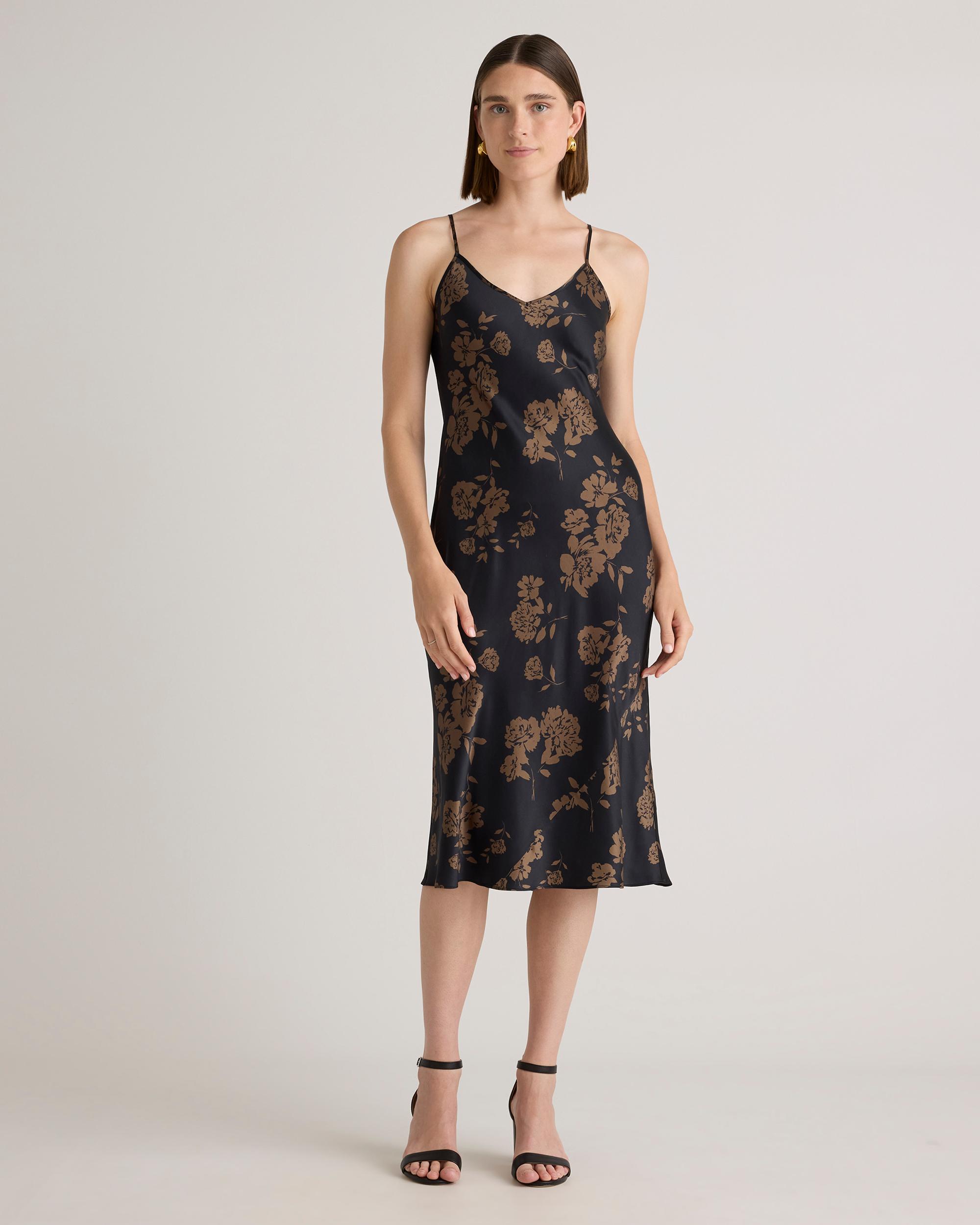 We love the midi length and bias cut of this dress! This super flattering fit is made from 100% mulberry silk, in a satin finish. The kicker? Our silk is washable. Easy to style, easy to wash for low-maintenance luxe. Plus, silk fiber contains 18 kinds of amino acids that make it amazing for skin nourishment, hypo-allergenic, and naturally thermoregulating to help maintain body temperature. Also offered in sizes 1X-3X. | Quince | Women's Slip Dress in Caper Eclipse, Size XS, Silk
