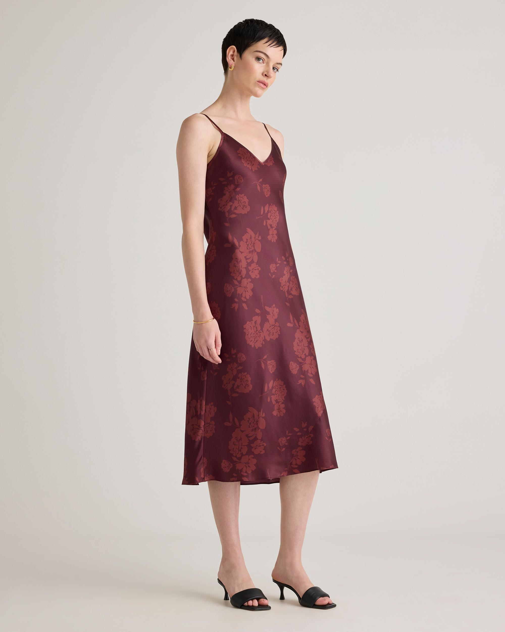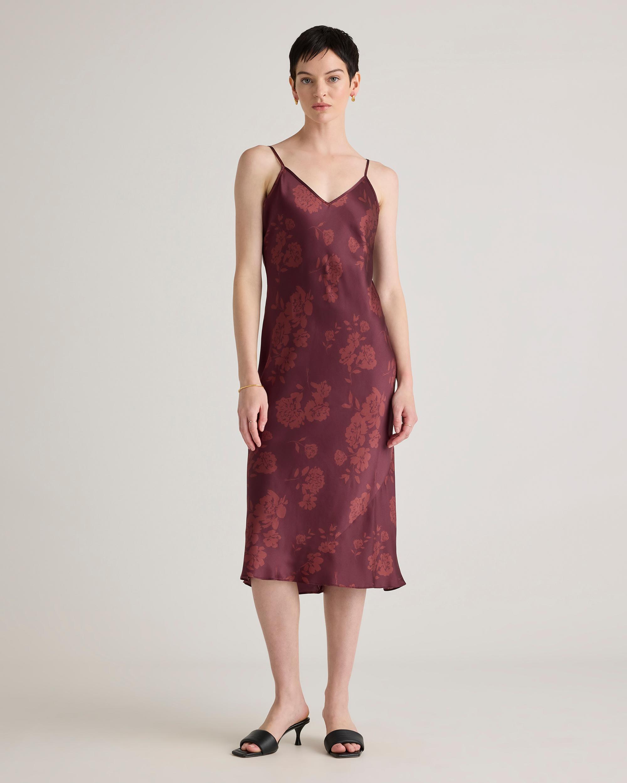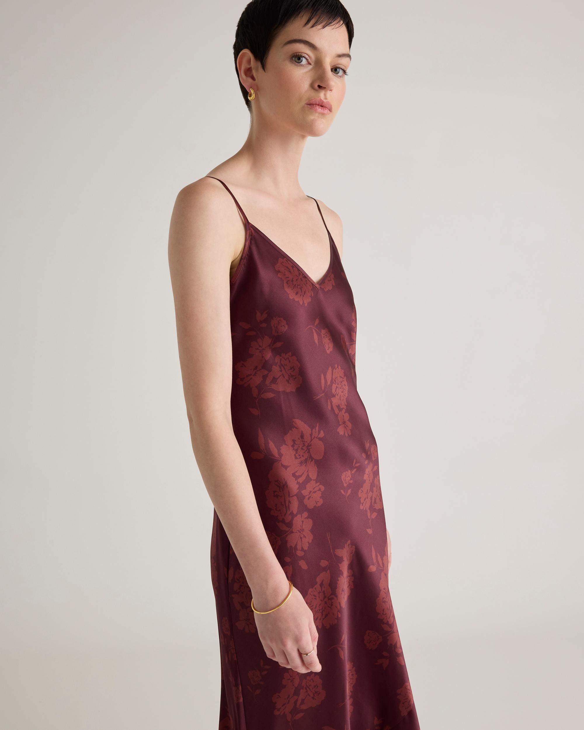 We love the midi length and bias cut of this dress! This super flattering fit is made from 100% mulberry silk, in a satin finish. The kicker? Our silk is washable. Easy to style, easy to wash for low-maintenance luxe. Plus, silk fiber contains 18 kinds of amino acids that make it amazing for skin nourishment, hypo-allergenic, and naturally thermoregulating to help maintain body temperature. Also offered in sizes 1X-3X. | Quince | Women's Slip Dress in Ruby Noir, Size XL, Silk