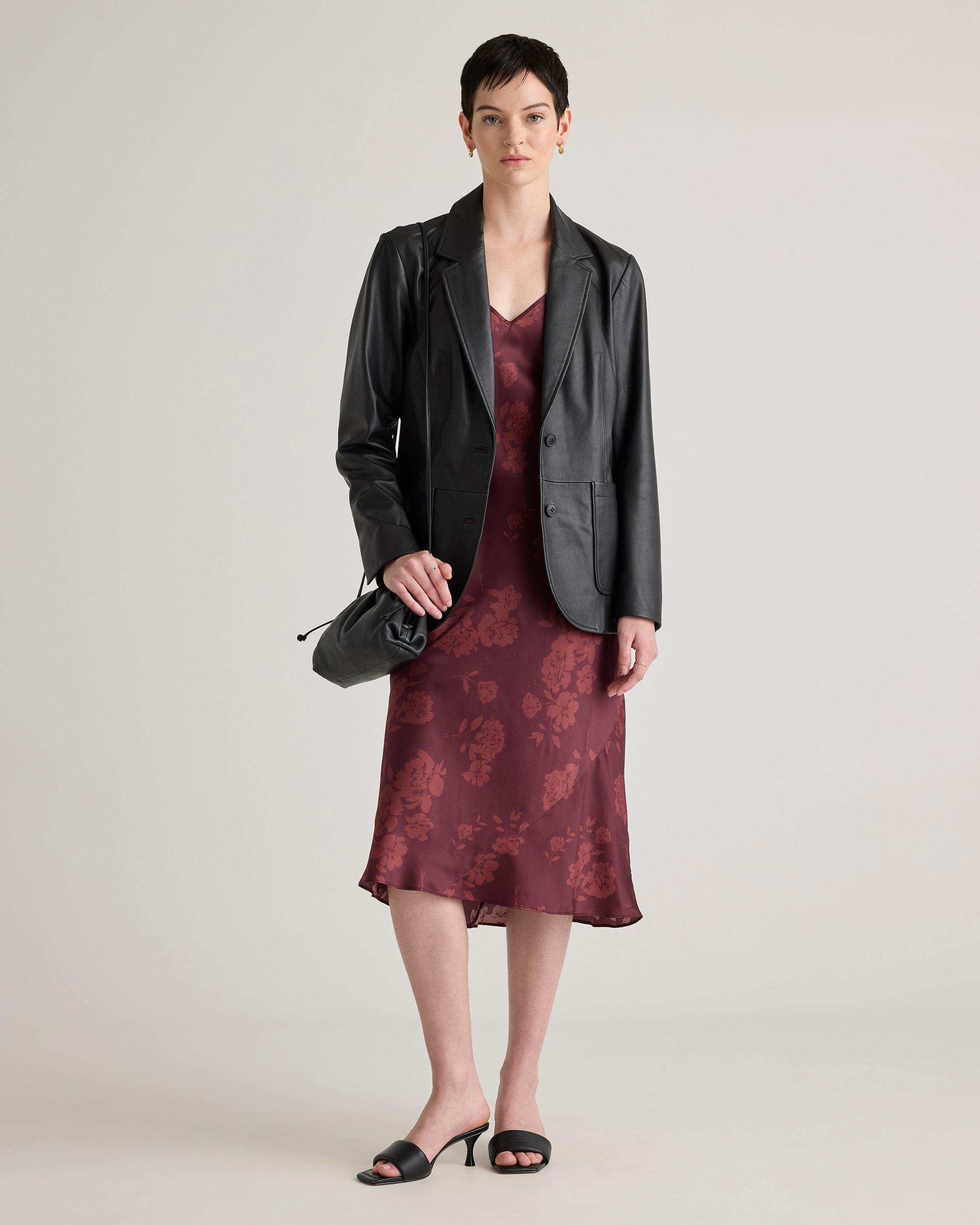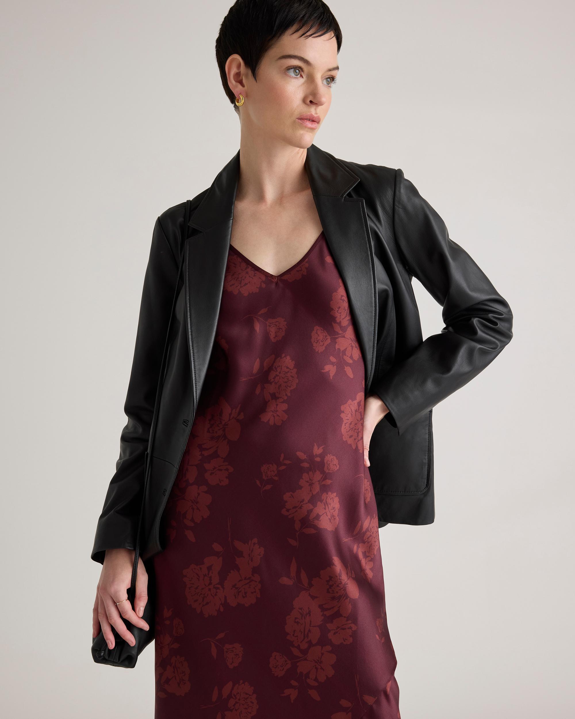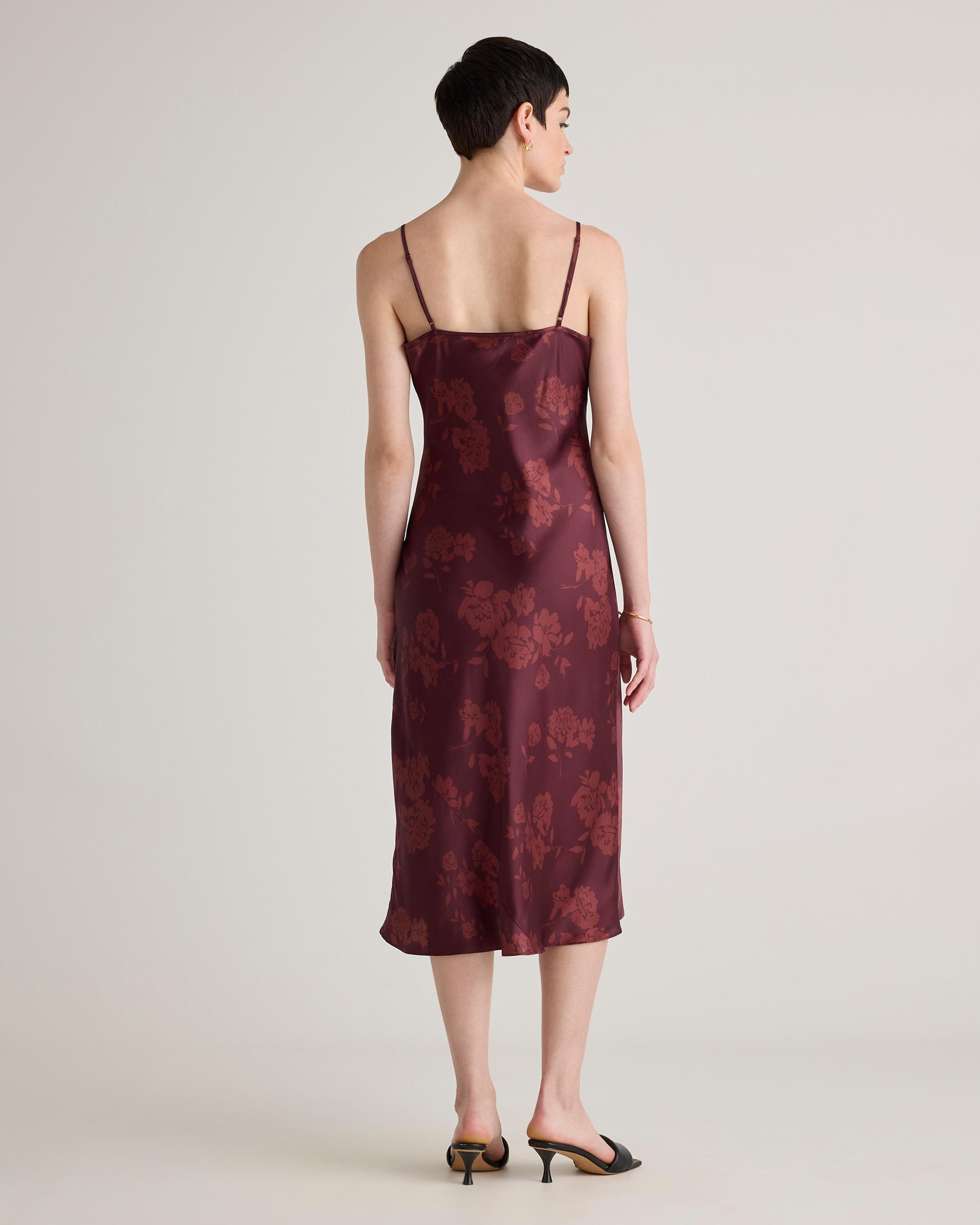 We love the midi length and bias cut of this dress! This super flattering fit is made from 100% mulberry silk, in a satin finish. The kicker? Our silk is washable. Easy to style, easy to wash for low-maintenance luxe. Plus, silk fiber contains 18 kinds of amino acids that make it amazing for skin nourishment, hypo-allergenic, and naturally thermoregulating to help maintain body temperature. Also offered in sizes 1X-3X. | Quince | Women's Slip Dress in Ruby Noir, Size XL, Silk