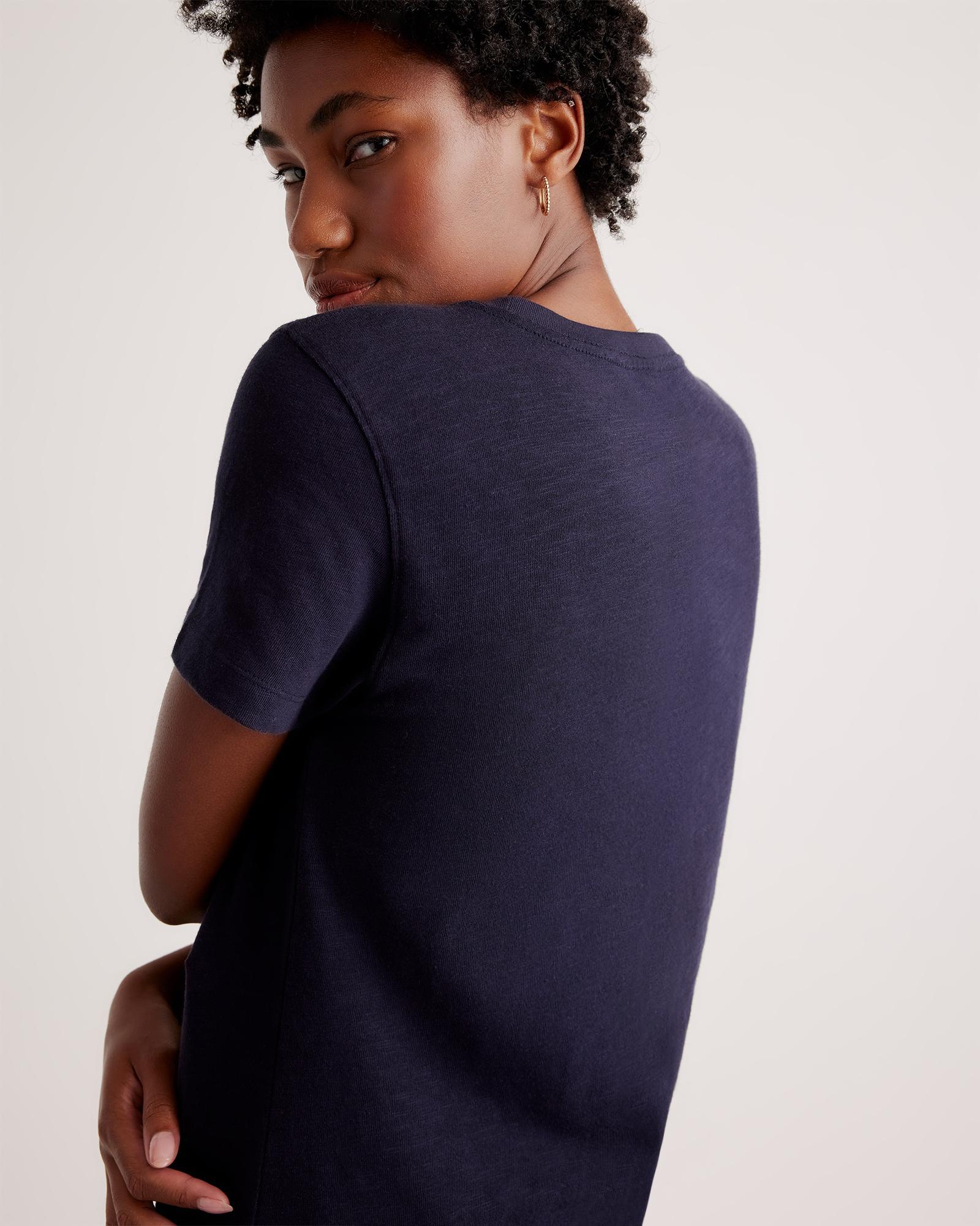 When comfort is your M.O., get it done in our 100% Organic Cotton Slub Crewneck Tee. Made from 100% organic cotton, it's exactly the softness and breathability you're looking for. Perfect for everyday-casual vibes with a slub texture and slightly relaxed fit. | Quince | Women's Slub Crewneck T-Shirt in Navy, Size Medium, Organic Cotton