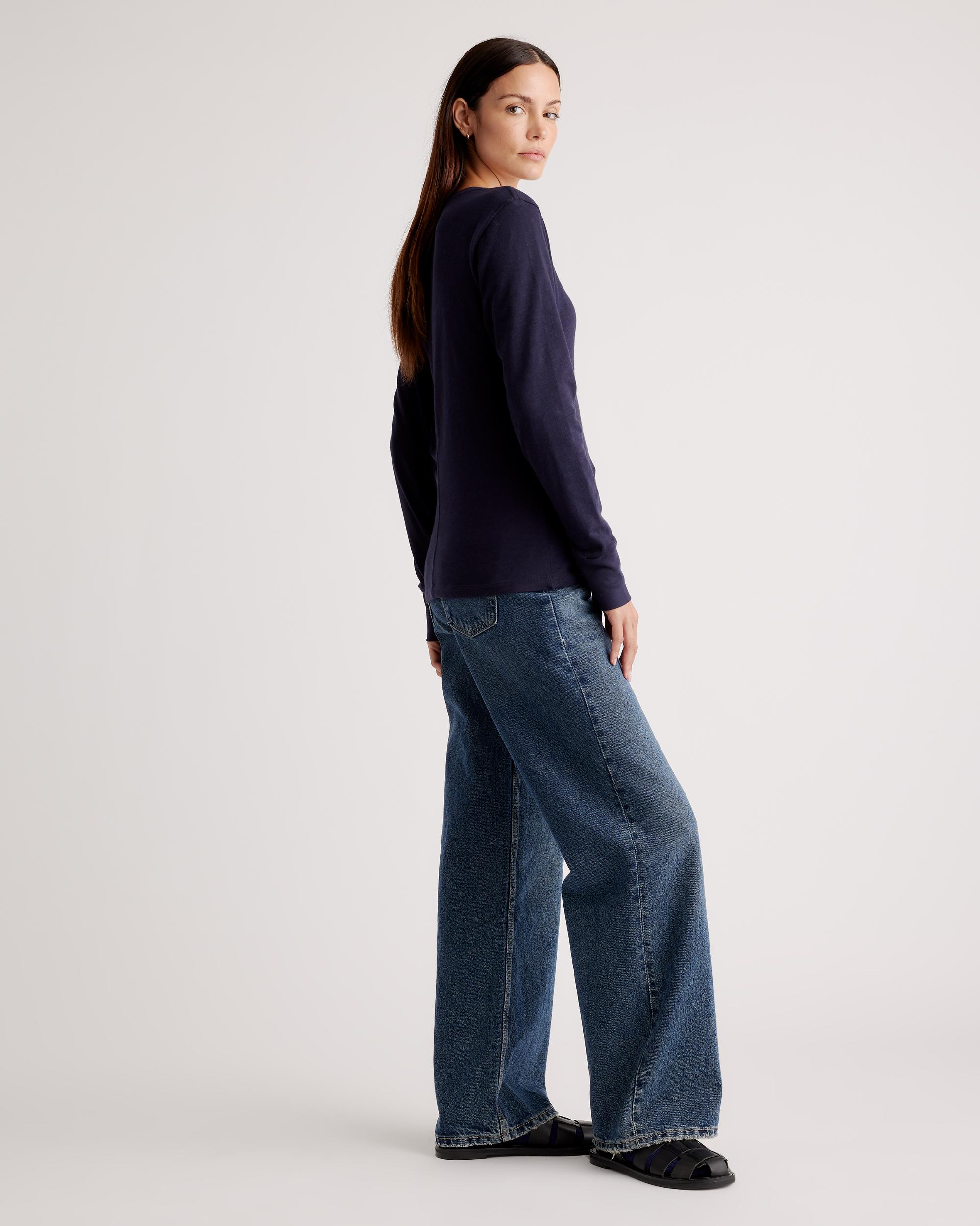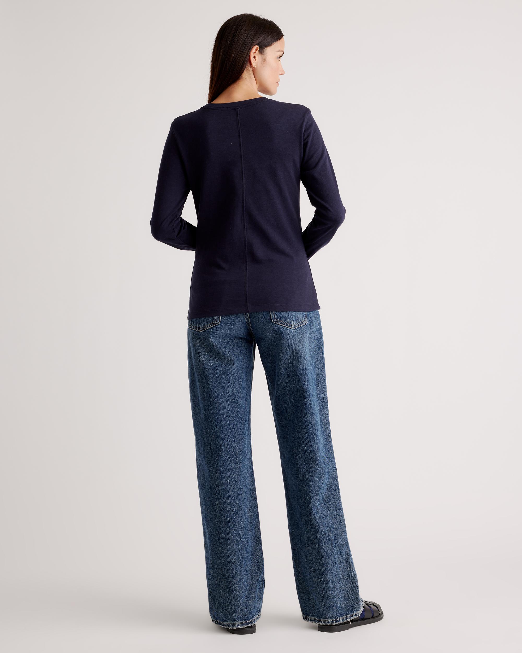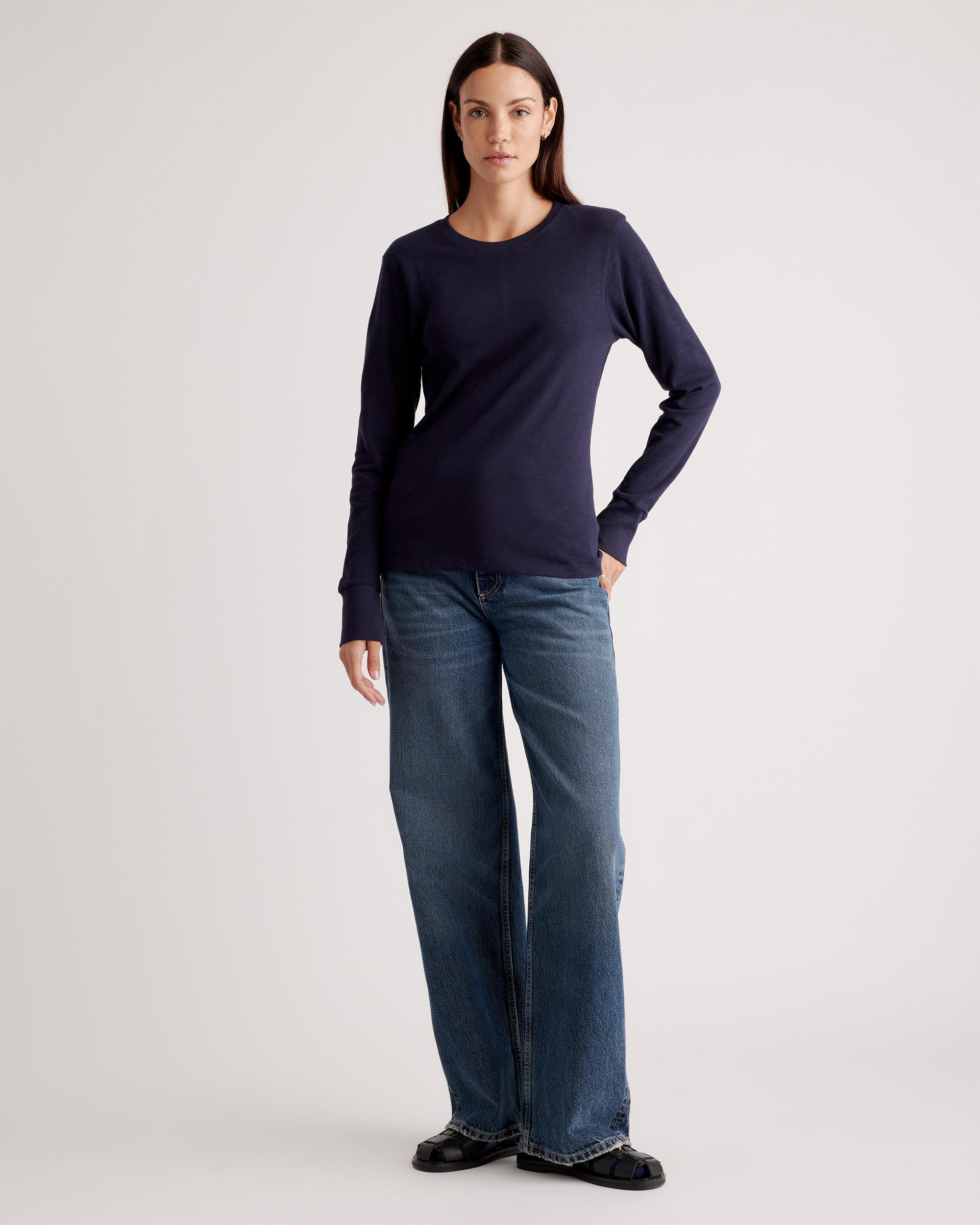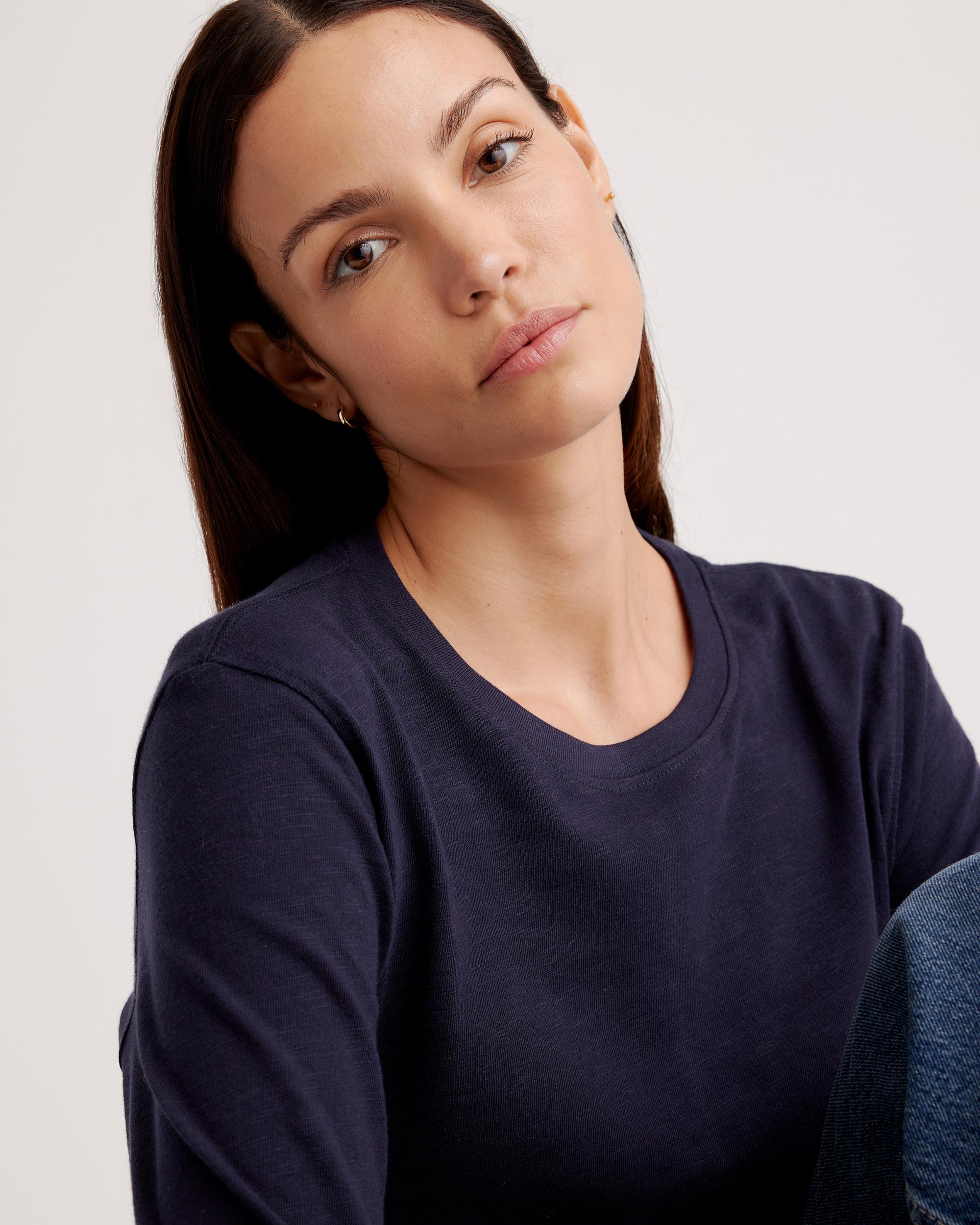 Consider this 100% Organic Cotton Slub Long Sleeve Tee an instant upgrade for your wardrobe essentials. Made from organic cotton, the slub jersey fabric is light, ideal for layering, and feels *just right* every time. | Quince | Women's Slub Long Sleeve T-Shirt in Navy, Size Large, Organic Cotton