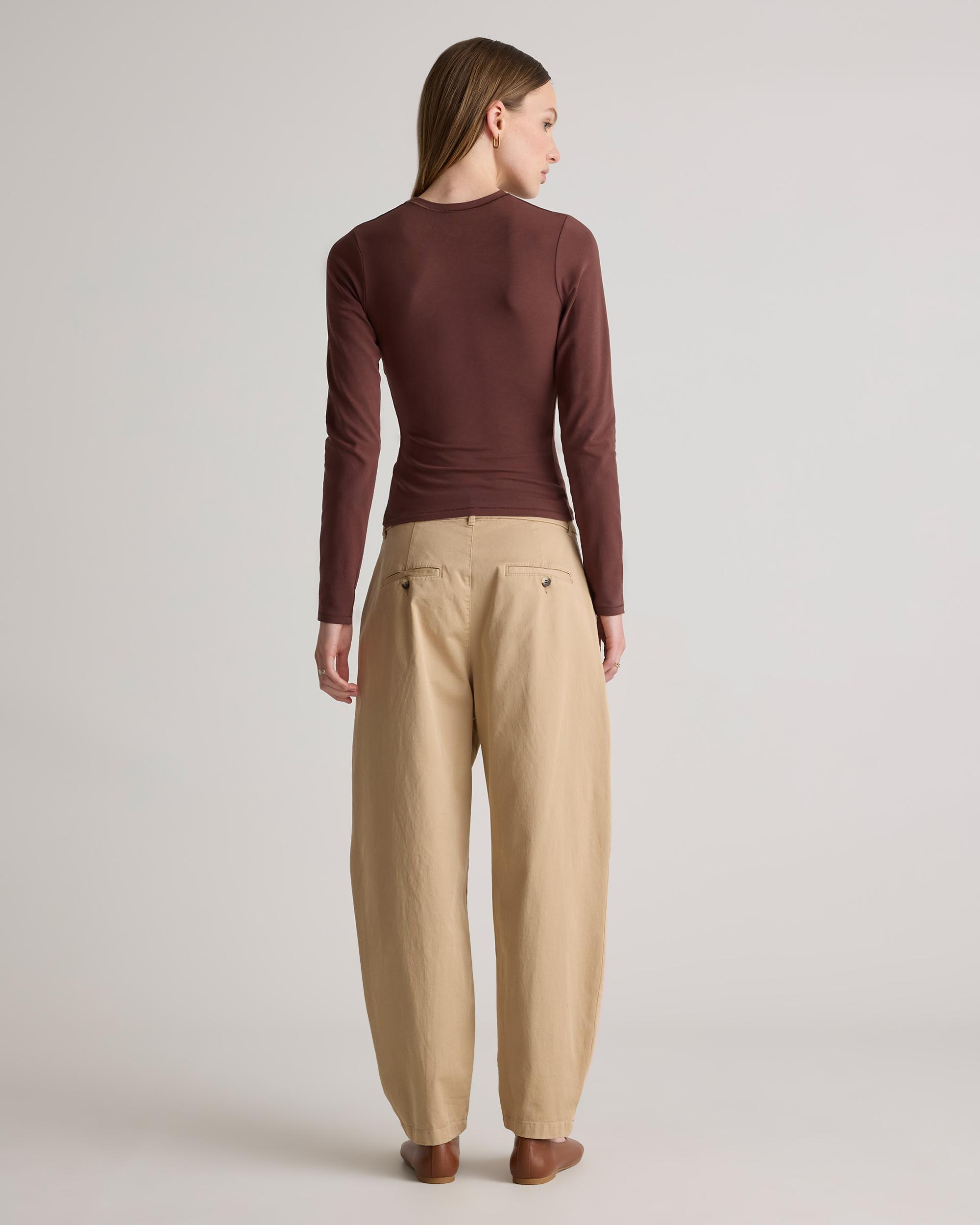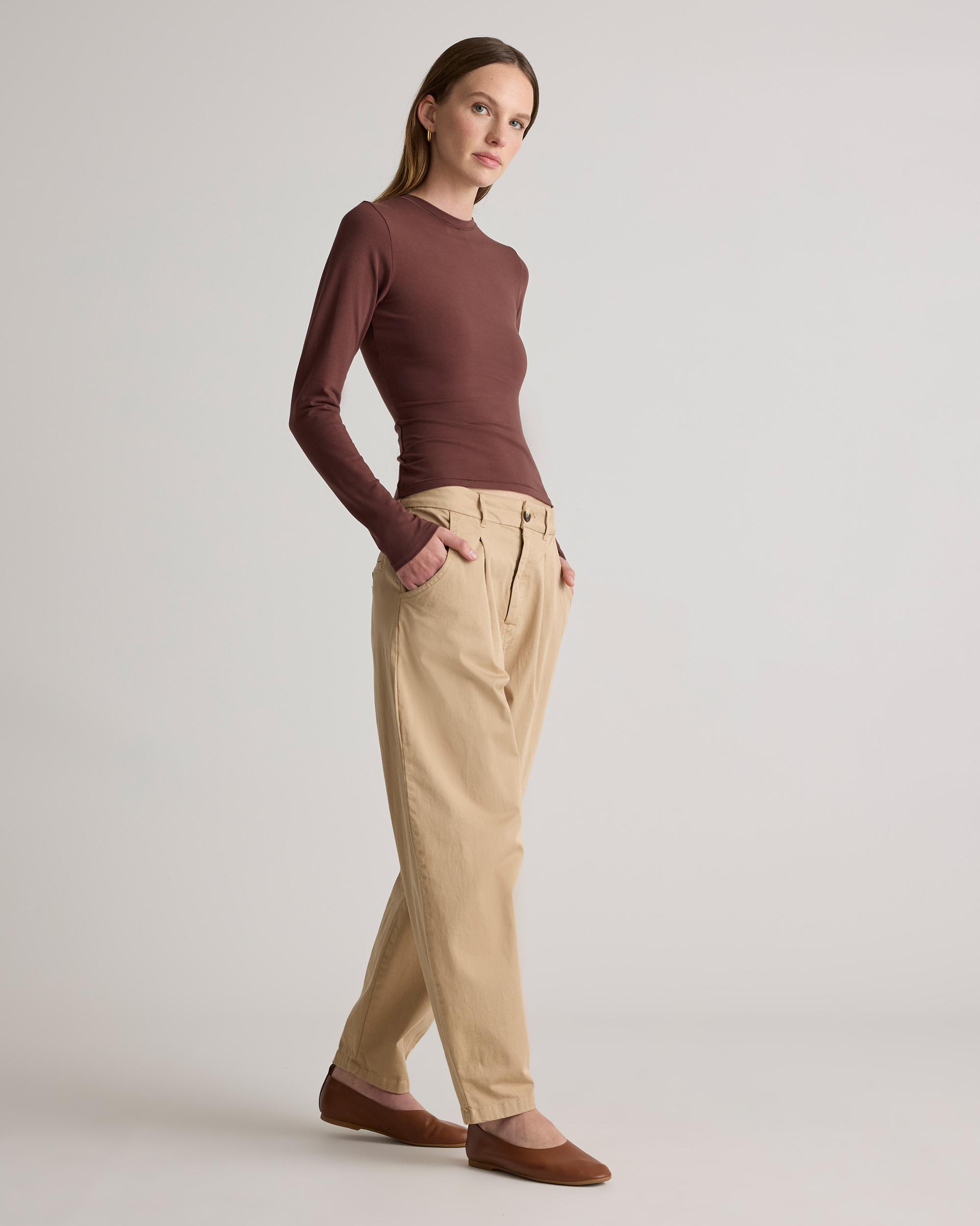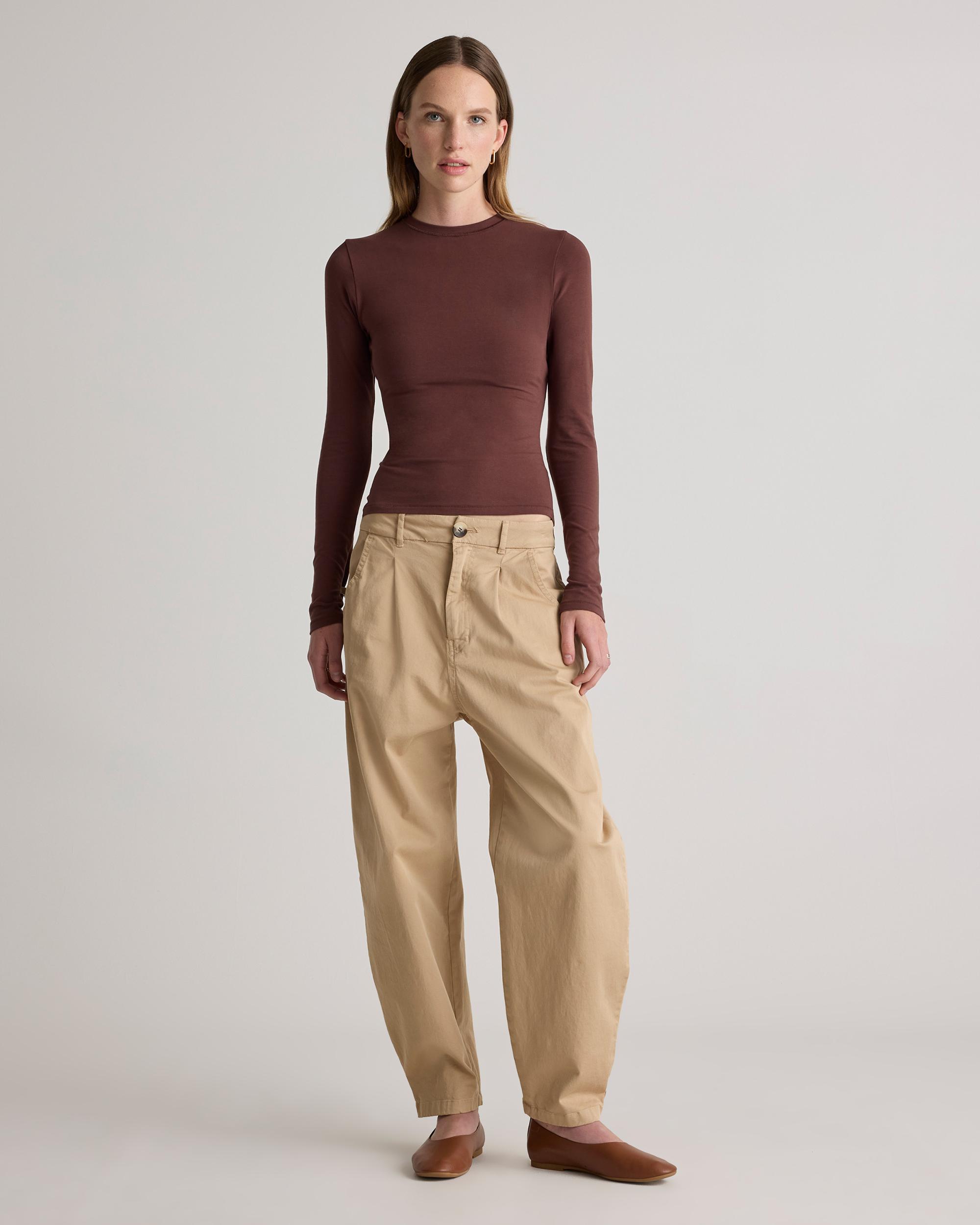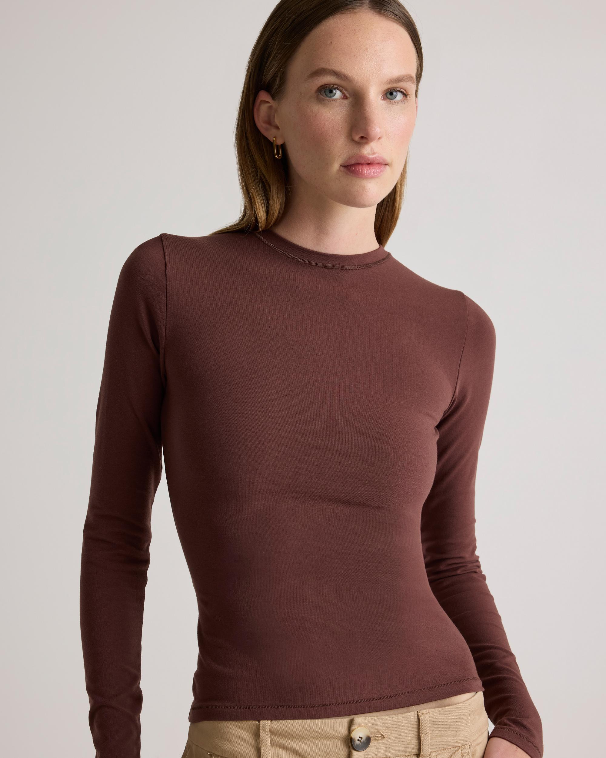 Upgrade your everyday base layer with our Stretch Cotton Jersey Fitted Long Sleeve T-Shirt. Crafted out of a supportive, yet lightweight and buttery soft, blend of organic cotton and spandex, this long sleeve tee is perfectly form-fitting and versatile for any outfit. | Quince | Women's Stretch Cotton Jersey Fitted Long Sleeve T-Shirt in Cocoa, Size Large, Organic Cotton