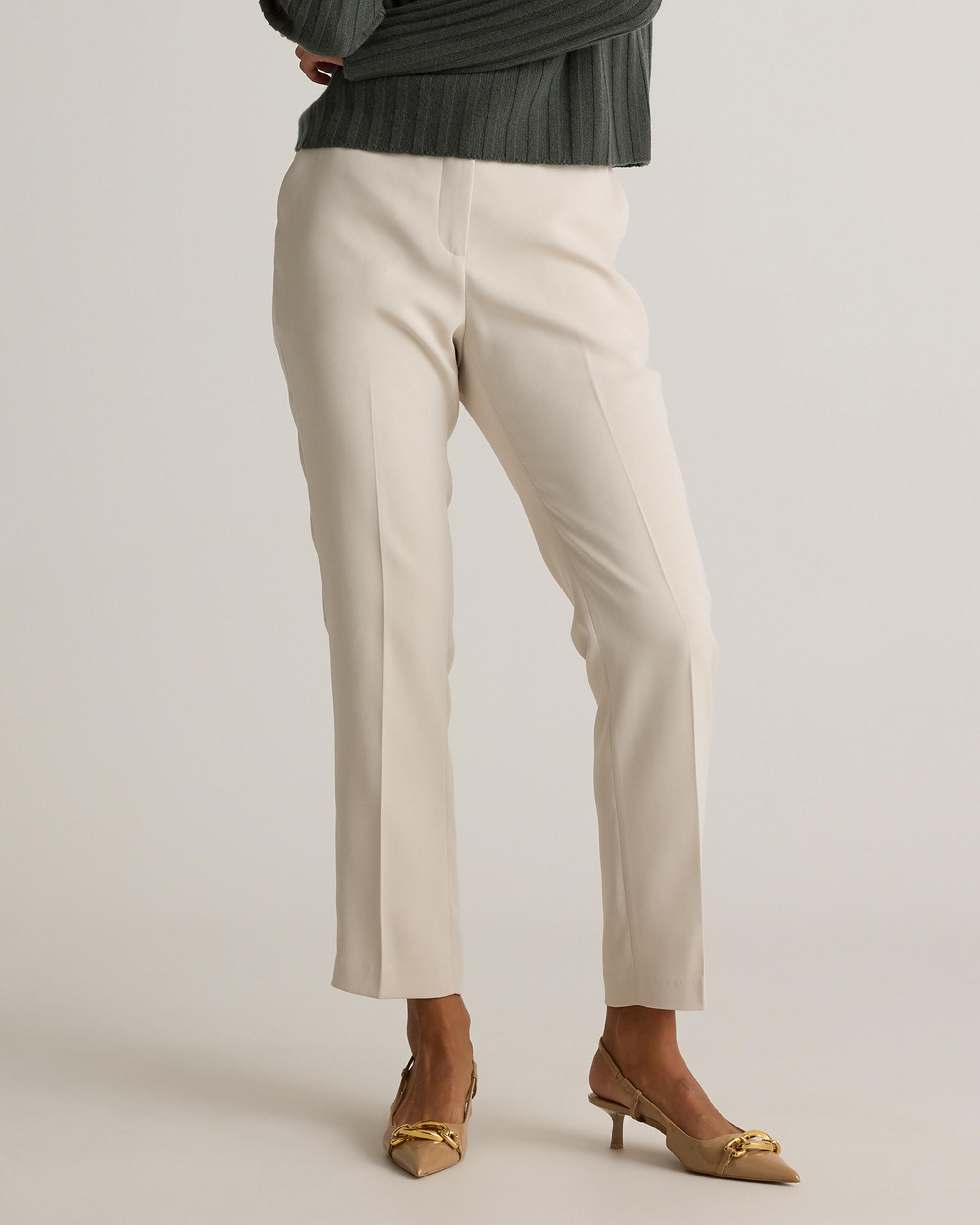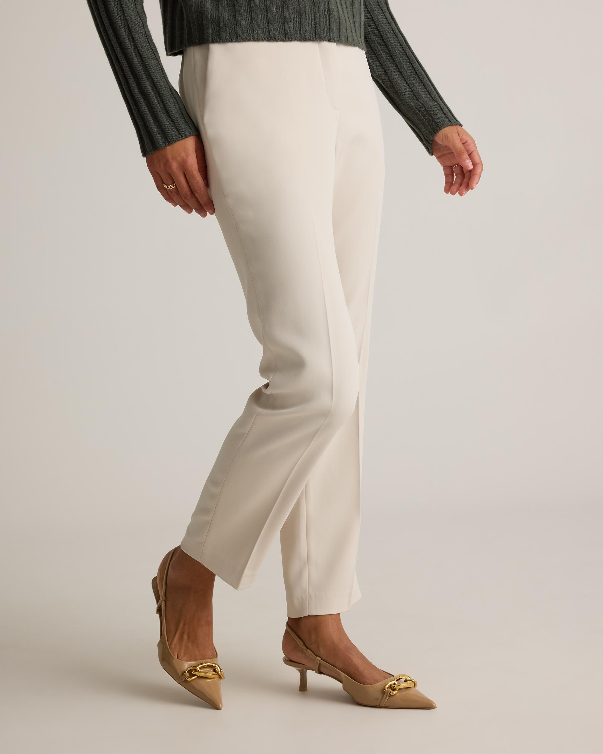 Discover the perfect blend of comfort and sophistication with our Stretch Crepe Ankle Pants. Designed for the modern woman on the go, these pants offer a flattering fit that transitions seamlessly from day to night. | Quince | Women's Stretch Crepe Ankle Pants in Sand, Size 0, Recycled Polyester