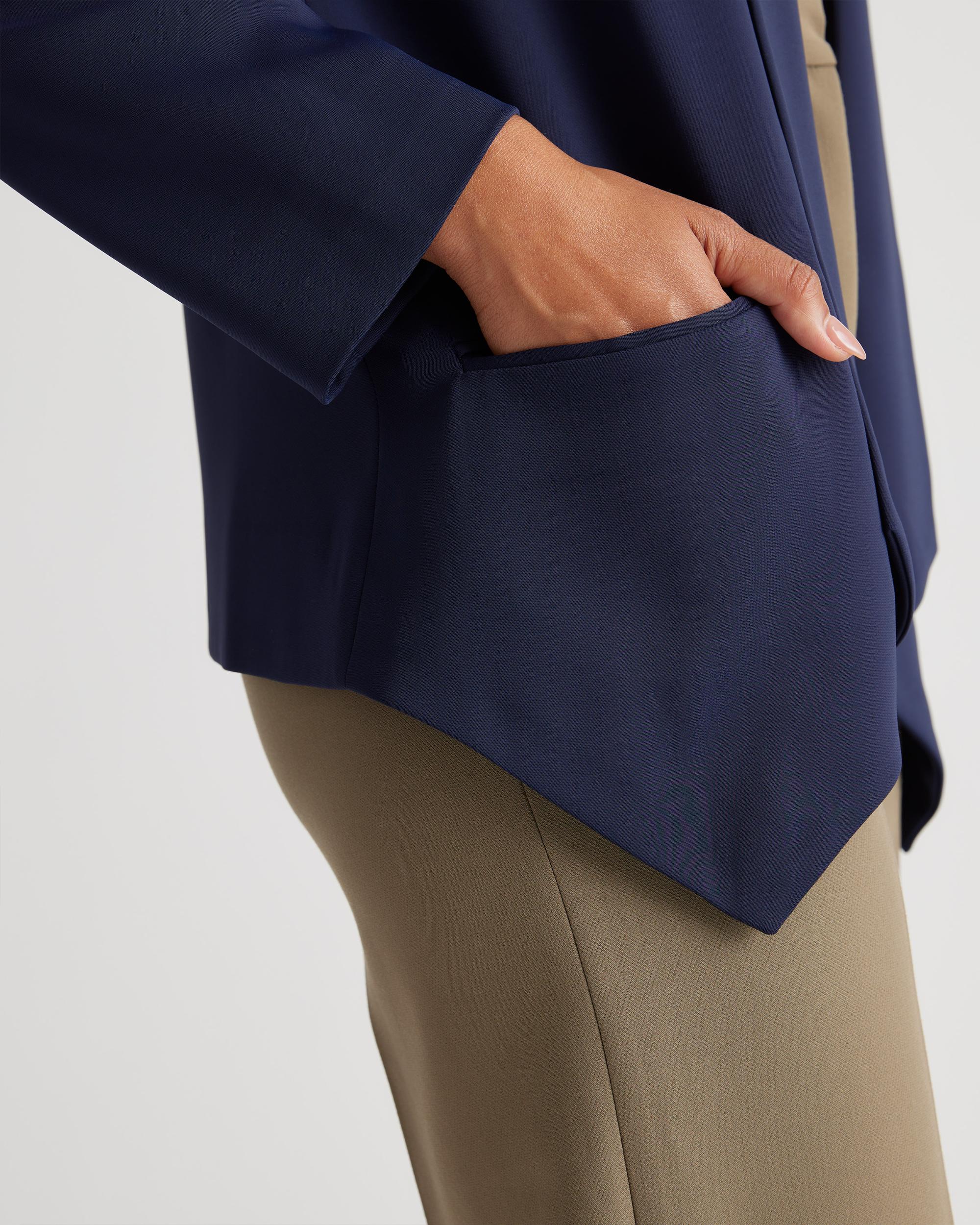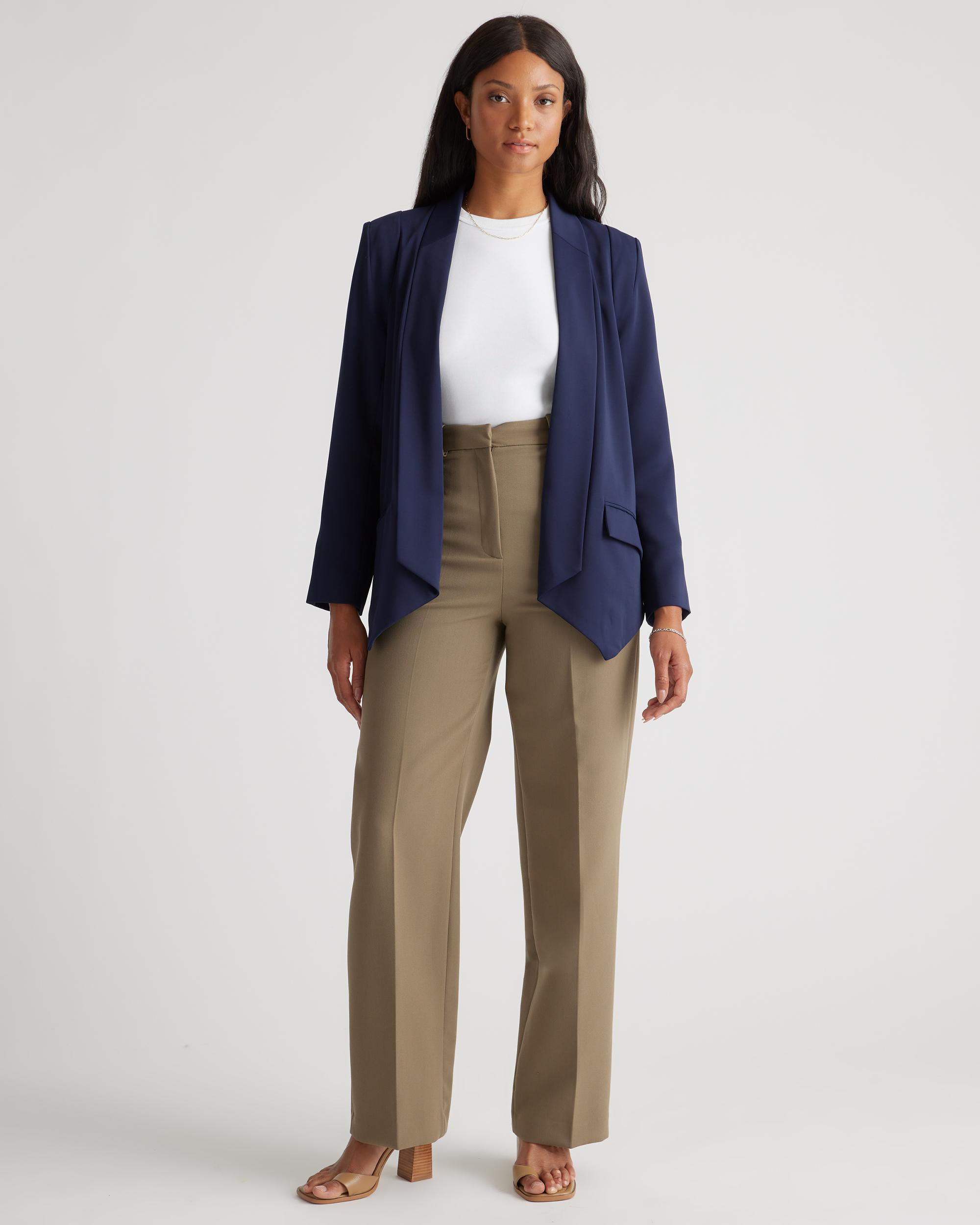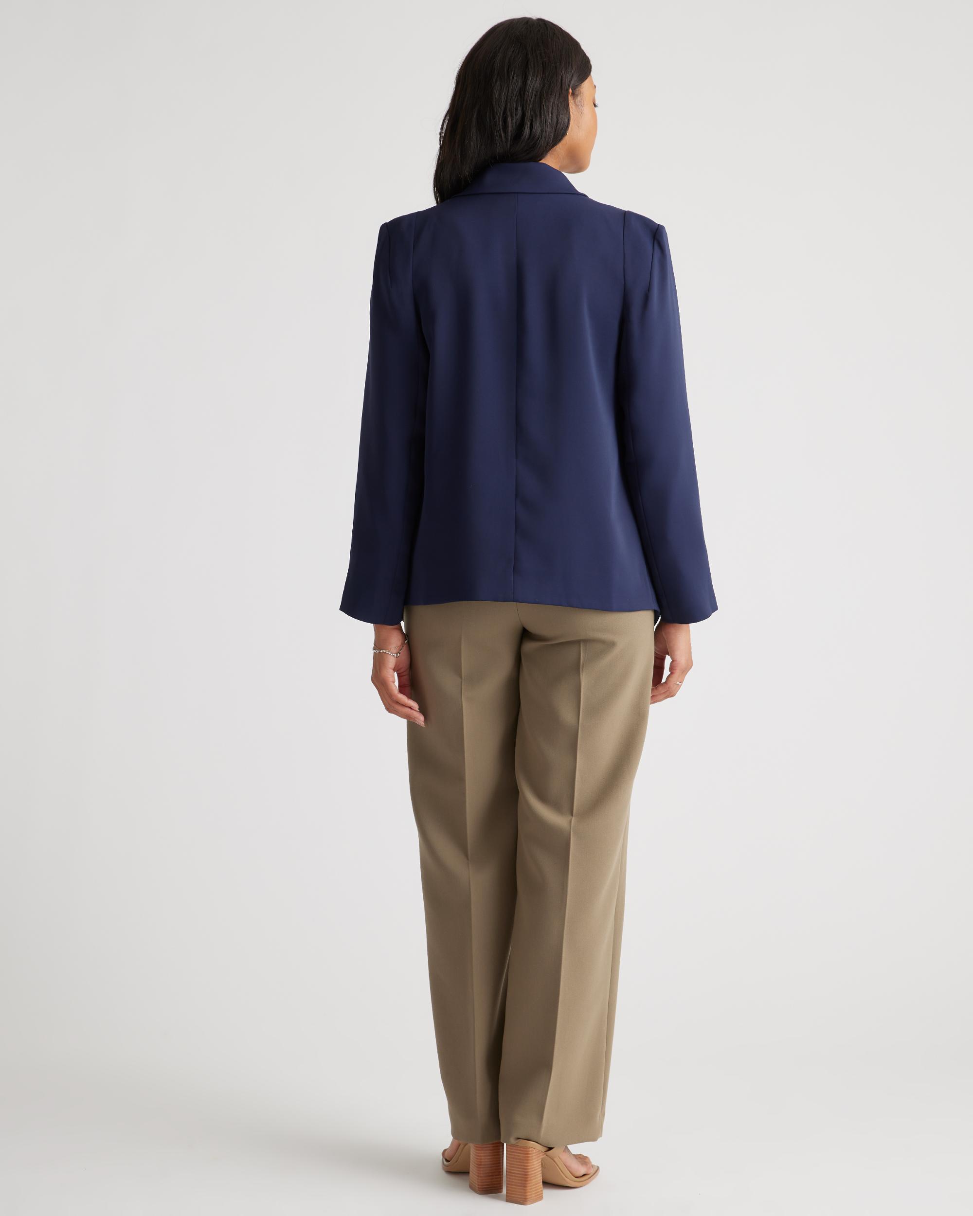 Layer up and level up in our open-front blazer. This drapey yet tailored blazer is a great way to add a little polish to any look and, best part, it won't wrinkle. Plus, it's made from recycled yarn, so you can feel and look good wearing it. | Quince | Women's Stretch Crepe Open Blazer in Navy, Size XS, Recycled Polyester