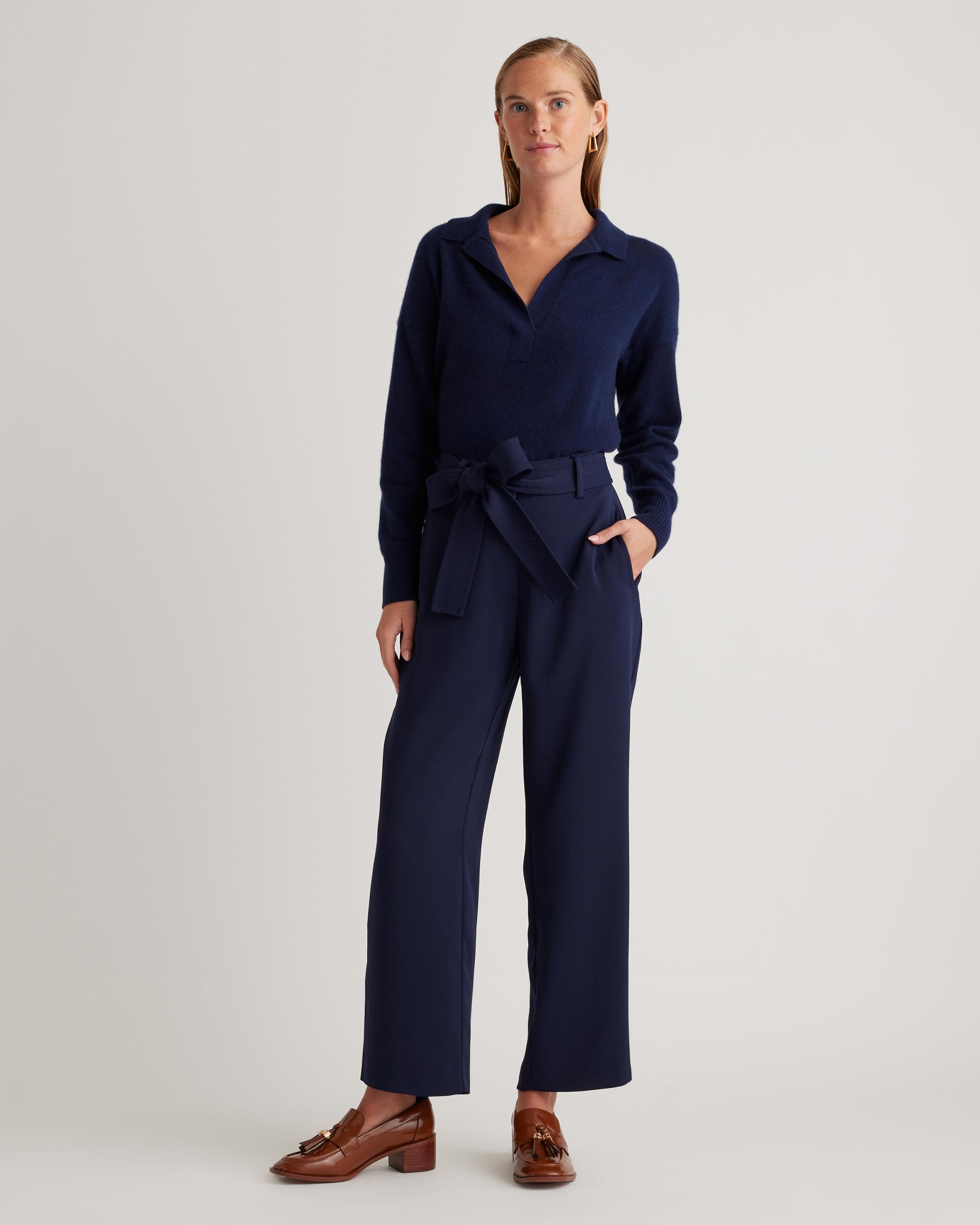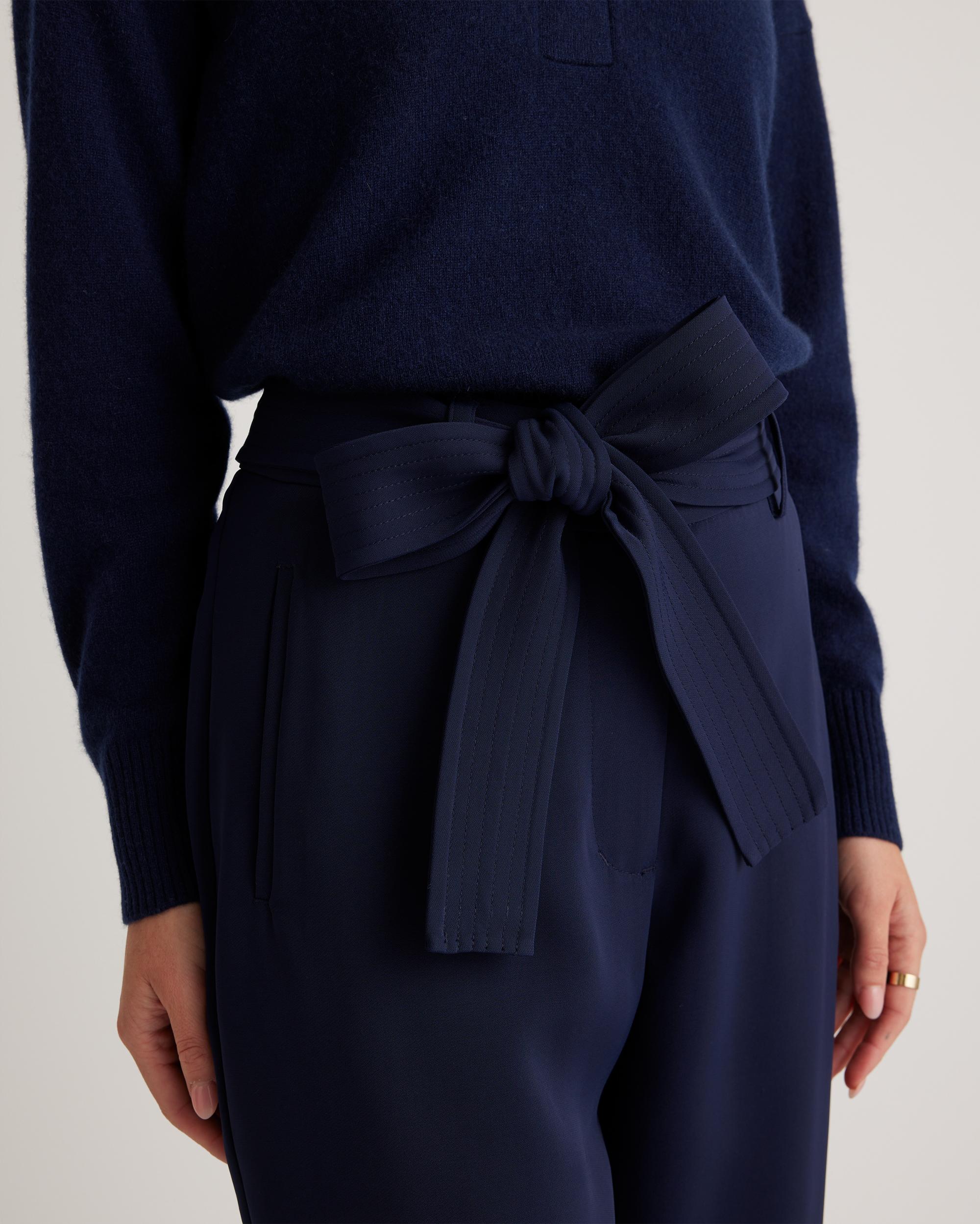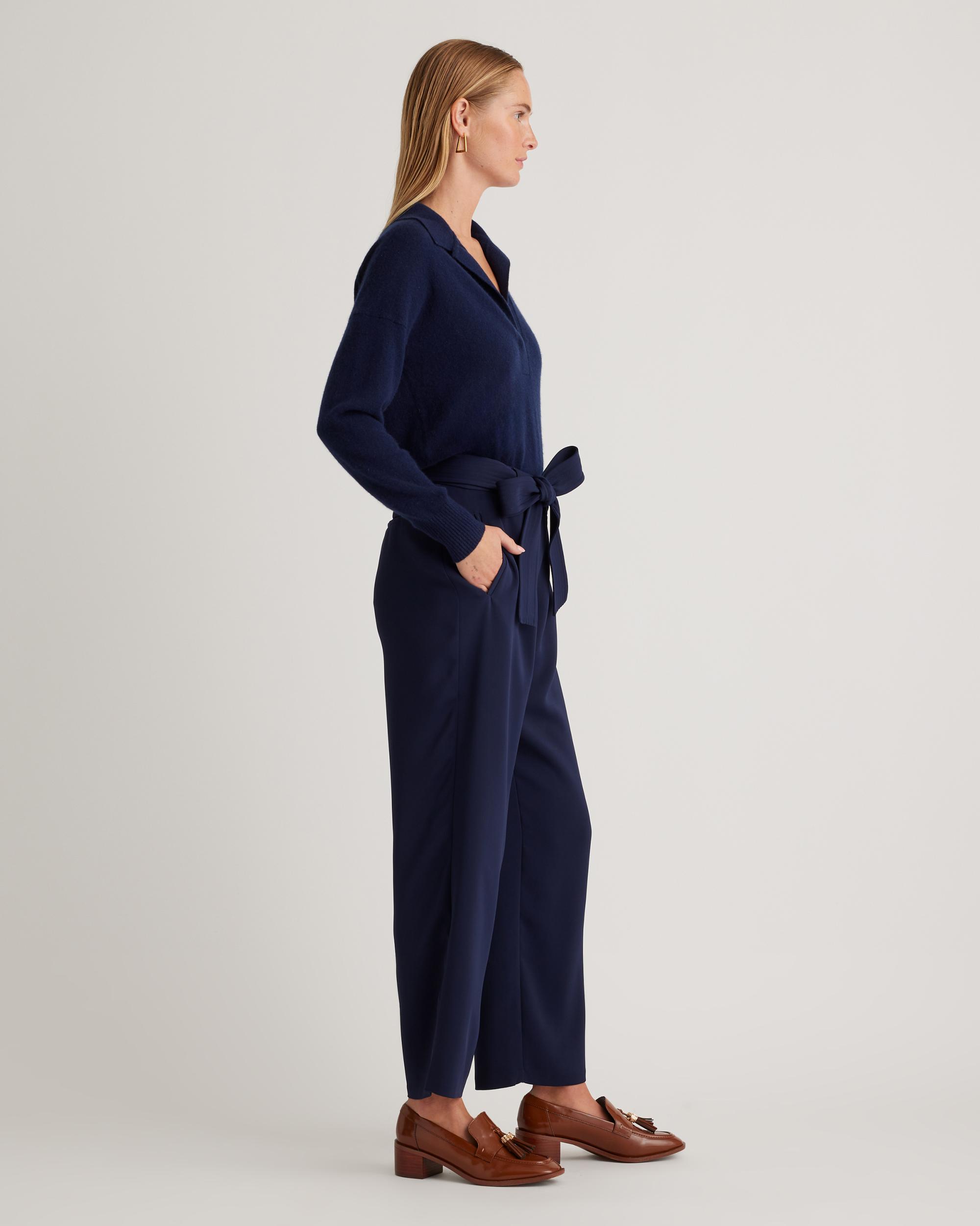 Update your wardrobe with an always-chic paperbag pant. With a little stretch, plenty of pockets, and a removable belt, this will become your go-to pant. Easily dress up or down! | Quince | Women's Stretch Crepe Paperbag Pants in Navy, Size 0, Polyester