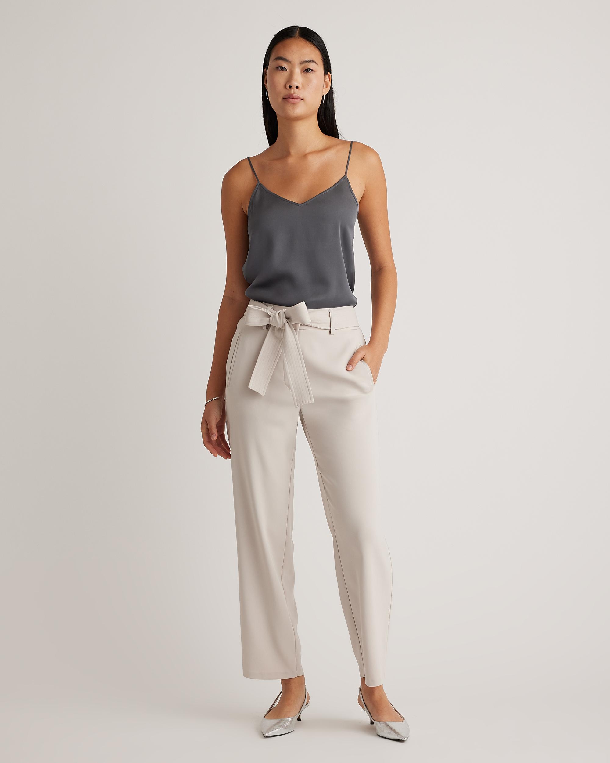 Update your wardrobe with an always-chic paperbag pant. With a little stretch, plenty of pockets, and a removable belt, this will become your go-to pant. Easily dress up or down! | Quince | Women's Stretch Crepe Paperbag Pants in Sand, Size 16, Polyester