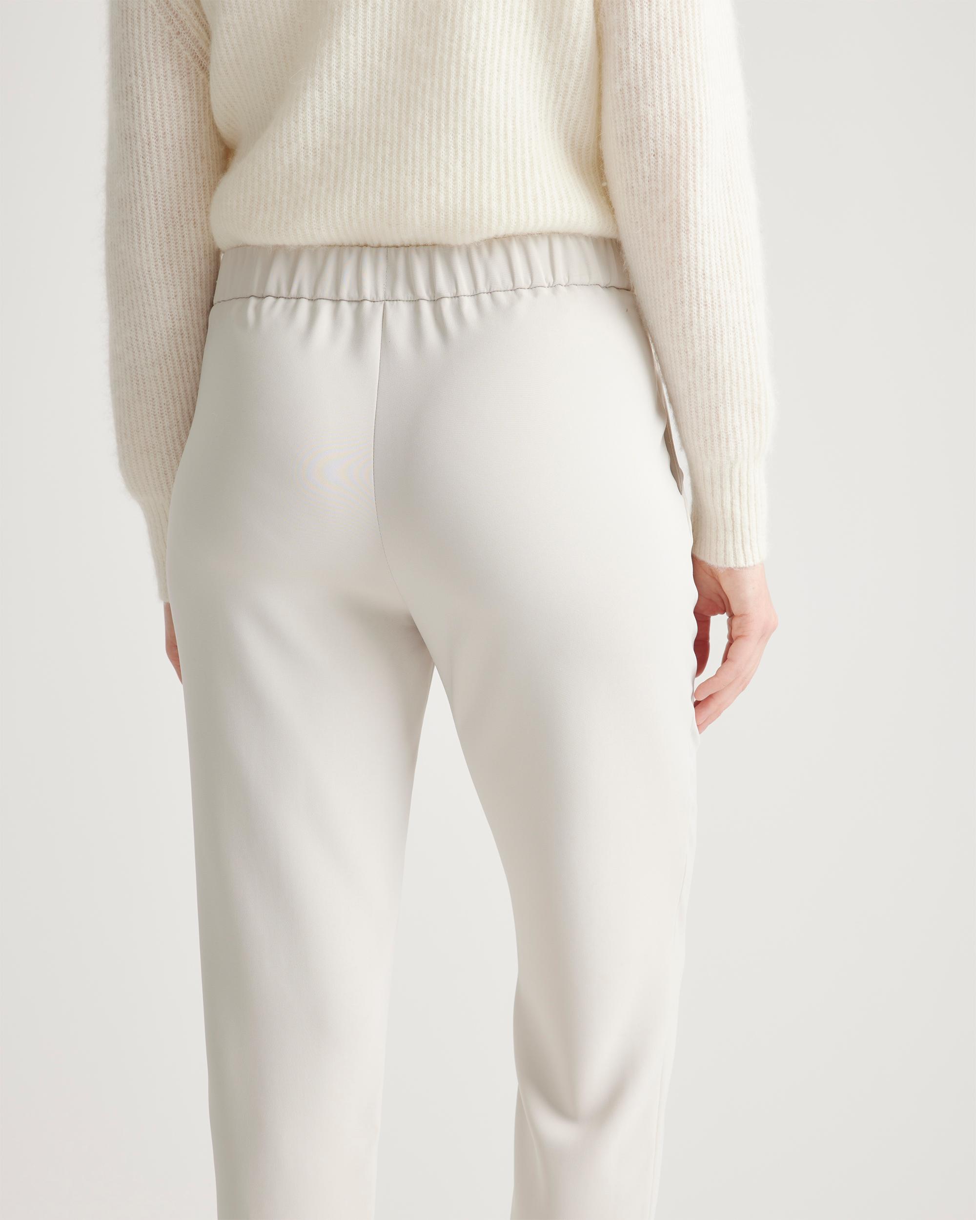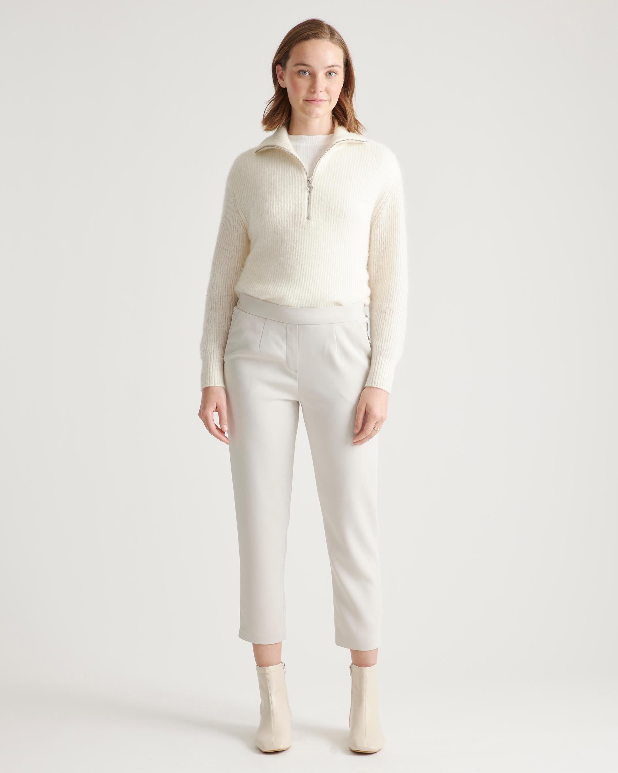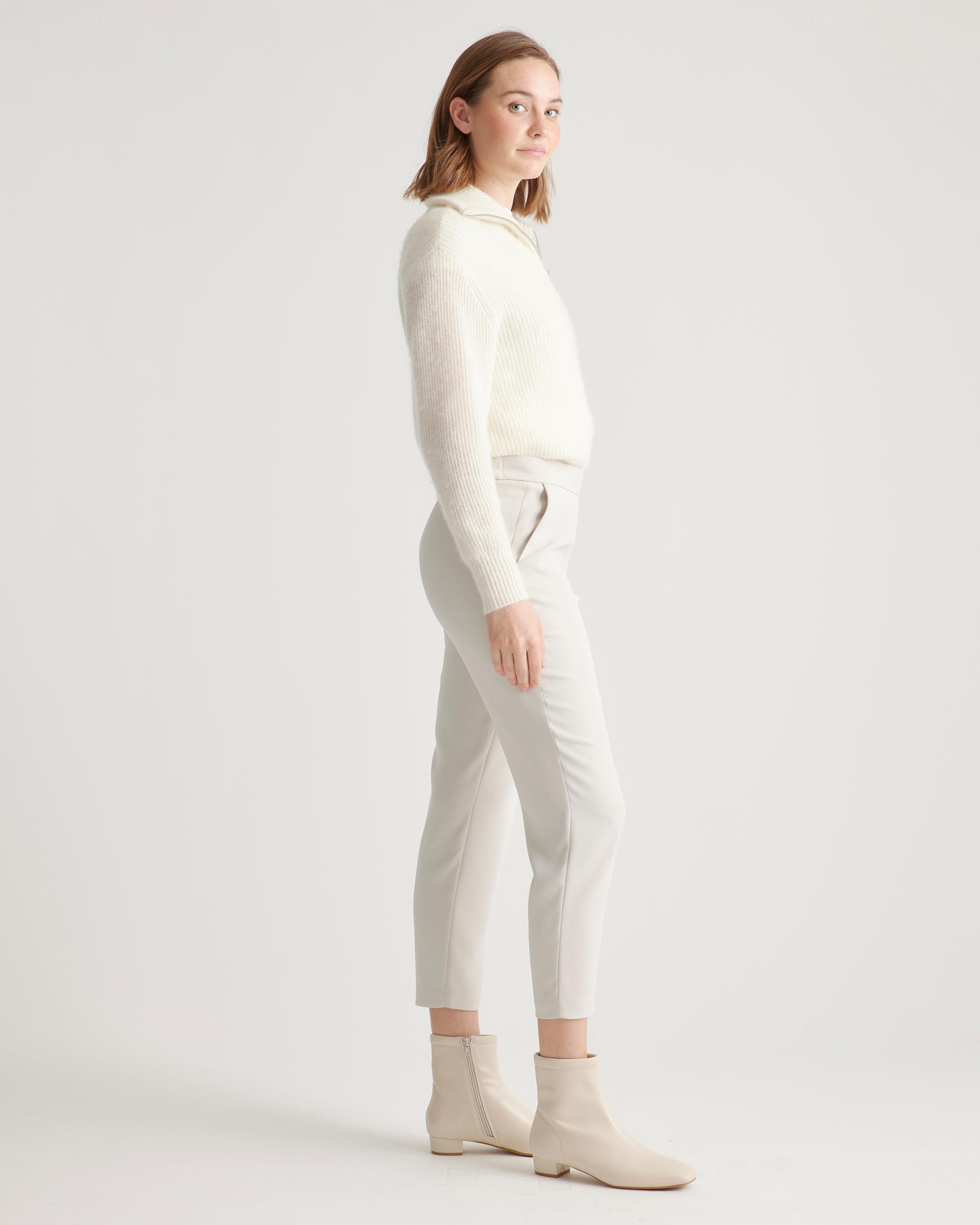 We call these ready-to-wear on repeat. Our Stretch Crepe Pleated Ankle Pants is both tailored and laidback with front darts and slim, cropped legs for a relaxed yet fitted look. The recycled poly-spandex blend and elastic waist keep them all-day comfy, too. Dress them up with a blazer or keep them weekend casual with your favorite cashmere sweater. | Quince | Women's Stretch Crepe Pleated Ankle Pants in Sand, Size 8, Recycled Polyester / Spandex