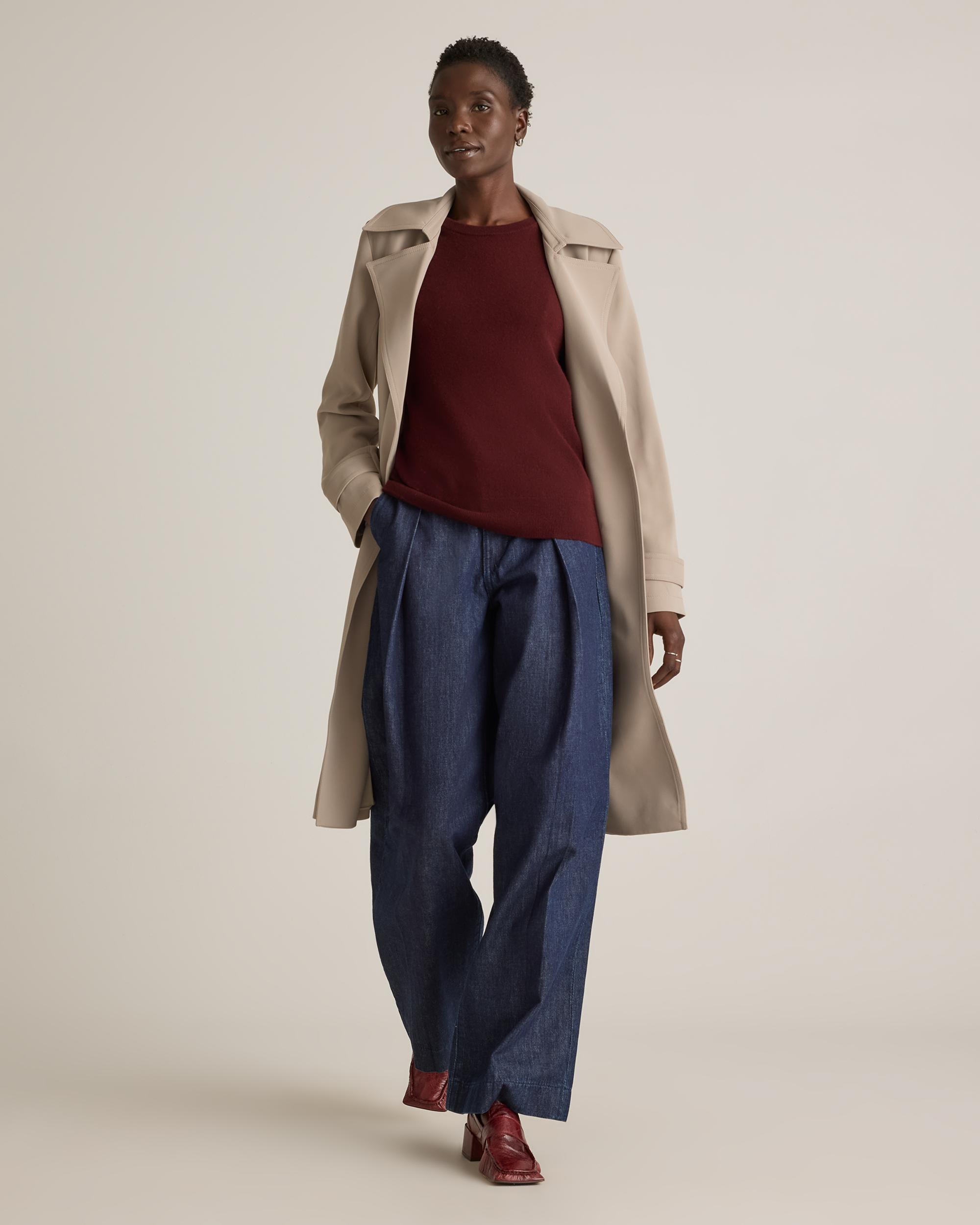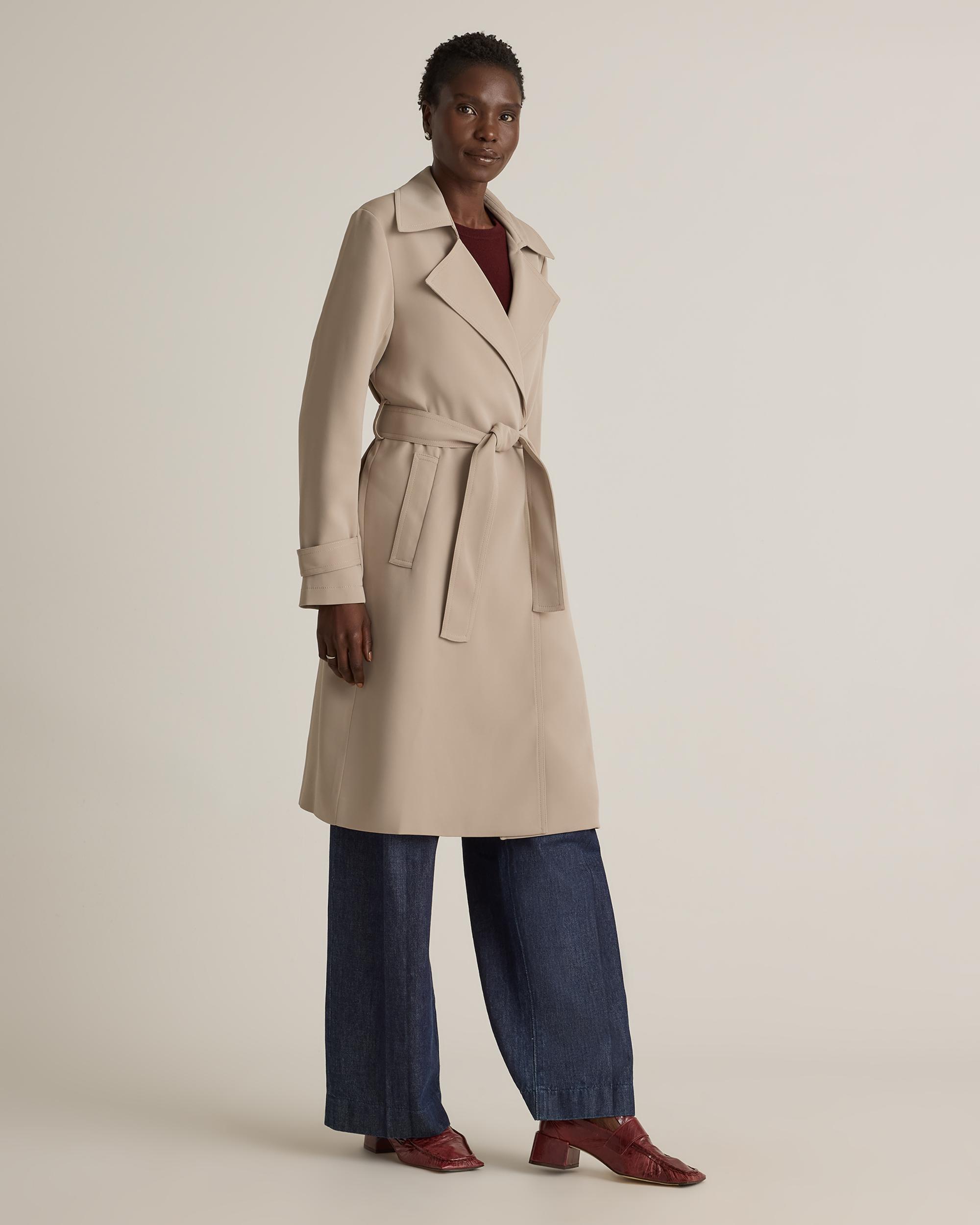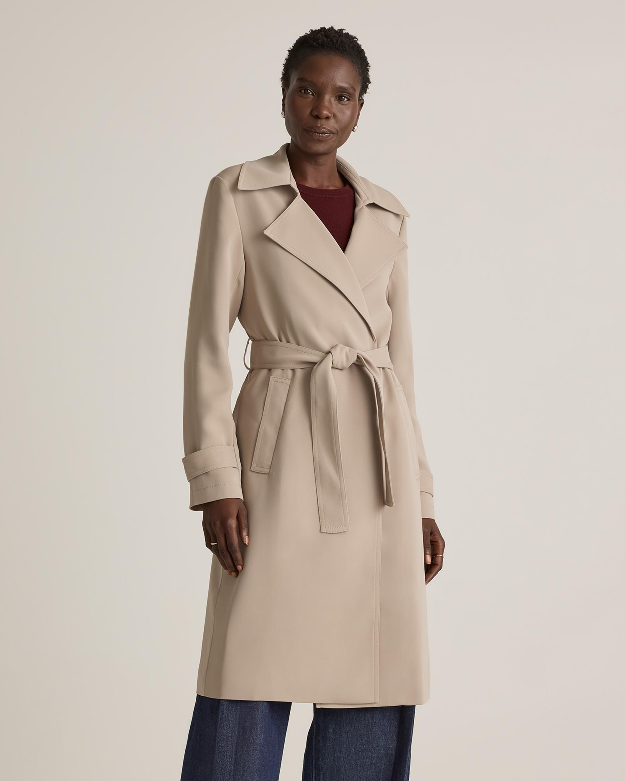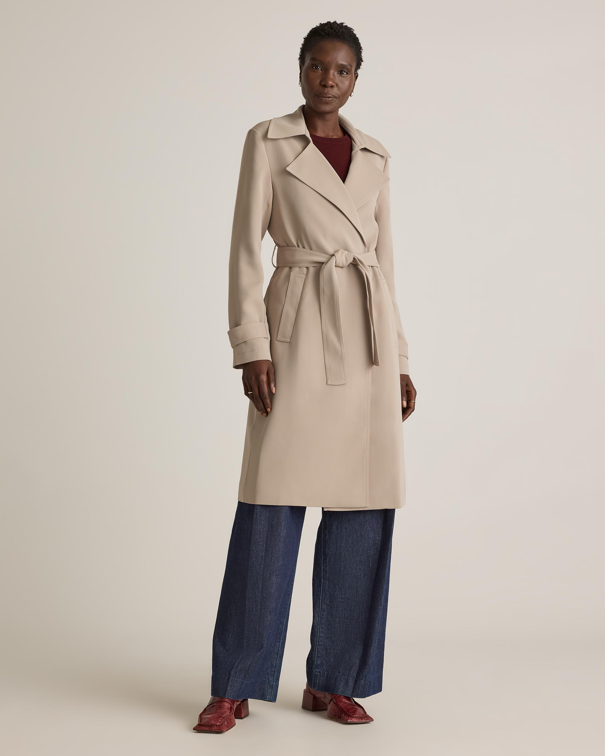 Made from our ultra-wearable stretch crepe, this trench coat will keep you looking polished with its unique wrinkle-resistant properties and sleek silhouette. Try on this timeless style and you'll quickly be impressed with how much of a wardrobe win it is. | Quince | Women's Stretch Crepe Trench Coat in Morel, Size XL, Recycled Polyester