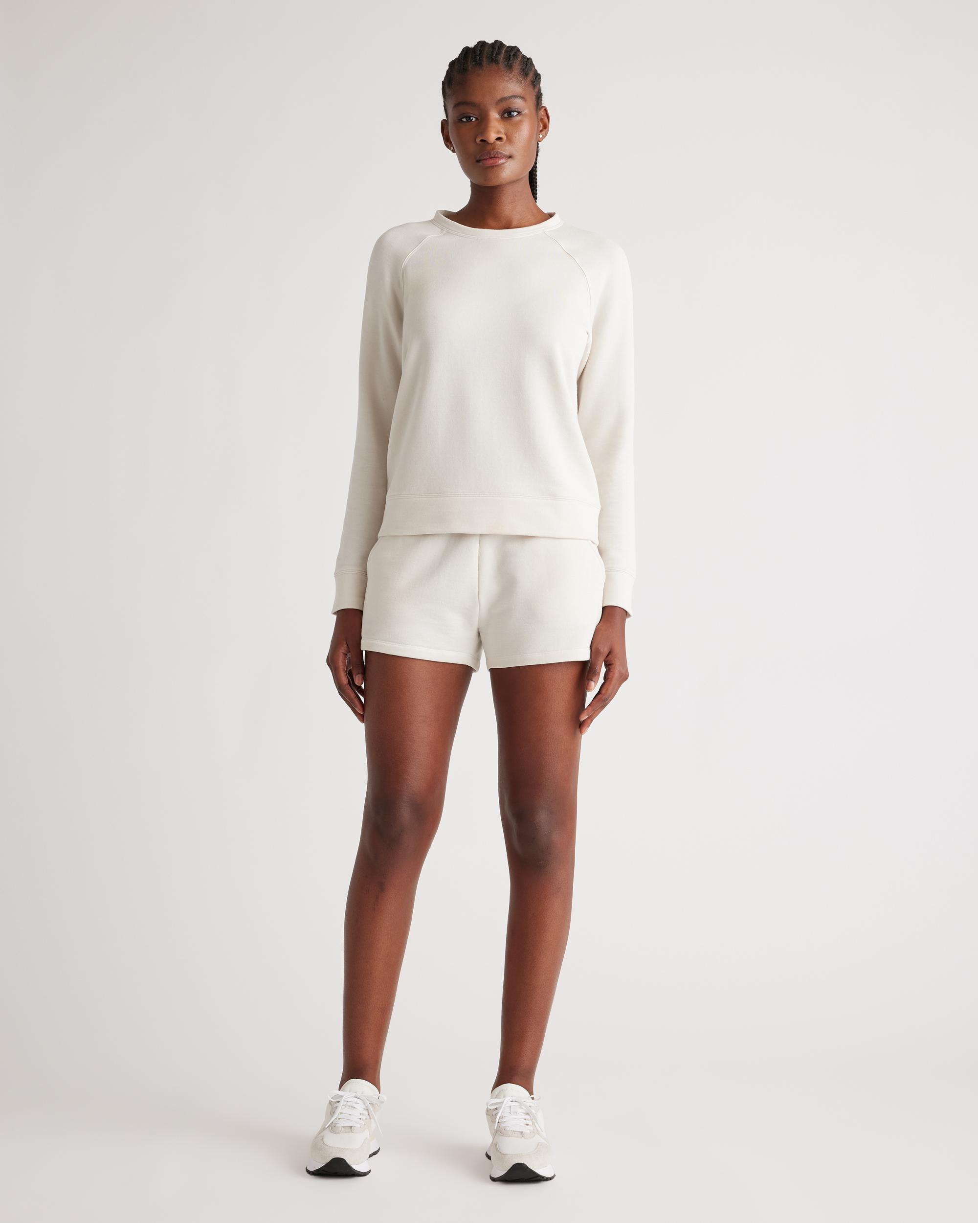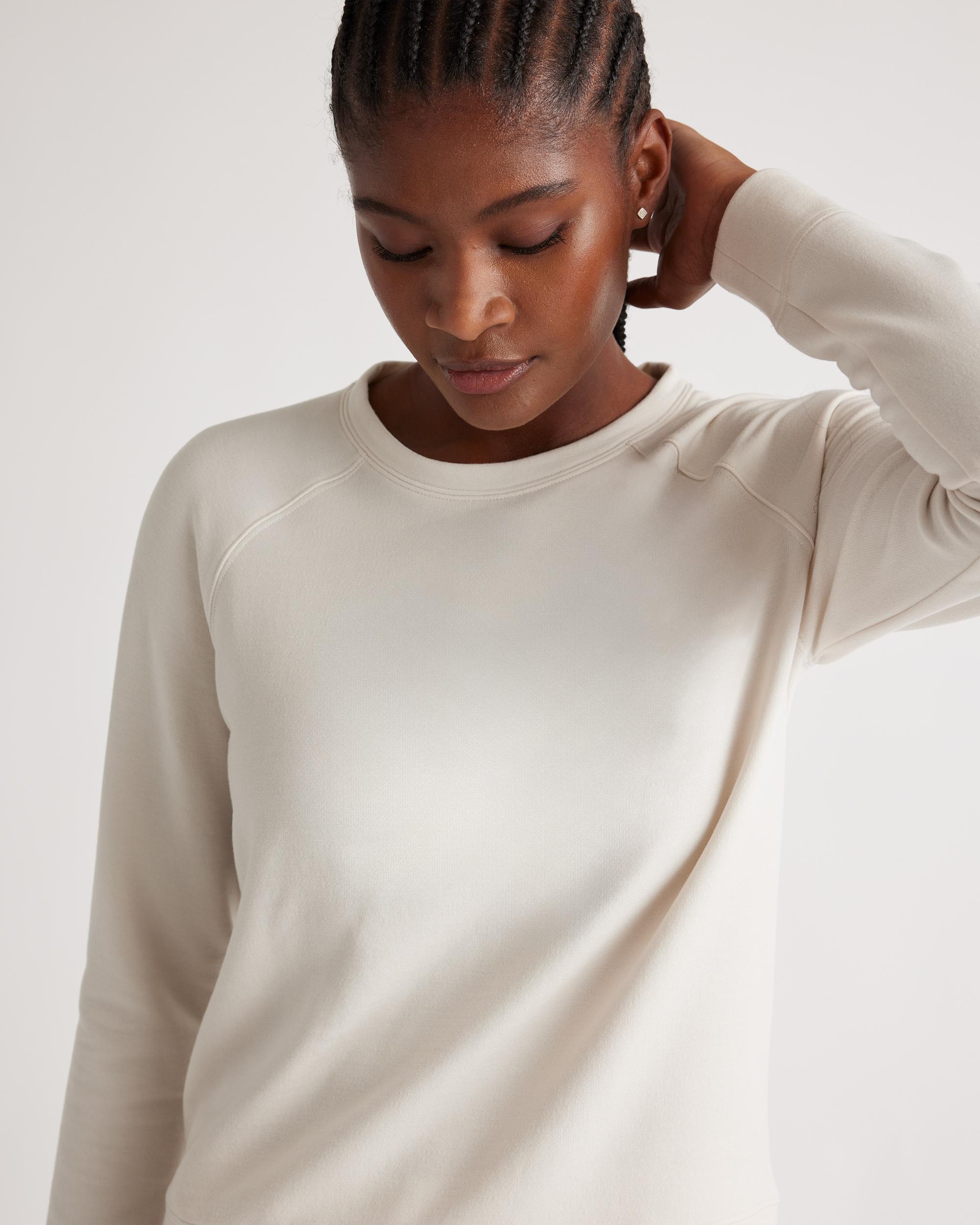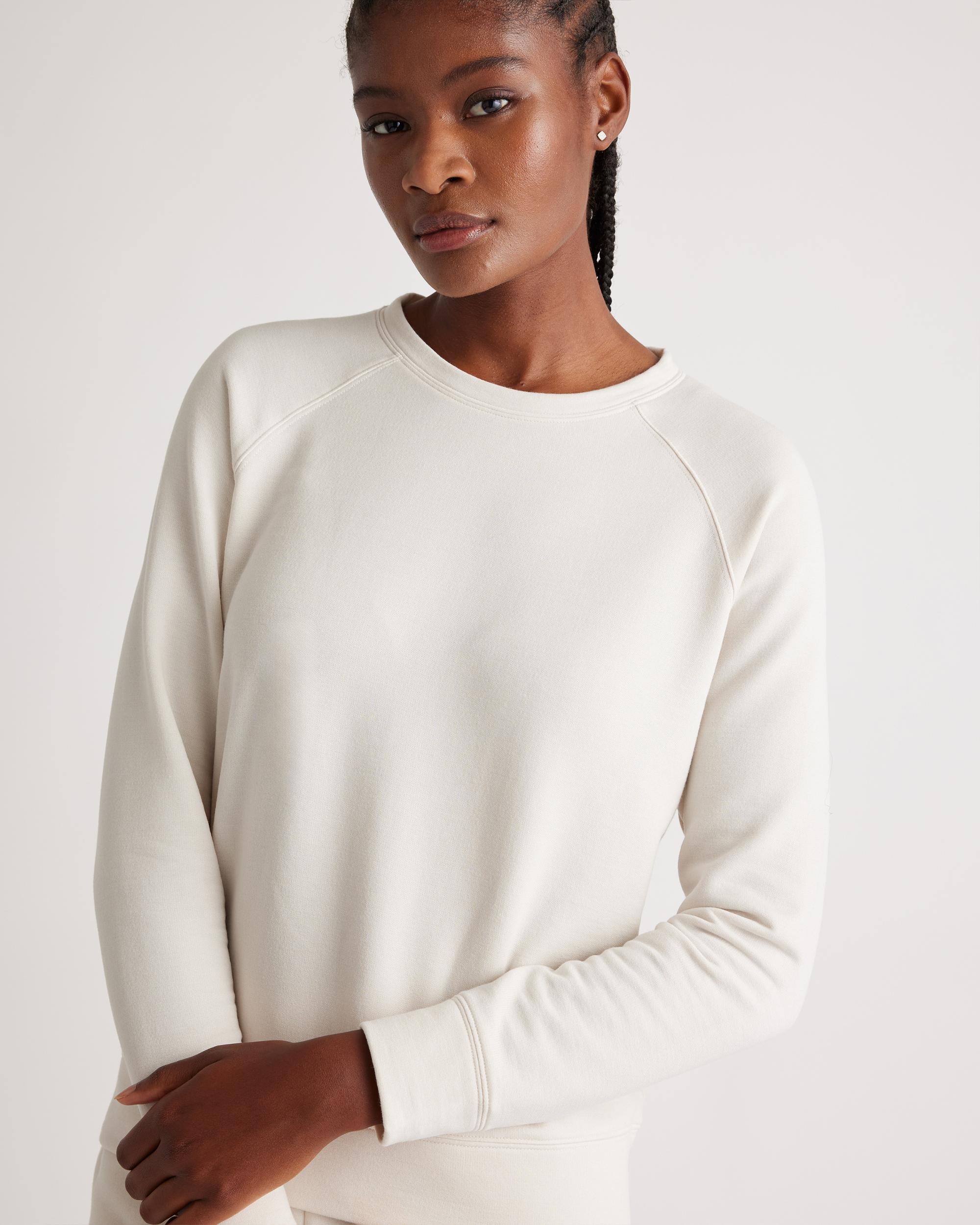 This fleece crew is all the soft you'd expect and more, with just the right amount of stretch. Made for everyday wear to keep you toasty, in a relaxed fit. Plus, we included our GRS-certified poly yarn in this blend, which diverts plastics from ocean and landfill. So you can look good and feel good in this piece. | Quince | Women's SuperSoft Fleece Crew Neck Alpaca Sweater in Off-White, Size Large, Lenzing Modal