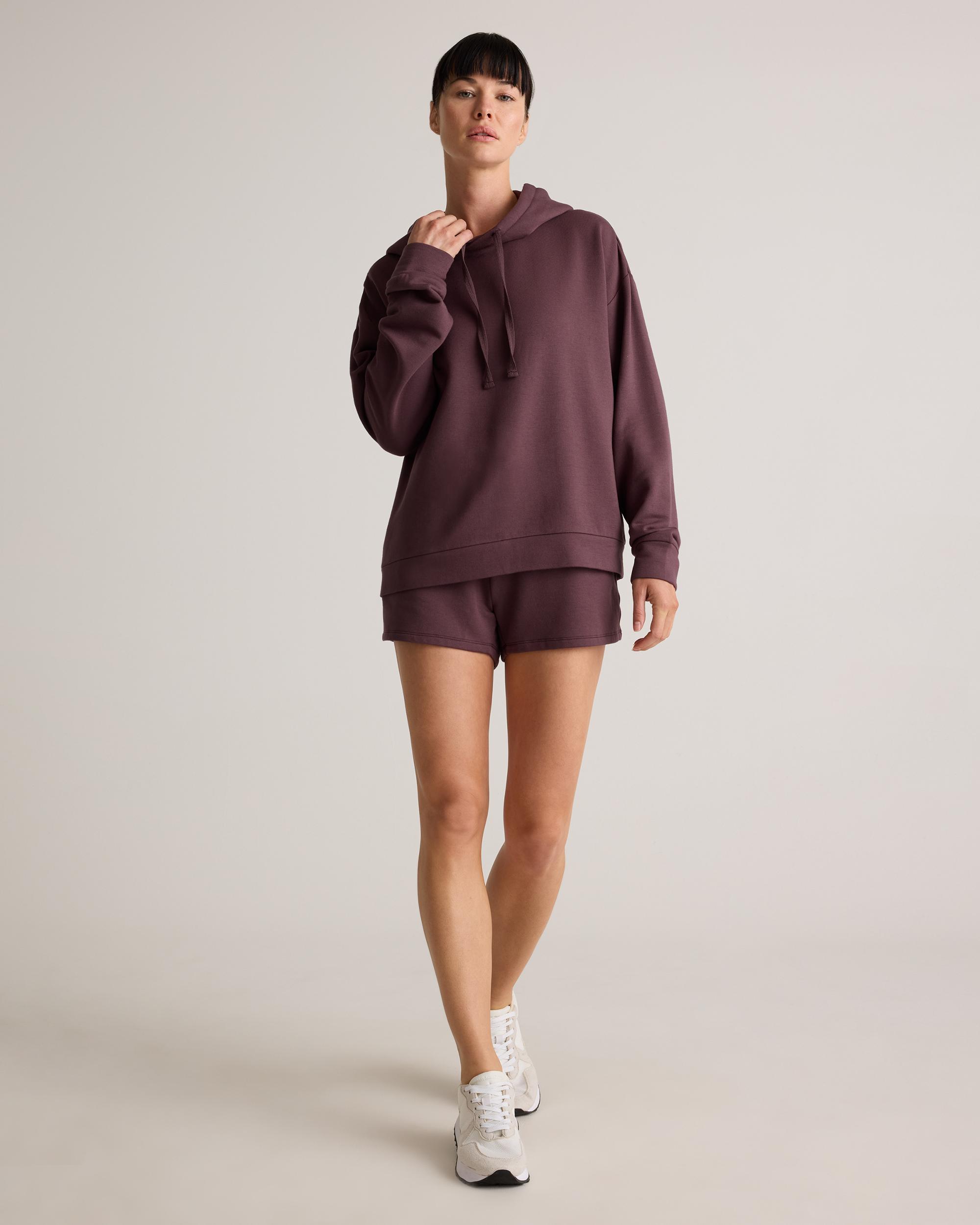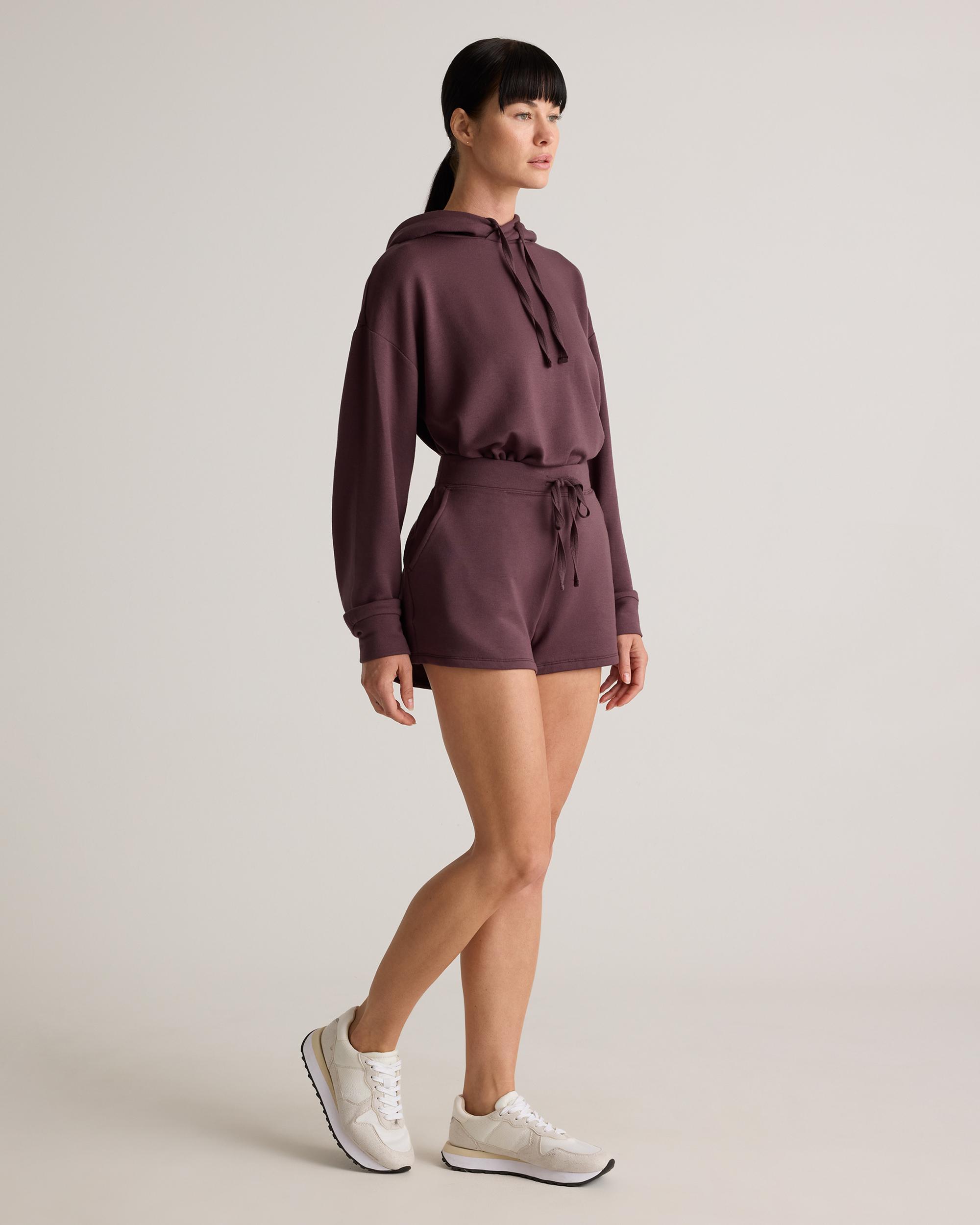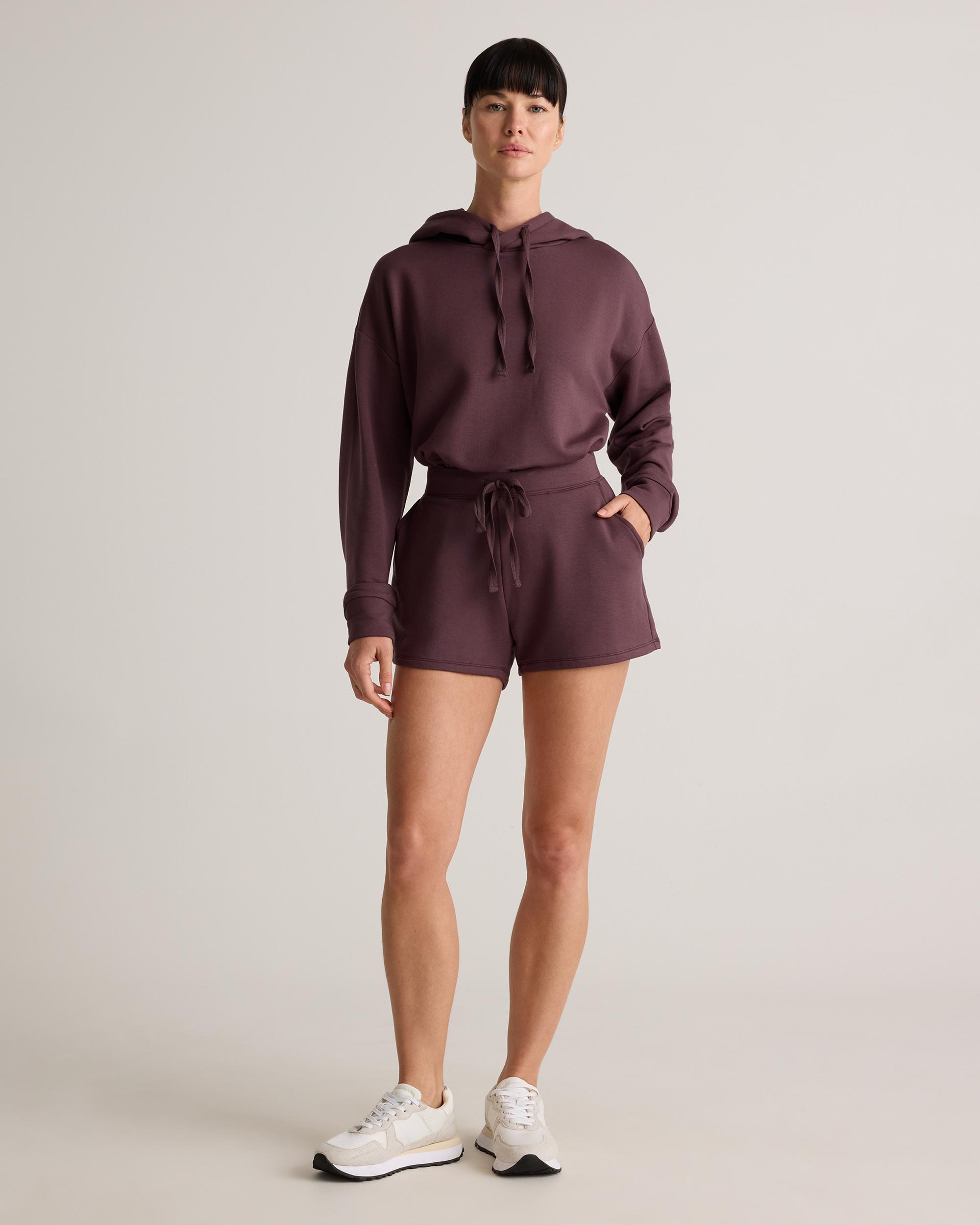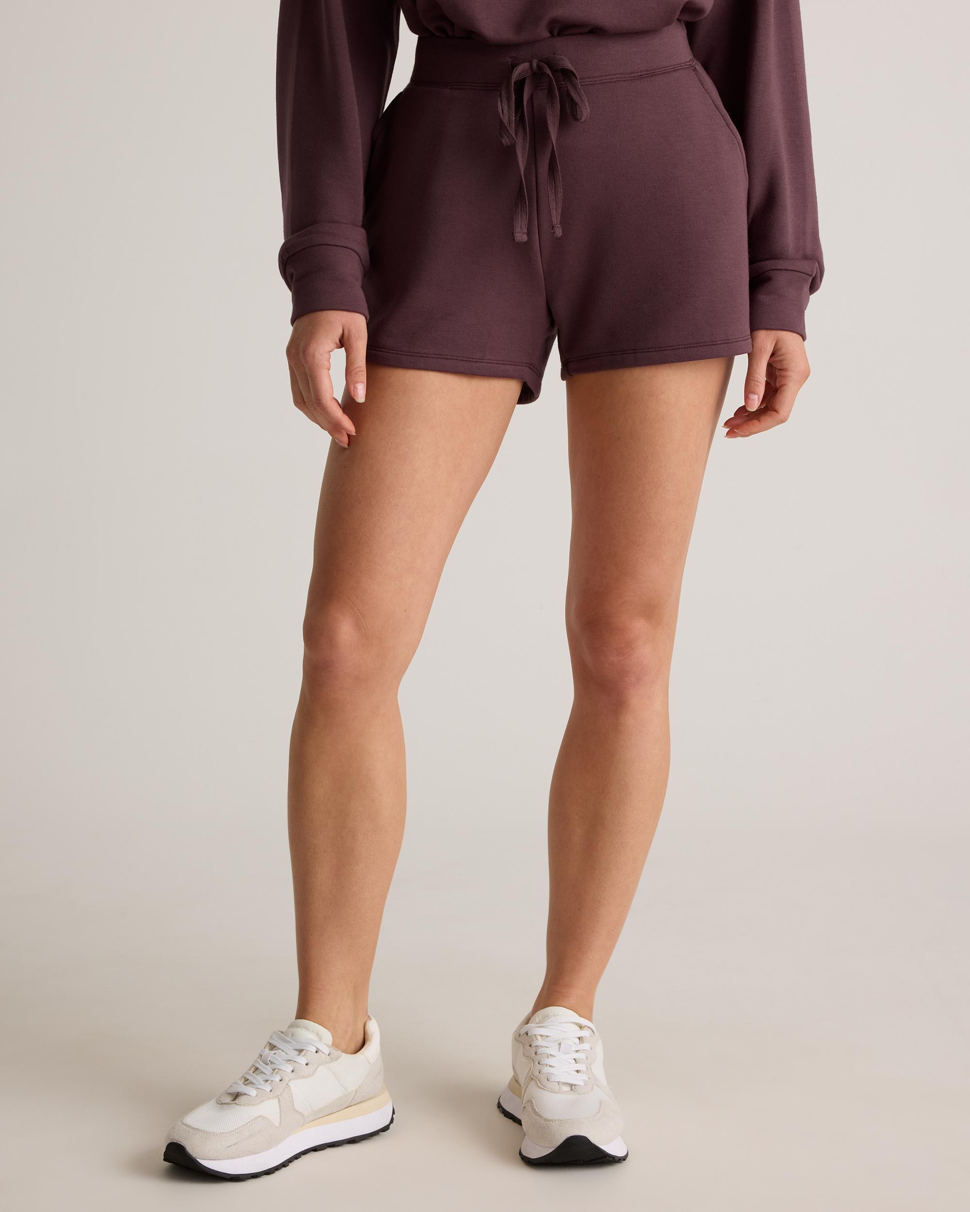 Say hello to the softest fleece shorts ever. Made from our proprietary SuperSoft fabric, these sweats are extra comfy and perfect for working from home, cozying up, or stepping out with a casual vibe. Front pockets, drawstring waistband, and stretch fabric for just the right fit and feel. Plus, we included our GRS-certified poly yarn in this blend, which diverts plastics from ocean and landfill. So you can look good and feel good in this piece. | Quince | Women's SuperSoft Fleece Shorts in Dried Fig, Size XL, Lenzing Modal
