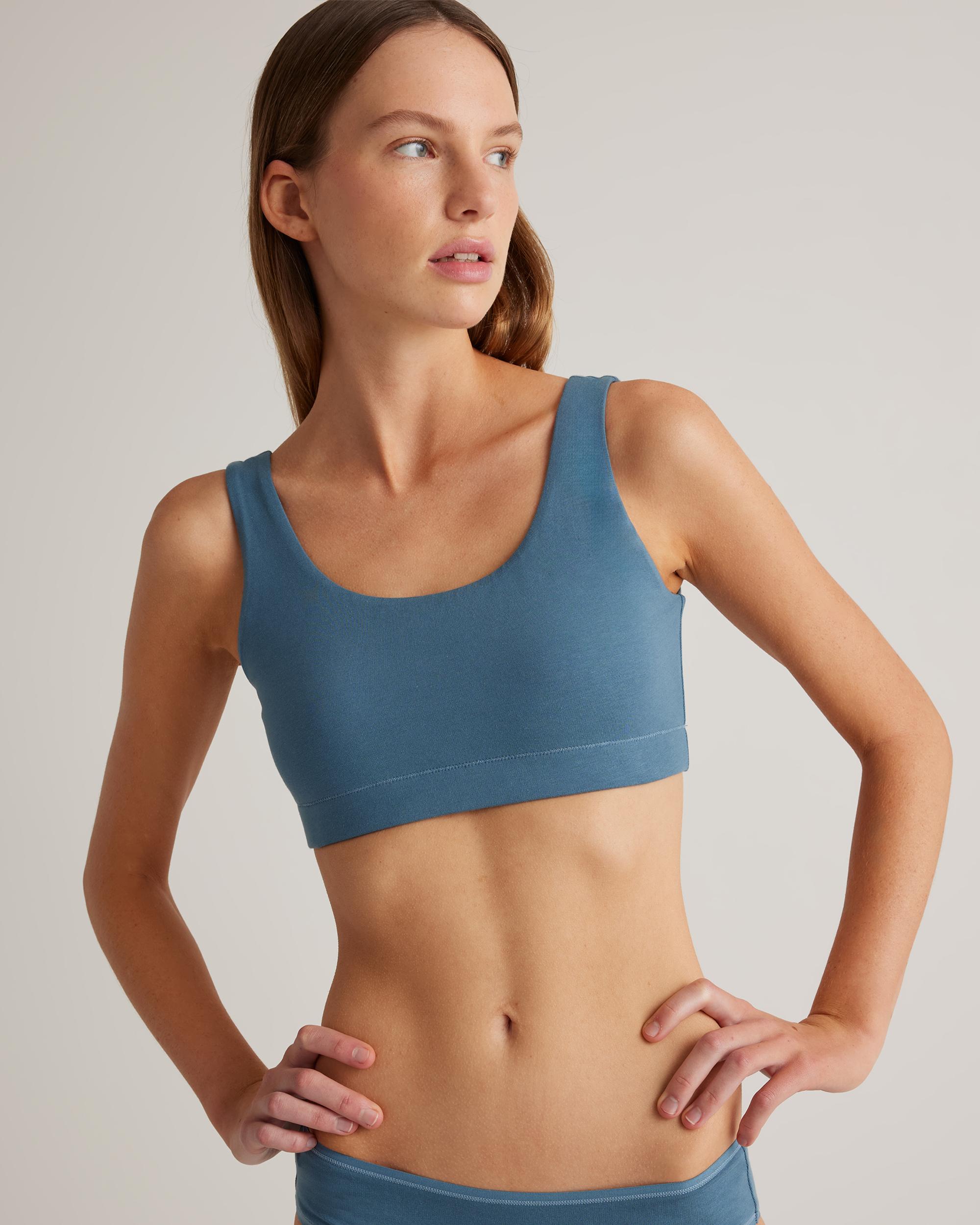 Slip into your new favorite bralette. Made with OCS-certified organic cotton, our tank bralette is soft and comfortable with just the right amount of coverage, and the smooth elastic band keeps everything in place with absolutely no irritation. Make it match with our Organic Cotton Thong, High-Cut Thong, Bikini, Hipster, or Boyshort. | Quince | Women's Tank Top Bralette in Ocean, Size Medium, Organic Cotton