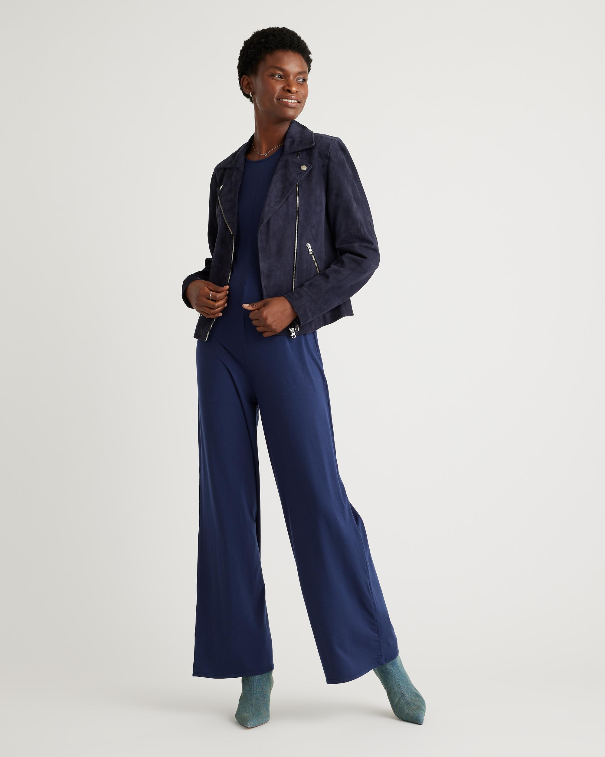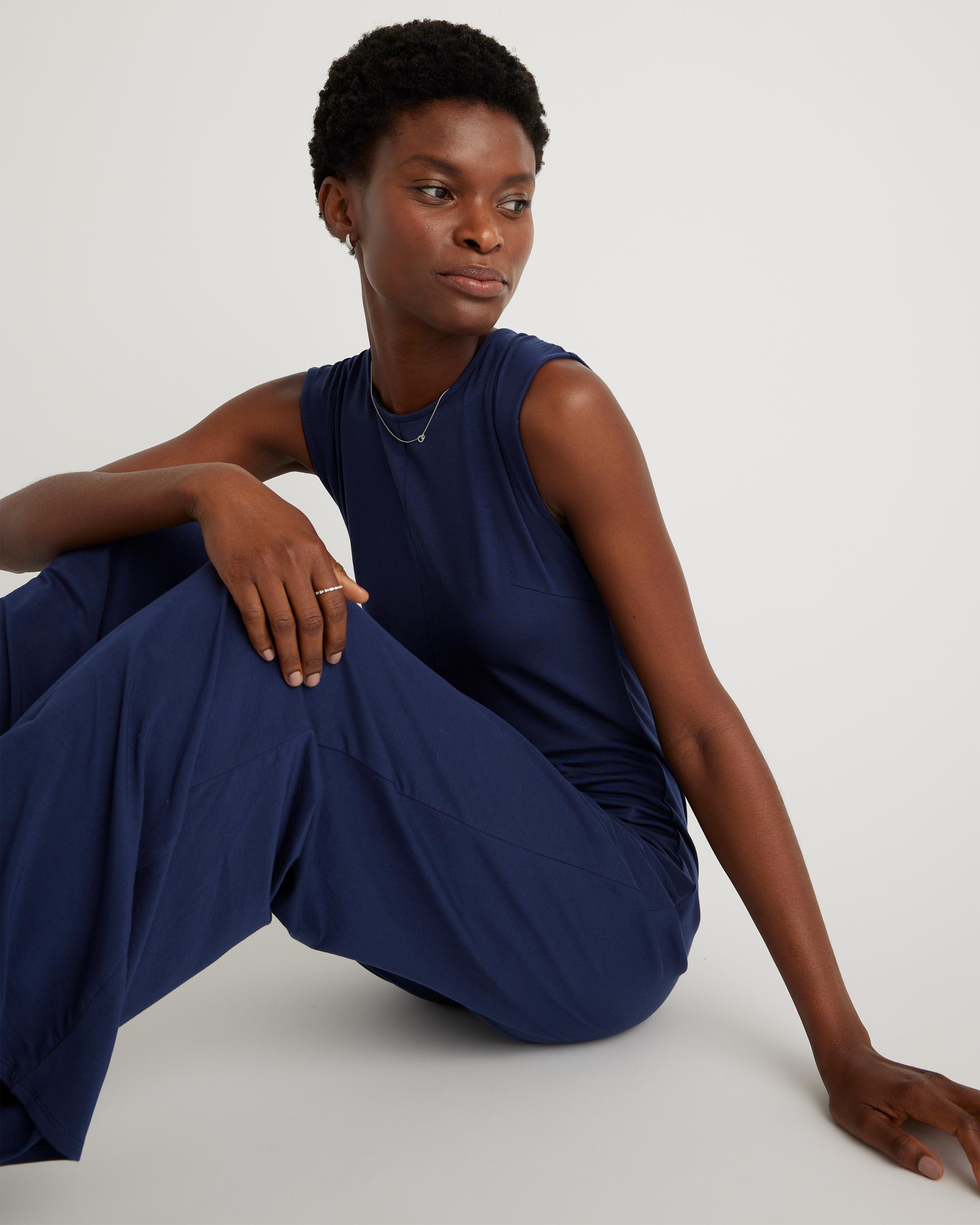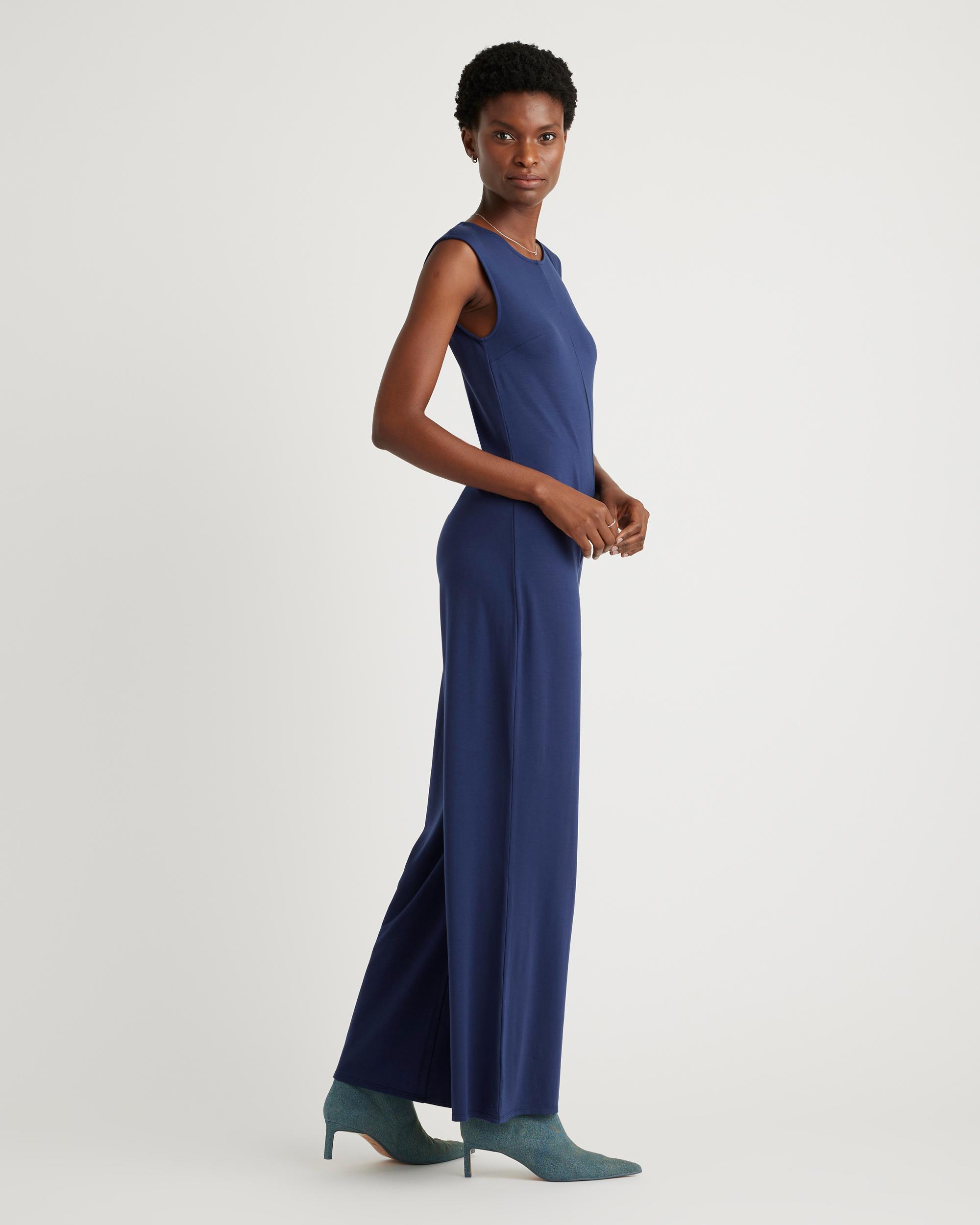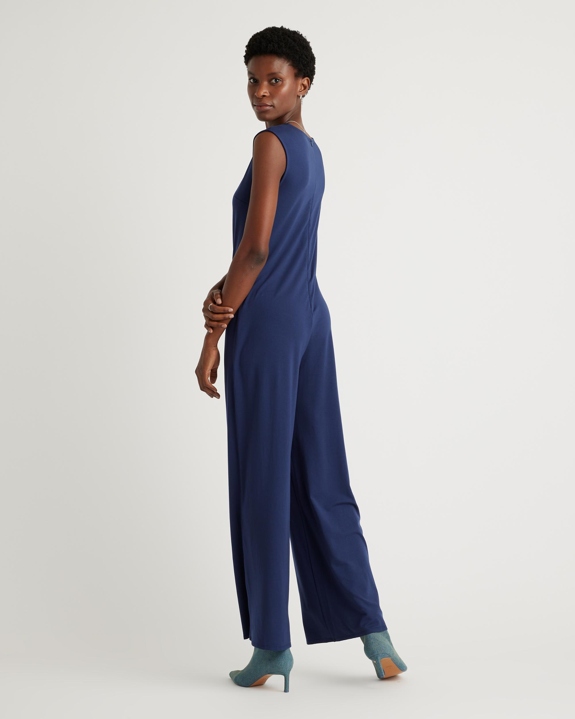 Effortless, comfy, and chic all coexist on this one. Our Tencel Jersey Tank Jumpsuit features a sleek round neckline and a flowy wide leg that looks great with pumps or sneakers. Pull this jumpsuit out when you're dressing up for an occasion or keep it Sunday-lowkey with an oversized cardi layered on top. | Quince | Women's Tencel Jersey Tank Top Jumpsuit in Navy, Size Small