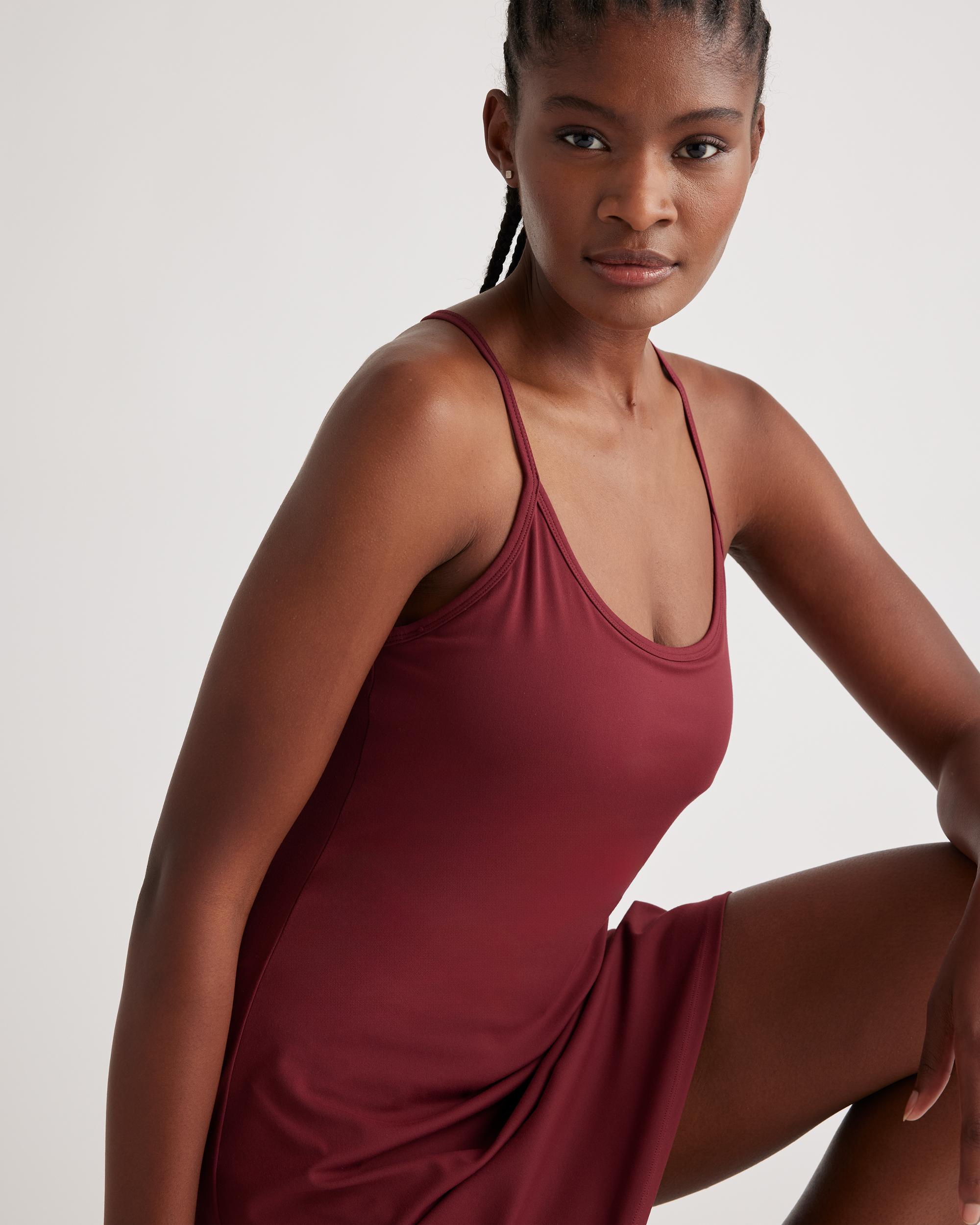 Proof that style and function can coexist. With built-in shorts and pockets, this active dress is perfect for a game of pickleball, a weekend tennis match, or just running errands. Featuring our signature, buttery-soft Ultra-Form fabric, it will have you outfitted in sweat-wicking, quick-dry comfort. | Quince | Women's Ultra-Form Active Dress in Merlot, Size Large, Nylon/Spandex