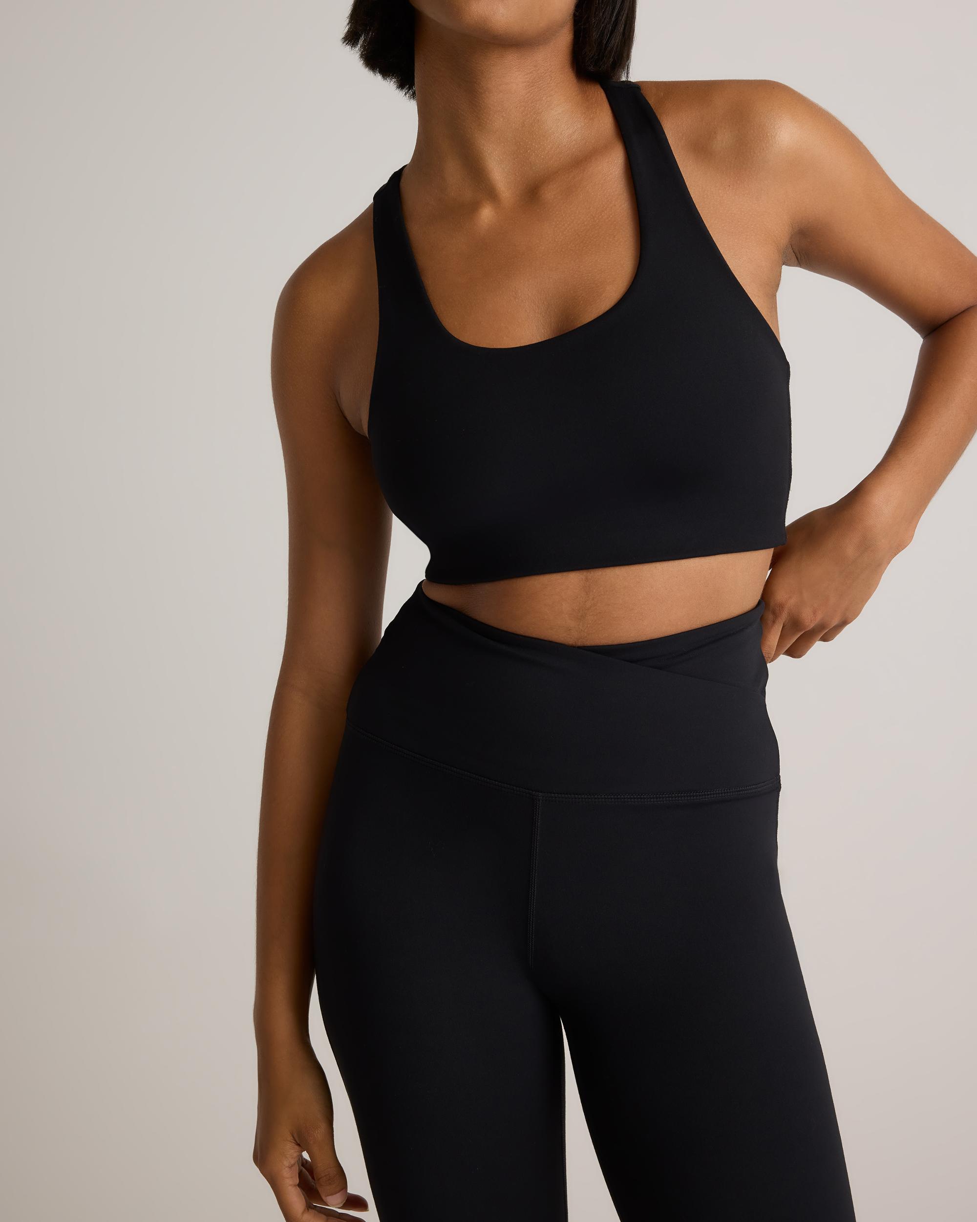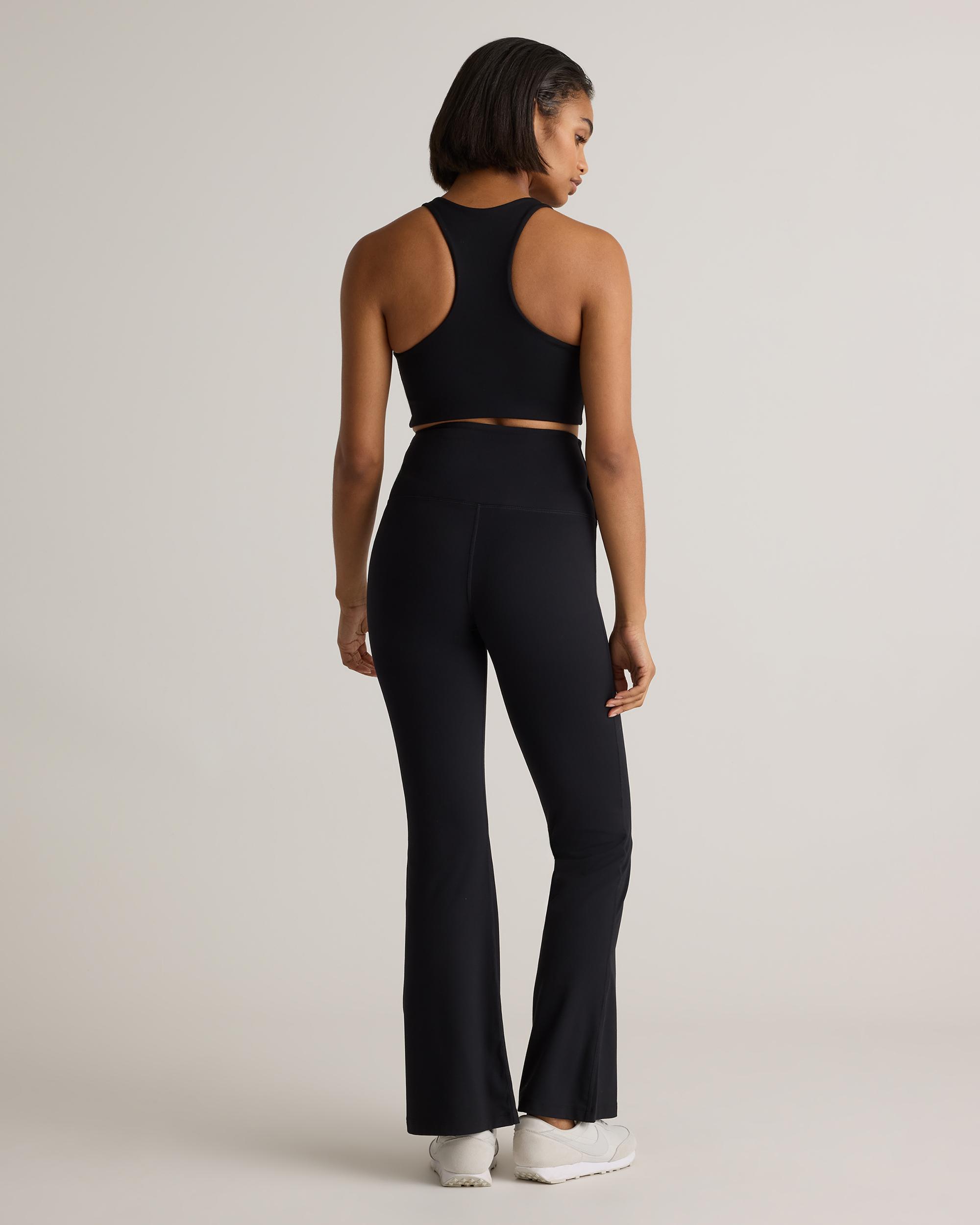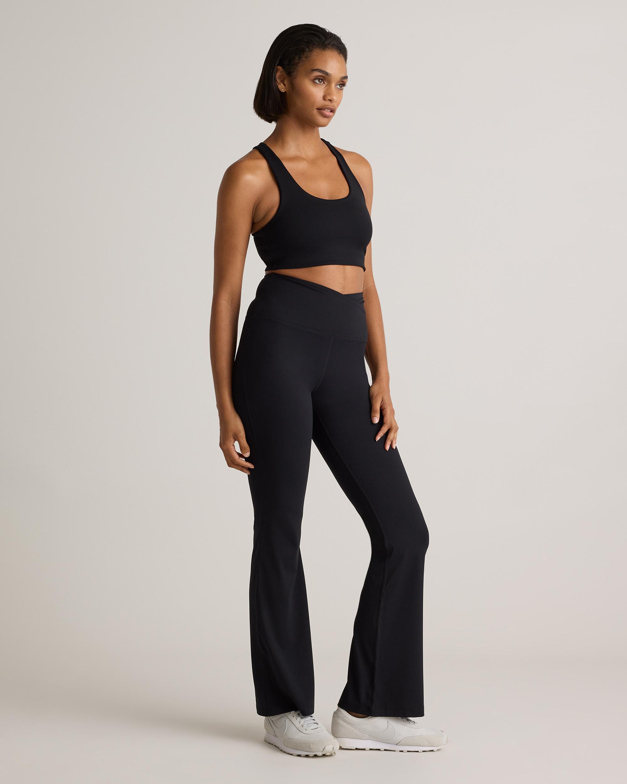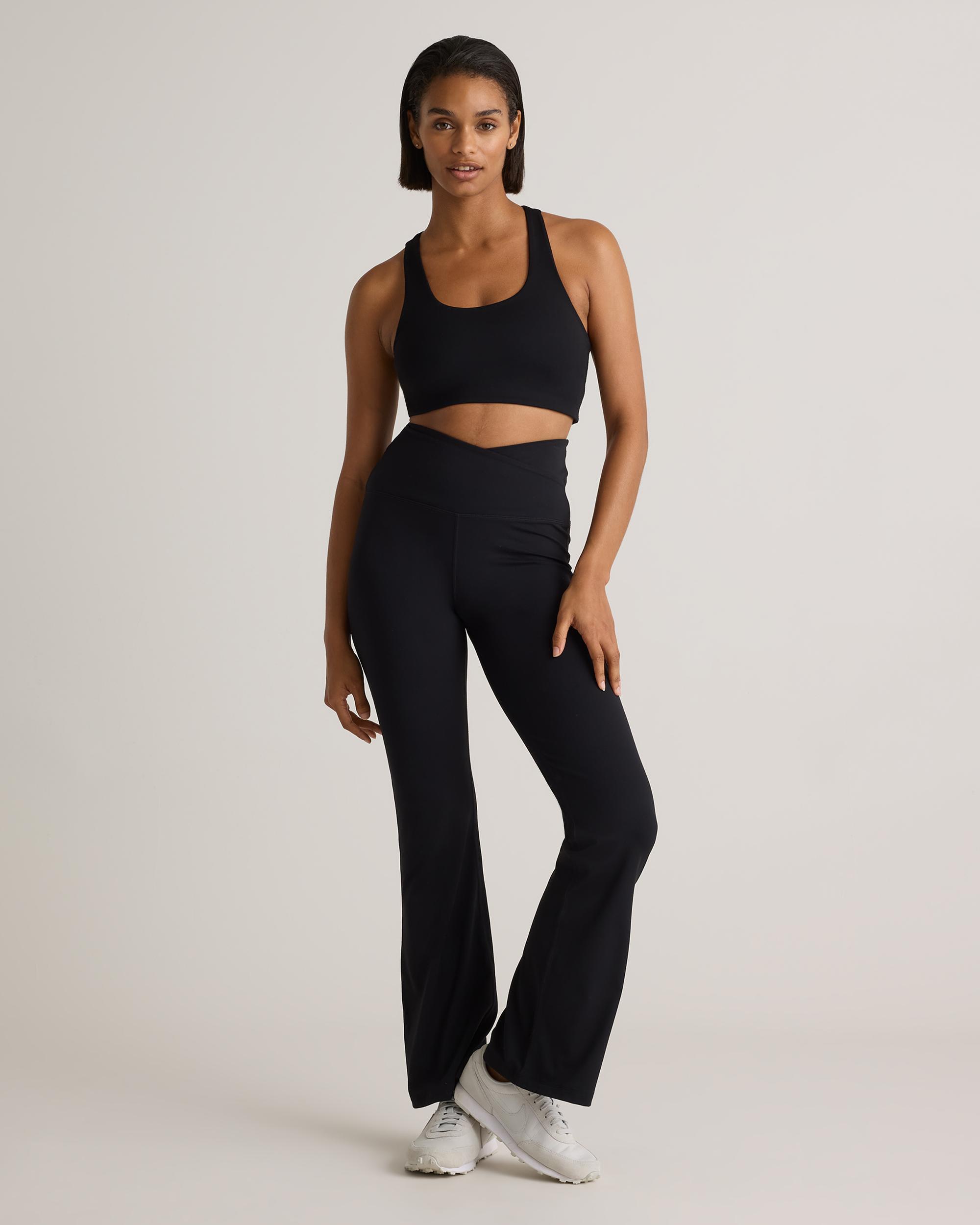 Update your go-to yoga look with our Ultra-Form High-Rise Crossover Flared Pant. Our Ultra-Form fabric is buttery soft with 4-way stretch and features quick-dry, moisture-wicking, and anti-microbial technology. This flexible pant hugs your body in all the right places, while the flared bottom gives a subtle retro nod to your look. Whether you're heading to a barre class, brunching with friends, or running errands, our Ultra-Form High-Rise Crossover Flared Pant is sure to keep you looking and feeling your best. | Quince | Women's Ultra-Form High-Rise Crossover Flared Pants in Black, Size Small, Nylon/Spandex