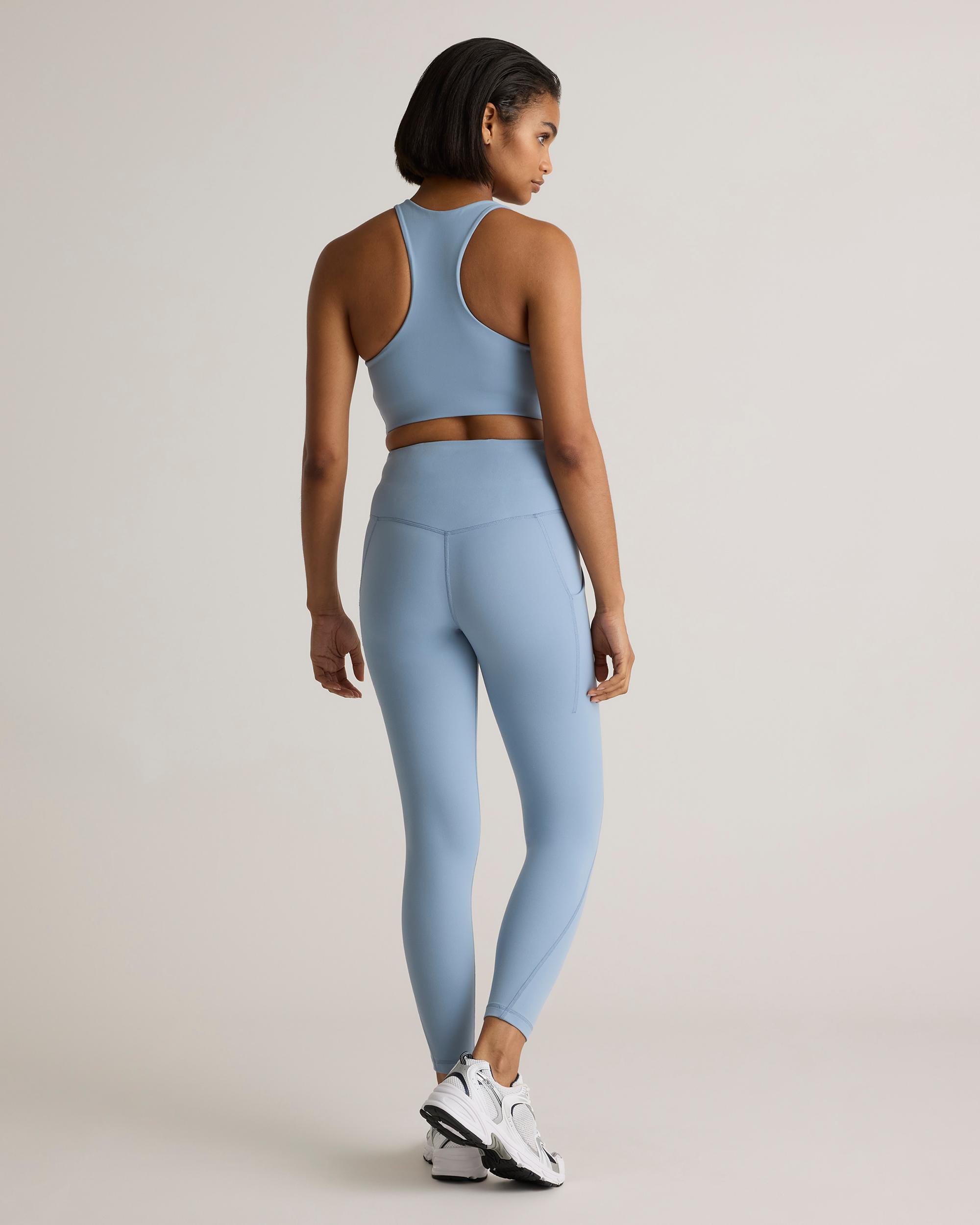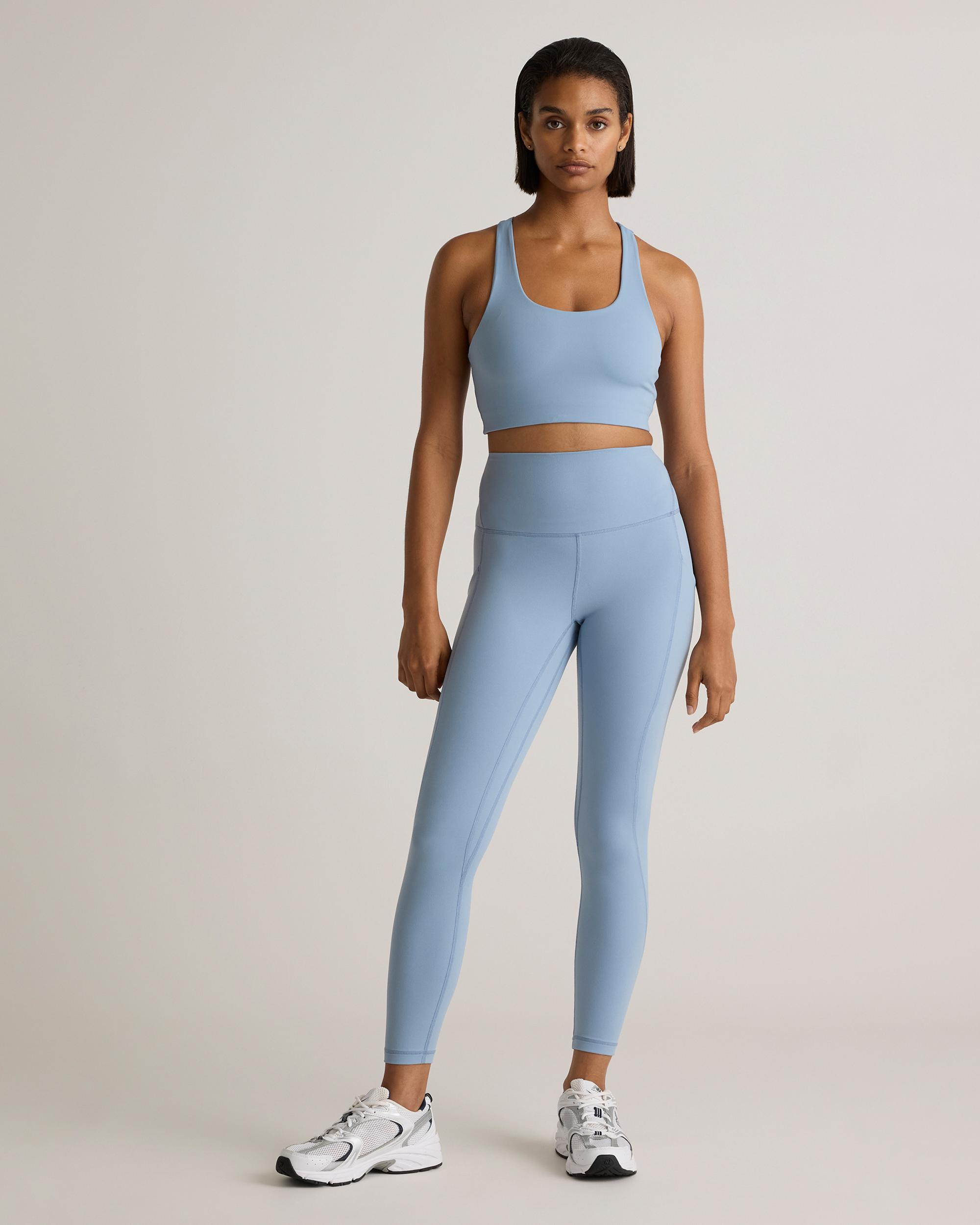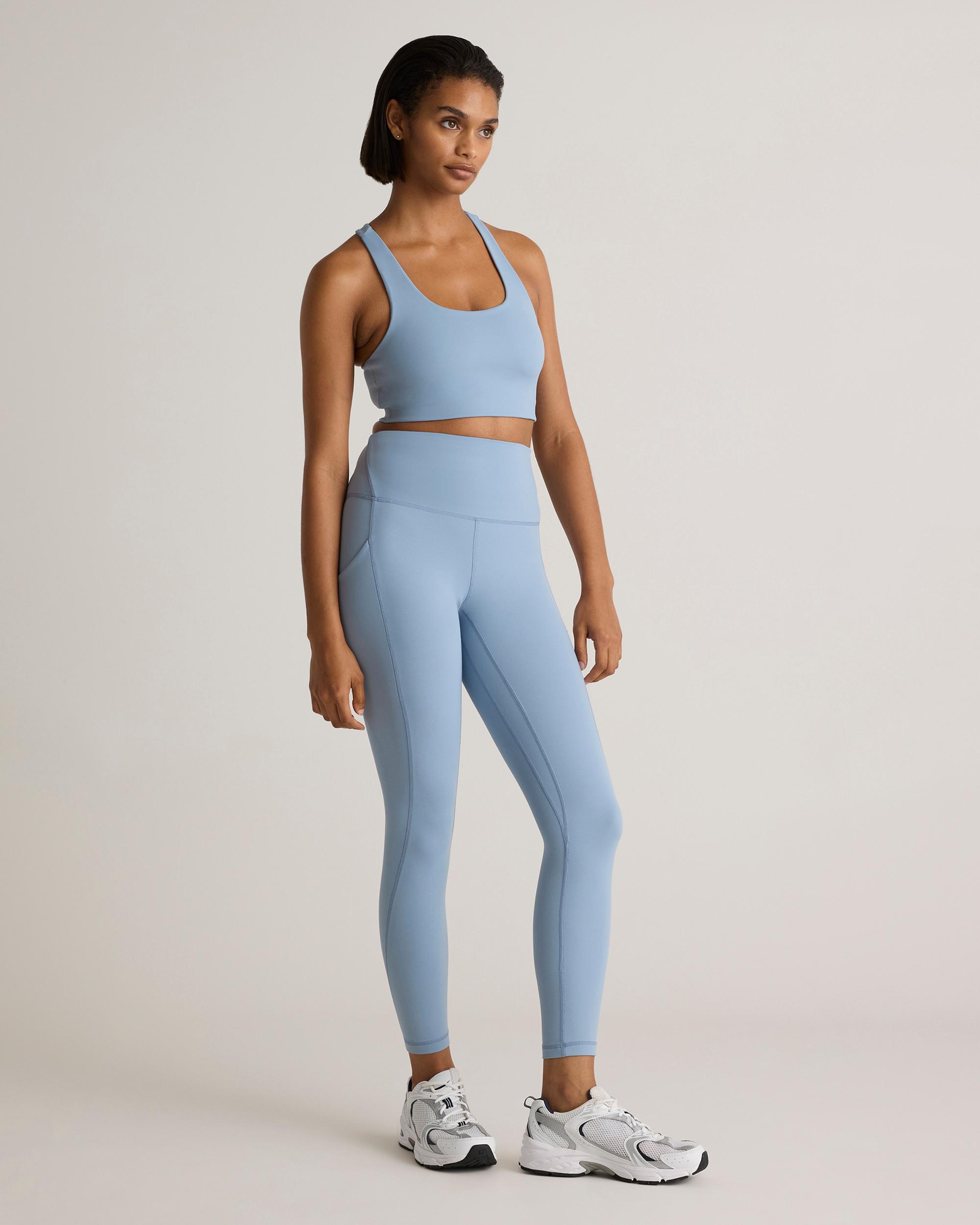 Perfect for yoga, low-impact exercises, and all-day wear, these are the luxe leggings you need in your life. Our Ultra-Form fabric is buttery soft with 4-way stretch and features quick-dry, moisture-wicking, and anti-microbial technology. Bonus: the hidden back waistband pocket fits a card or a key, and the side pockets are perfect for storing your phone when you're on the move! | Quince | Women's Ultra-Form High-Rise Pocket Legging in Spa Blue, Size XS, Nylon/Spandex