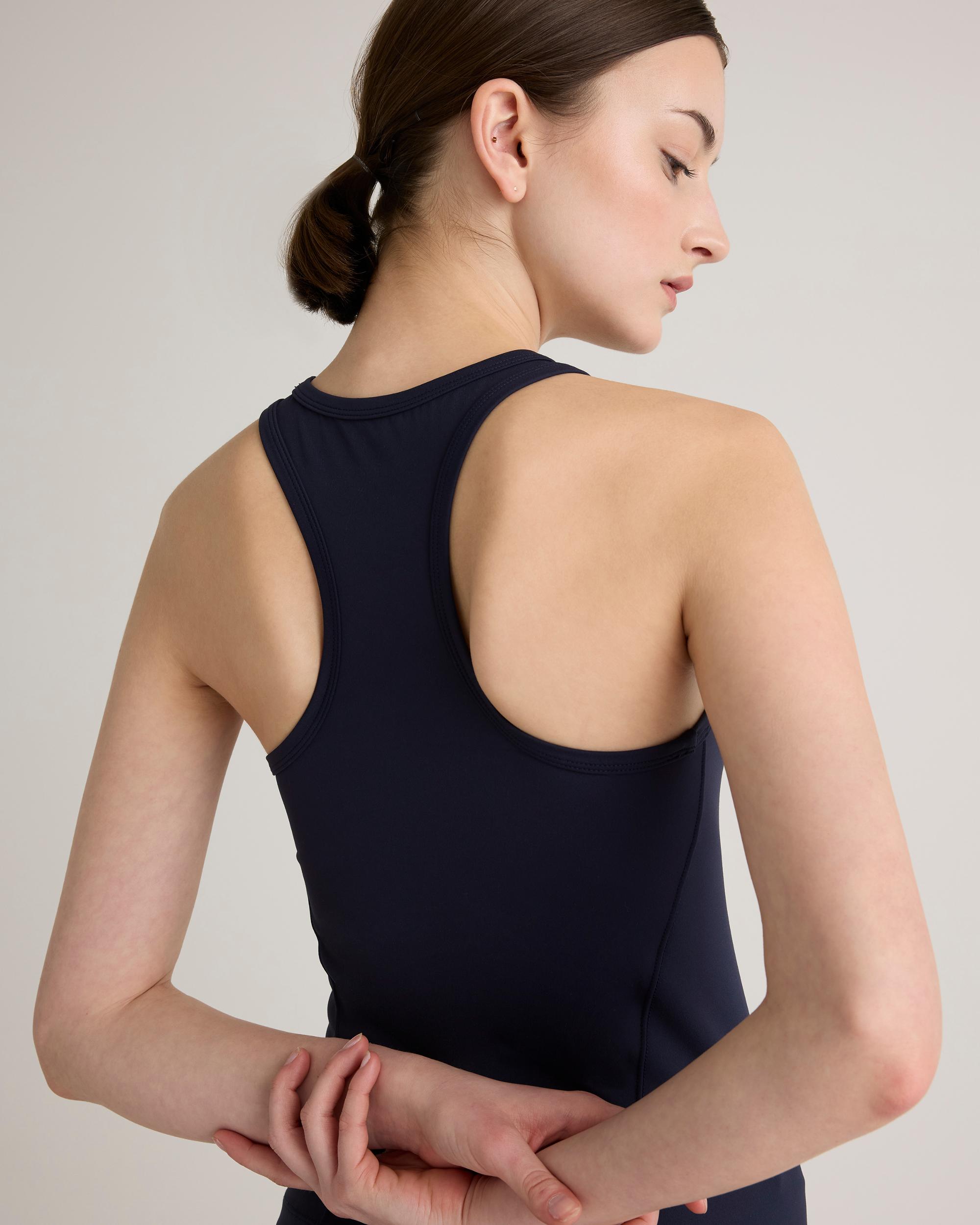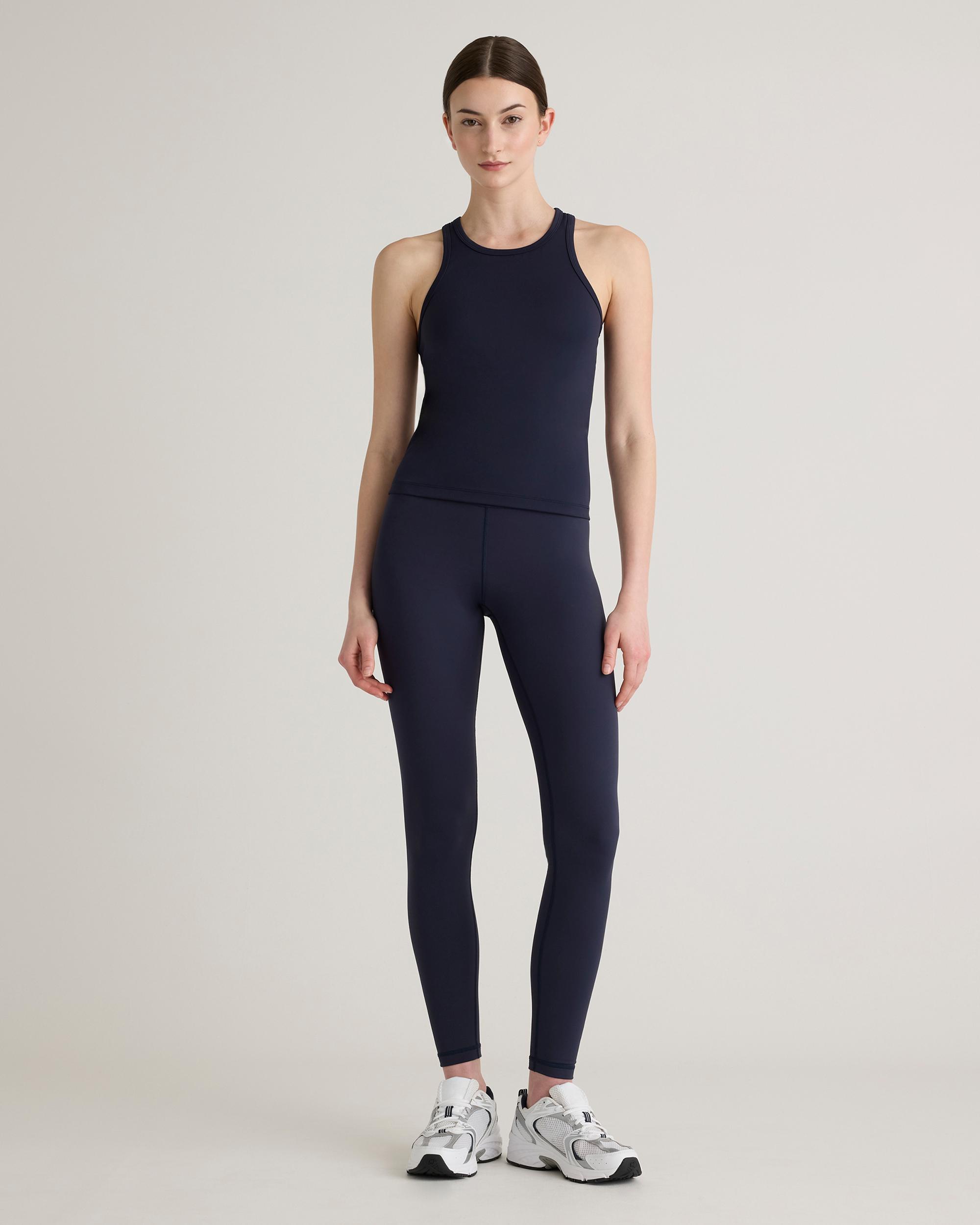 Meet your new favorite activewear. Our signature, buttery-soft Ultra-Form fabric is anti-bacterial, sweat-wicking, and quick to dry, with a supportive 4-way stretch you’ll never want to take off. Fit to pair perfectly back to our Ultra-Form High-Rise Leggings, this tank is sure to become a workout workhorse. | Quince | Women's Ultra-Form Waist-Length Racerback Tank Top in Deep Navy, Size Medium, Nylon/Spandex