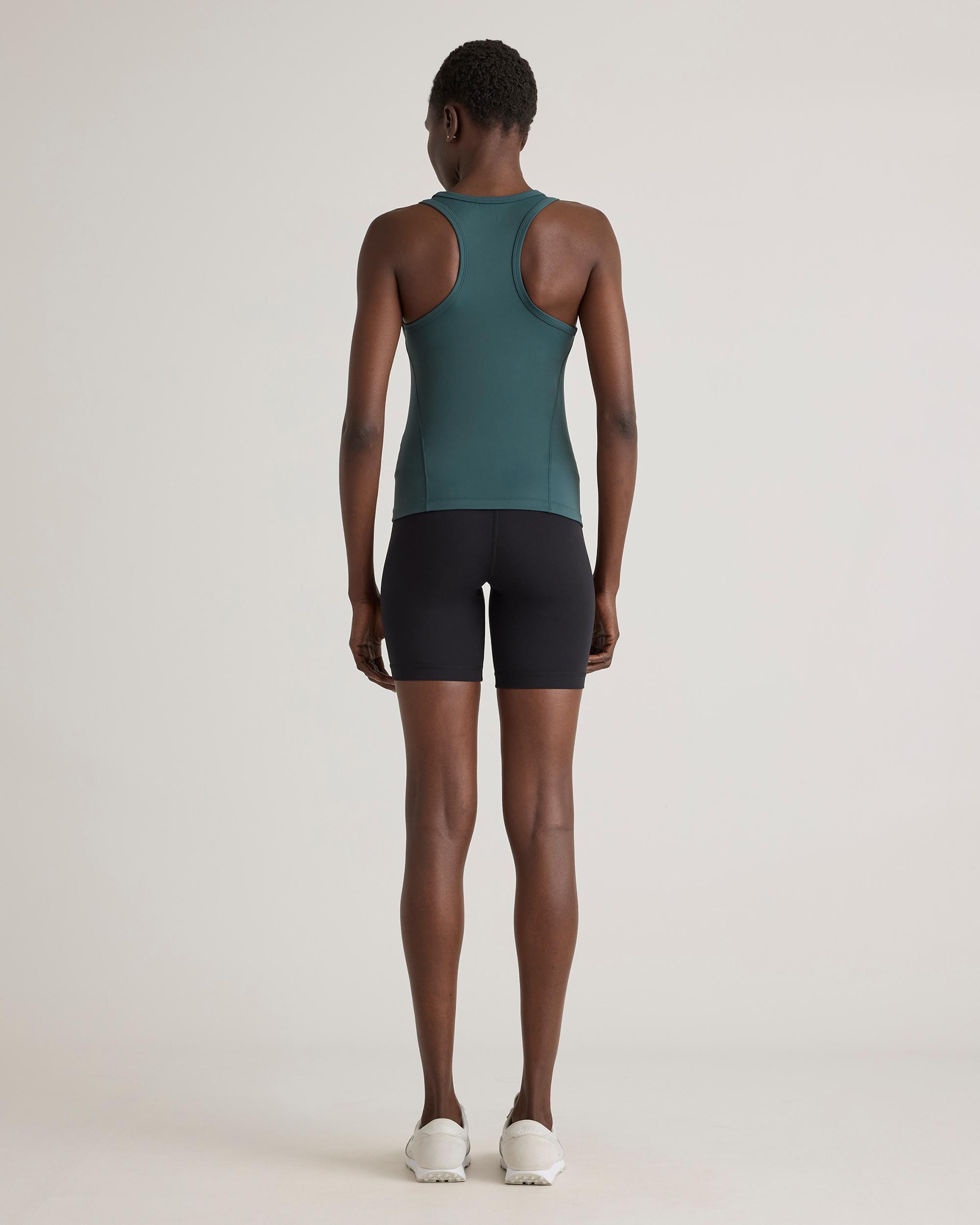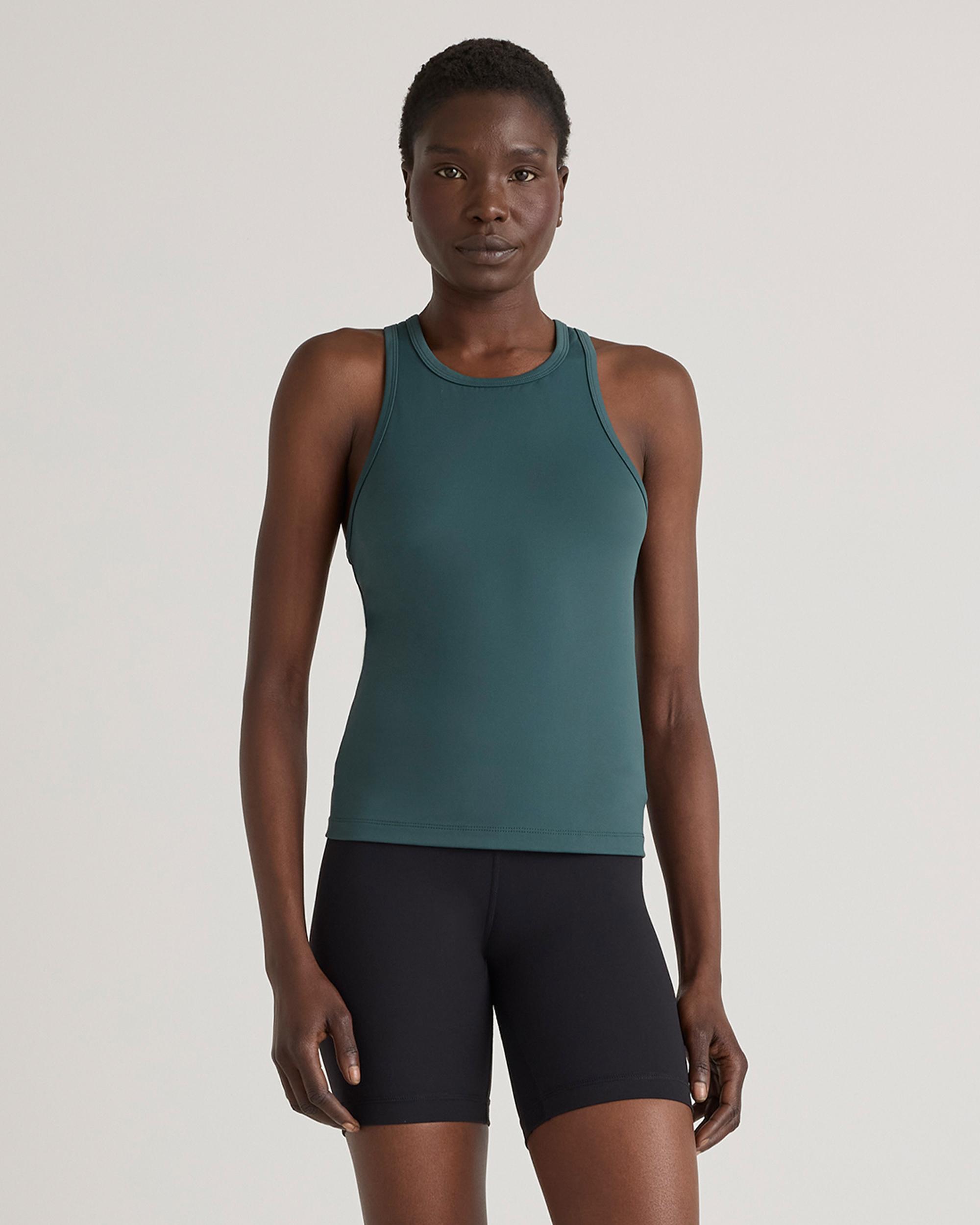Meet your new favorite activewear. Our signature, buttery-soft Ultra-Form fabric is anti-bacterial, sweat-wicking, and quick to dry, with a supportive 4-way stretch you’ll never want to take off. Fit to pair perfectly back to our Ultra-Form High-Rise Leggings, this tank is sure to become a workout workhorse. | Quince | Women's Ultra-Form Waist-Length Racerback Tank Top in Forest Green, Size XS, Nylon/Spandex
