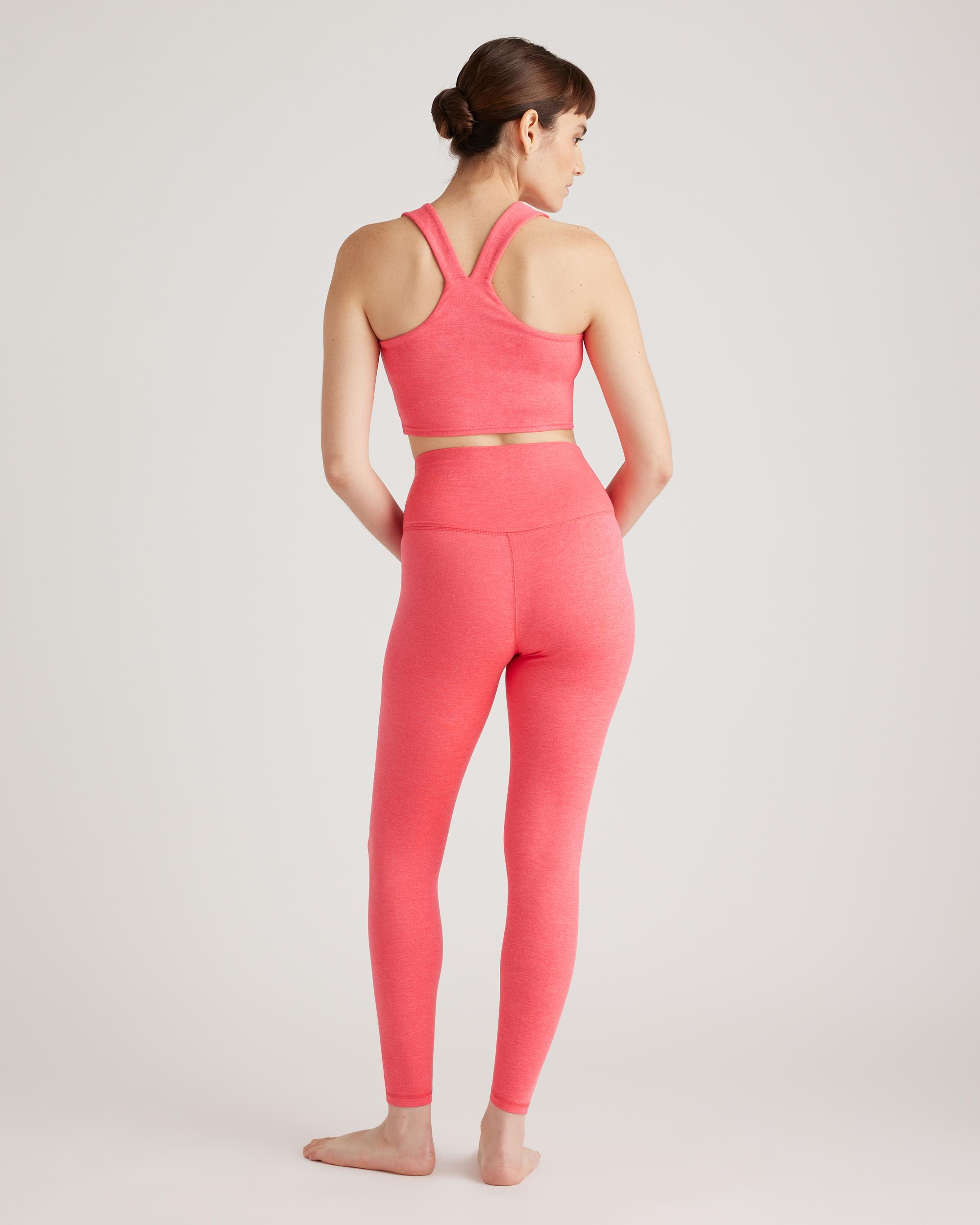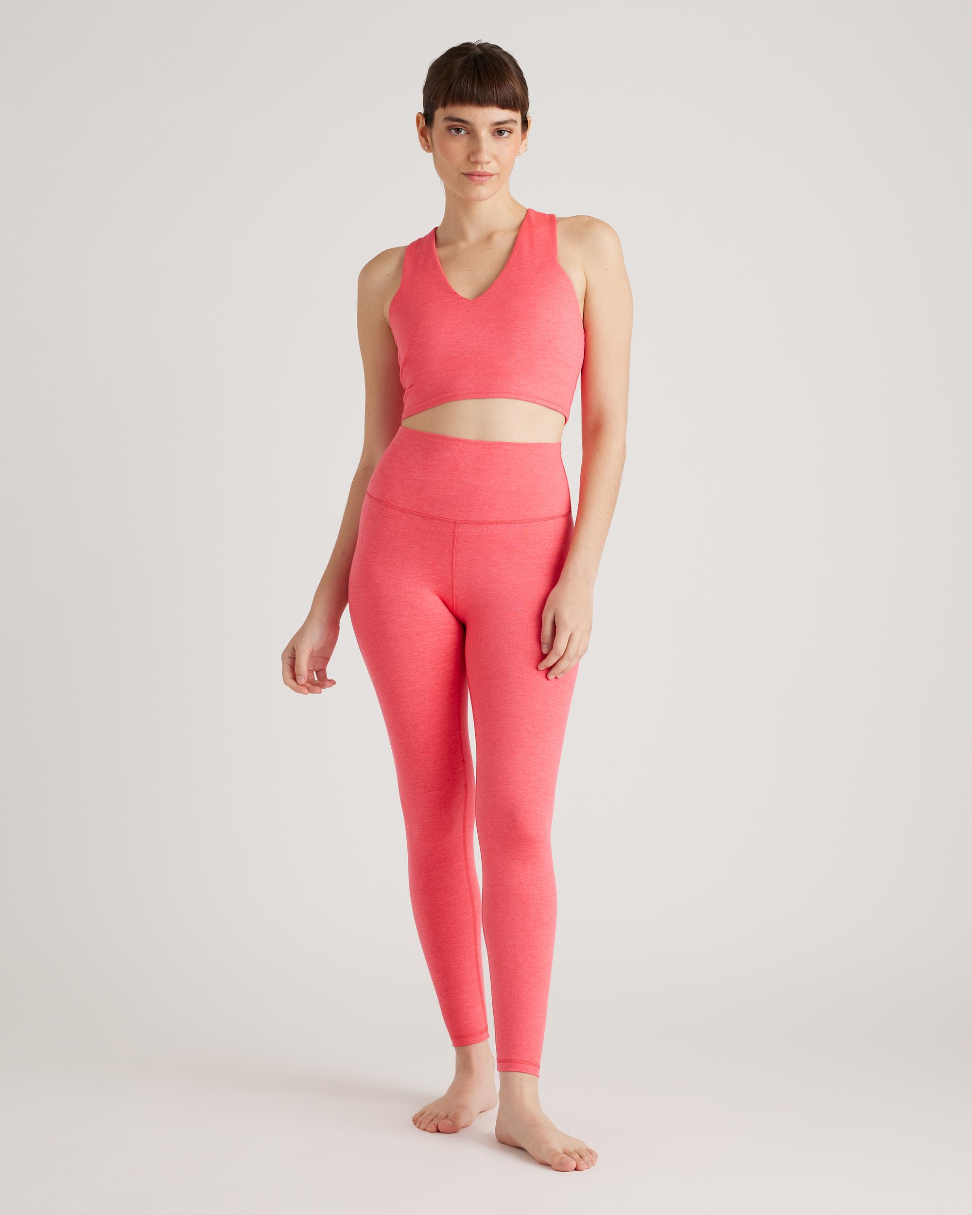 You asked, we listened. Our favorite leggings are now longer in a 28" inseam. Our Ultra-Soft High-Rise Legging is sure to become your new favorite pair of leggings. These super soft leggings are perfect for yoga classes, low impact exercises and all-day wear. Just because they are soft does not mean they compromise on performance qualities - our Ultra-Soft fabric features moisture-wicking and anti-microbial technology with a 4-way stretch. | Quince | Women's Ultra-Soft High-Rise Legging in Heather Coral, Size XS, Recycled Polyester