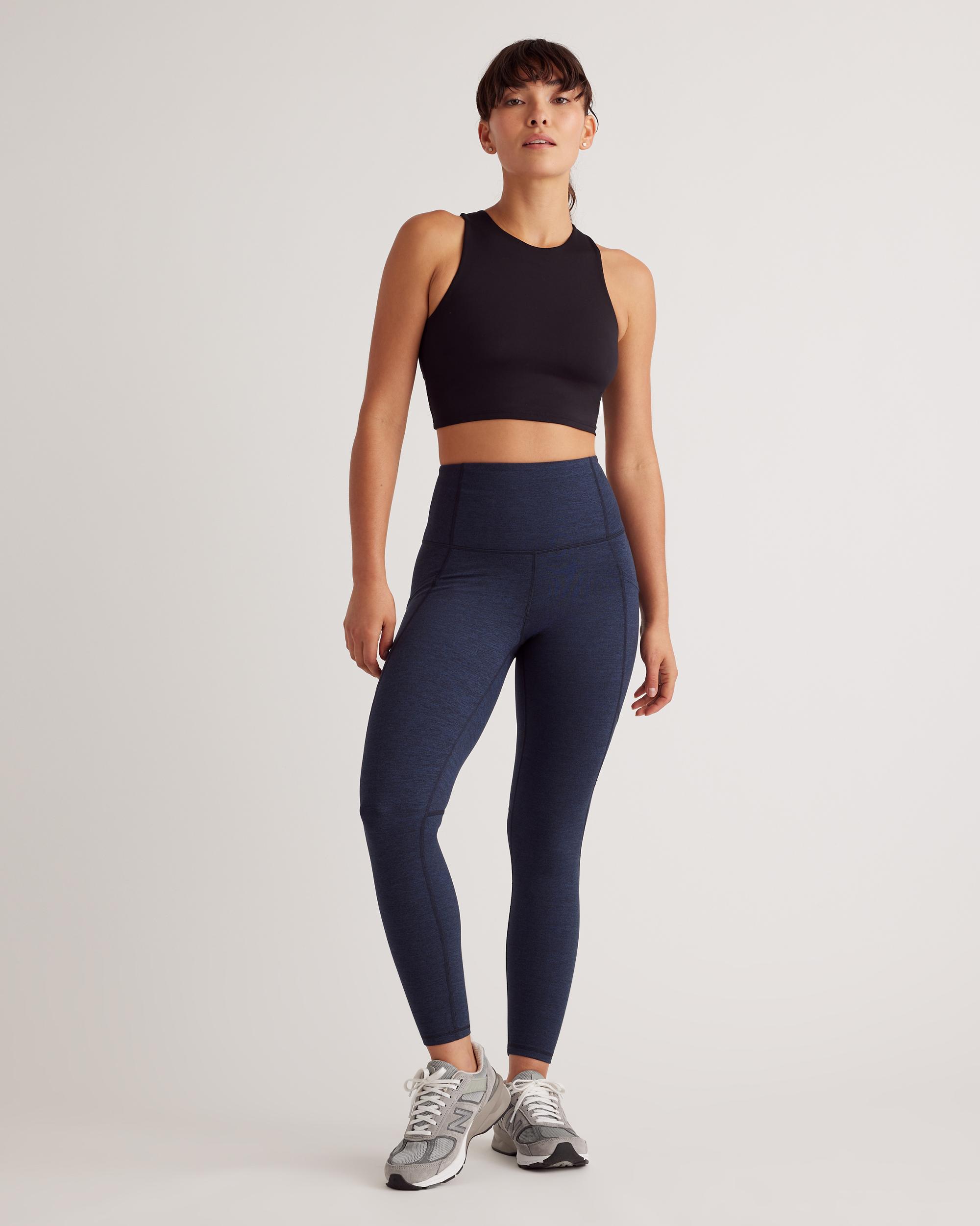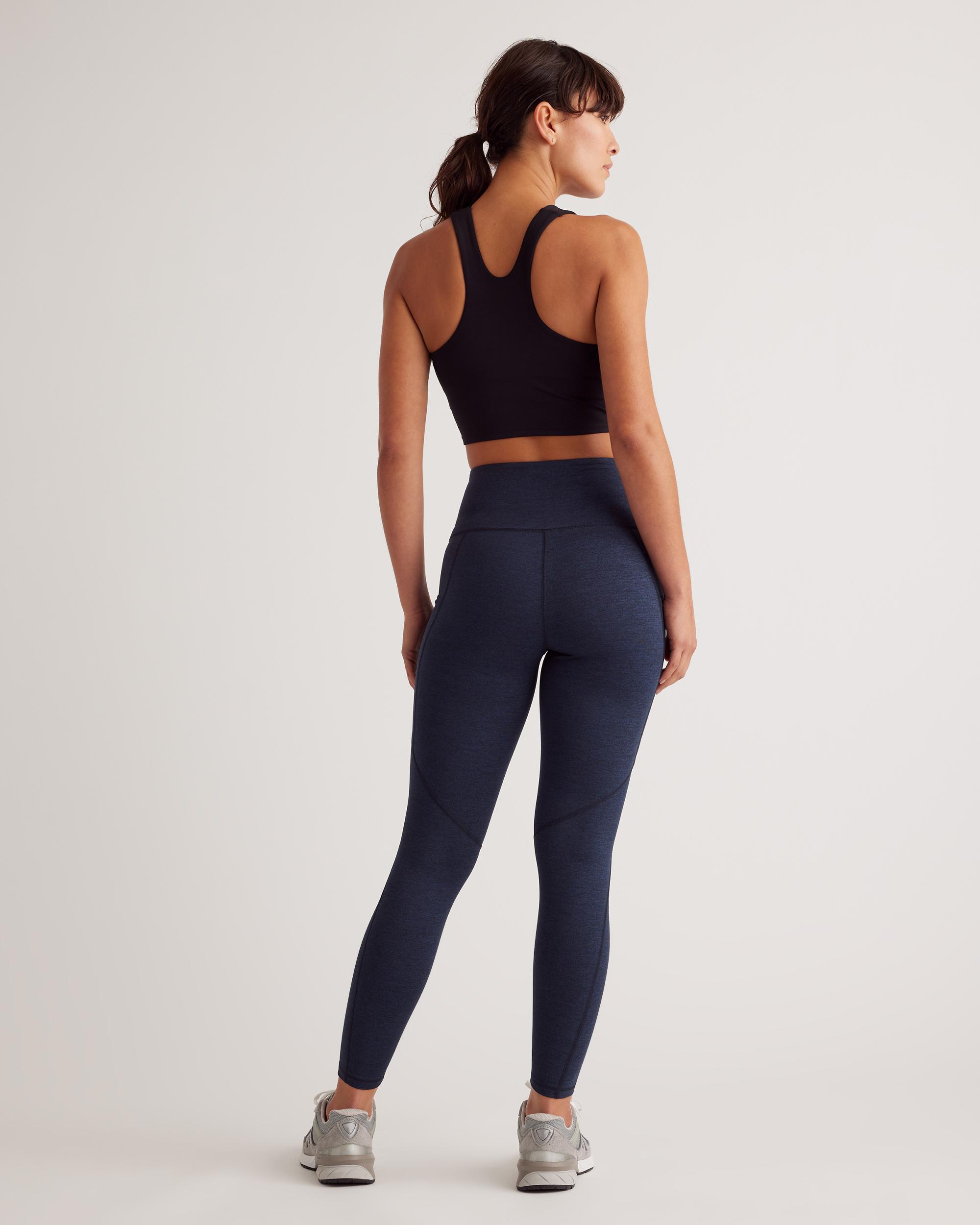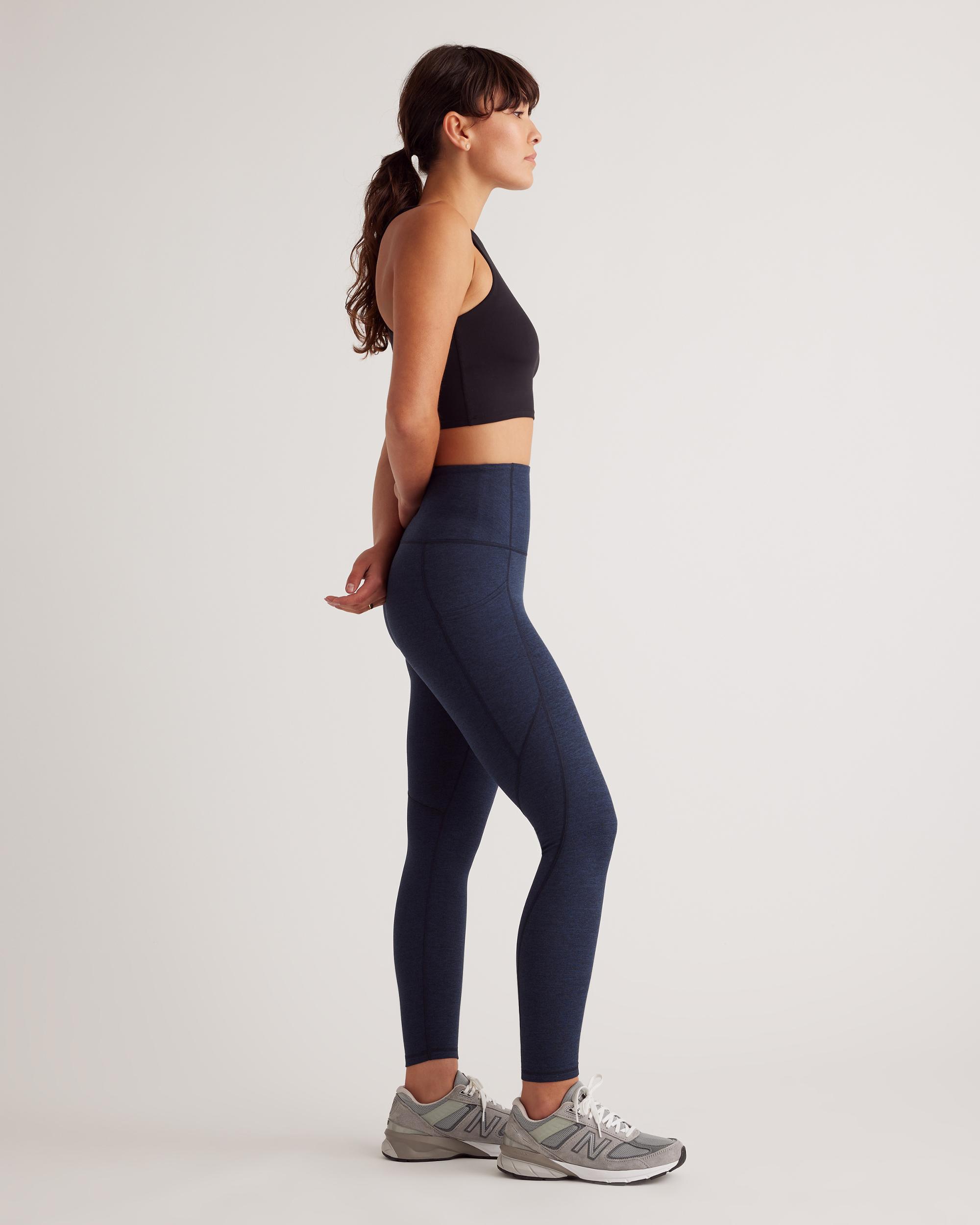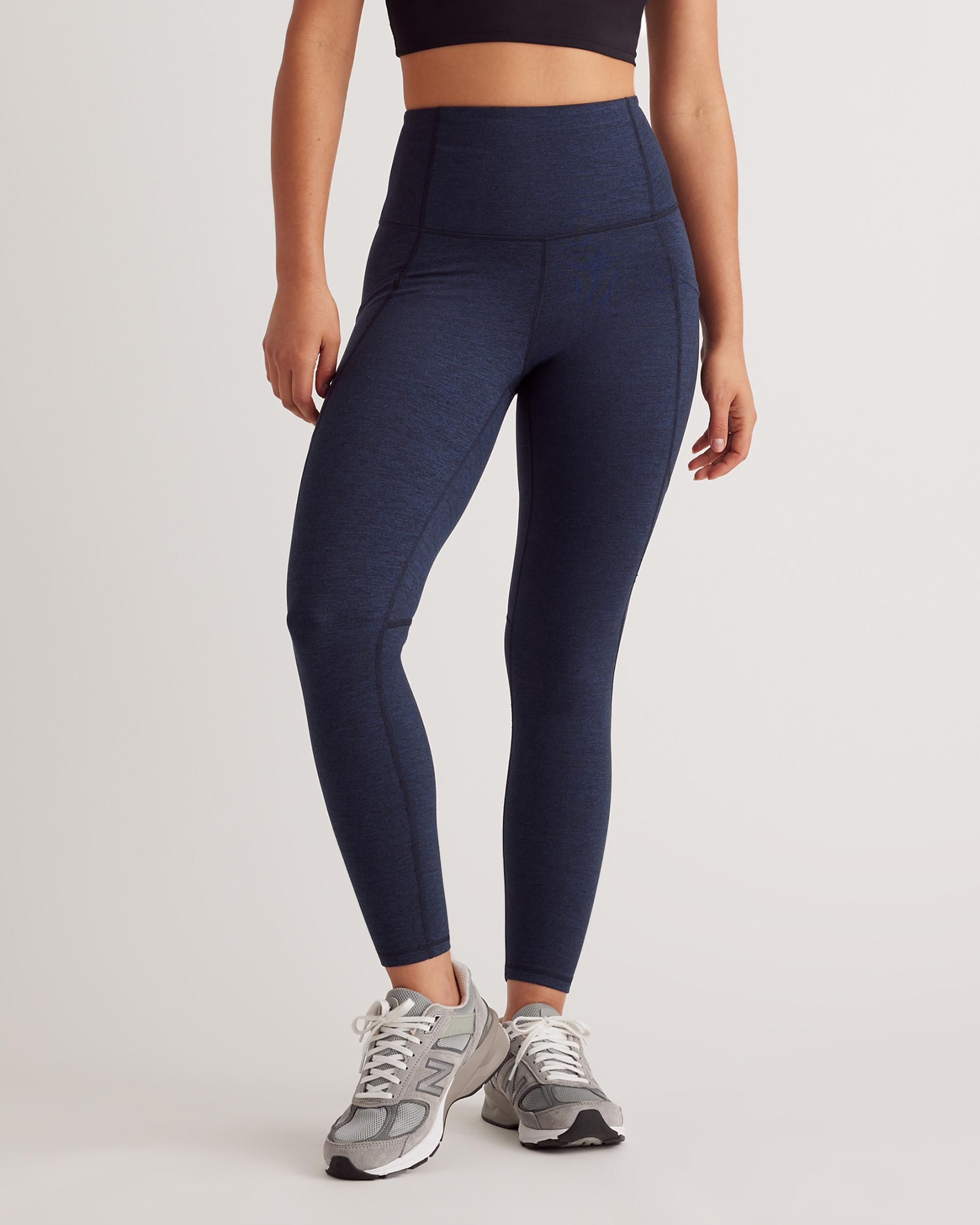 From yoga days to lounge days, our Pocket Leggings are light and breathable, letting you focus on your flow. Moisture-wicking and anti-microbial fabric with the 4-way stretch you love keep you comfortable all day long. Plus, the hidden waistband pocket fits a card or a key for unencumbered outdoor activities. | Quince | Women's Ultra-Soft High-Rise Pocket Legging in Heather Navy, Size Small, 100% Polyester
