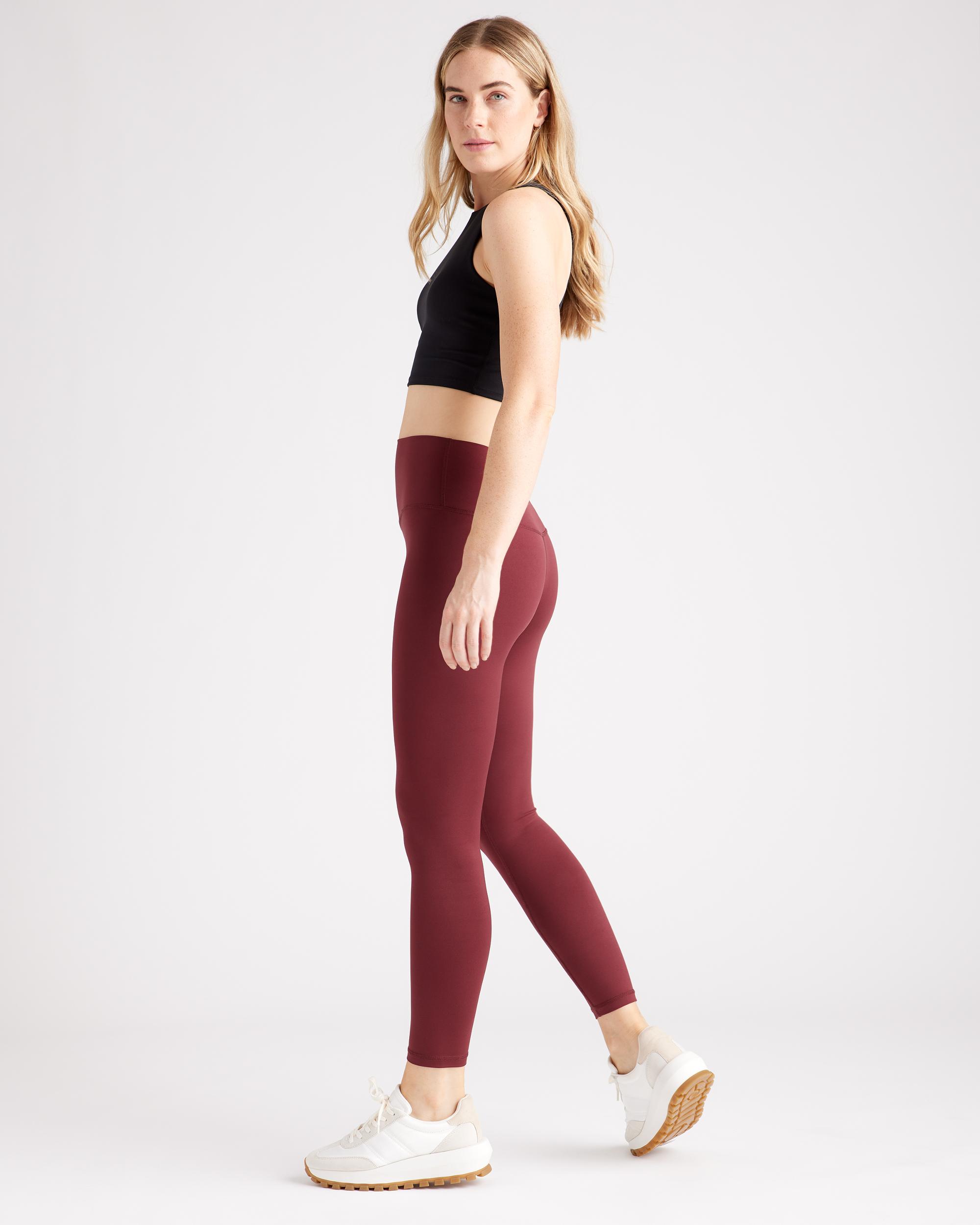 Our Ultra-Soft High-Rise Legging is sure to become your new favorite pair of leggings. These super soft leggings are perfect for yoga classes, low impact exercises and all-day wear. Just because they are soft does not mean they compromise on performance qualities - our Ultra-Soft fabric features moisture-wicking and anti-microbial technology with the 4-way stretch. | Quince | Women's Ultra-Soft Performance Leggings in Burgundy, Size XL, Recycled Polyester