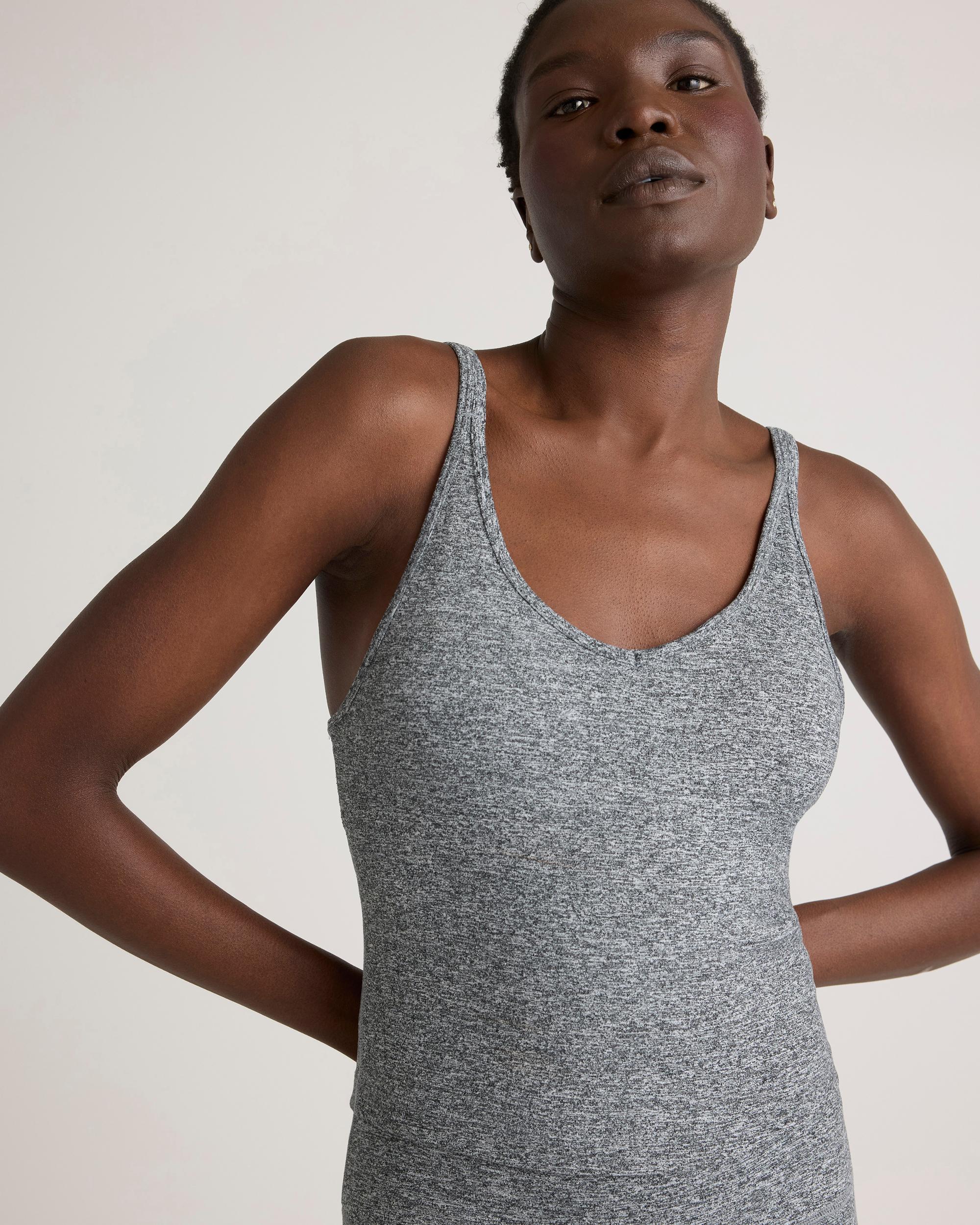 Meet your new favorite activewear. Our signature Ultra-Soft fabric is anti-bacterial, sweat-wicking, and has a supportive 4-way stretch you’ll never want to take off. Fit to pair perfectly back to our Ultra-Form Side Slit Skort or Ultra-Form High-Rise Leggings, this strappy cropped tank is sure to become a workout workhorse. | Quince | Women's Ultra-Soft Strappy Cropped Tank Top in Heather Grey, Size XS, Polyester