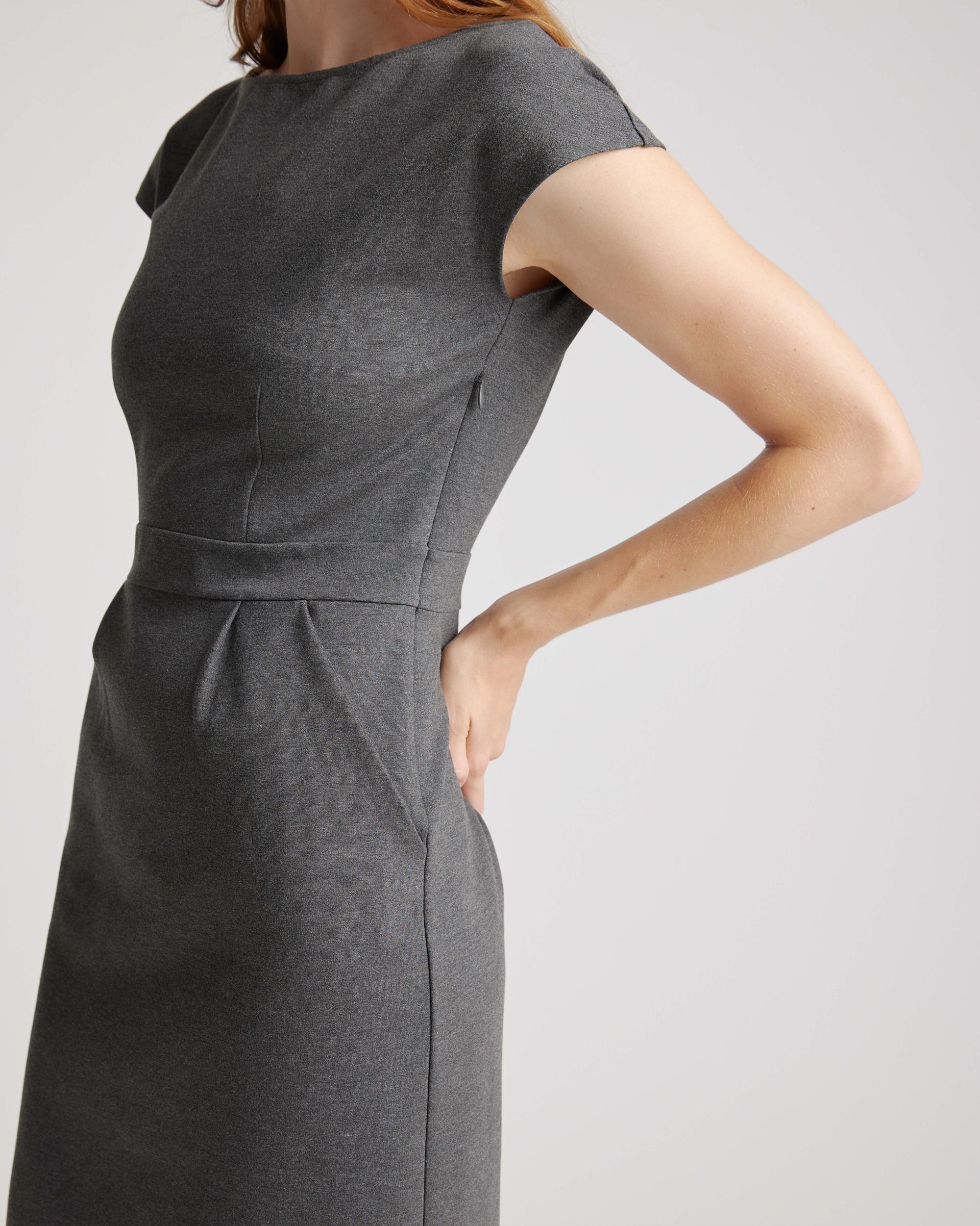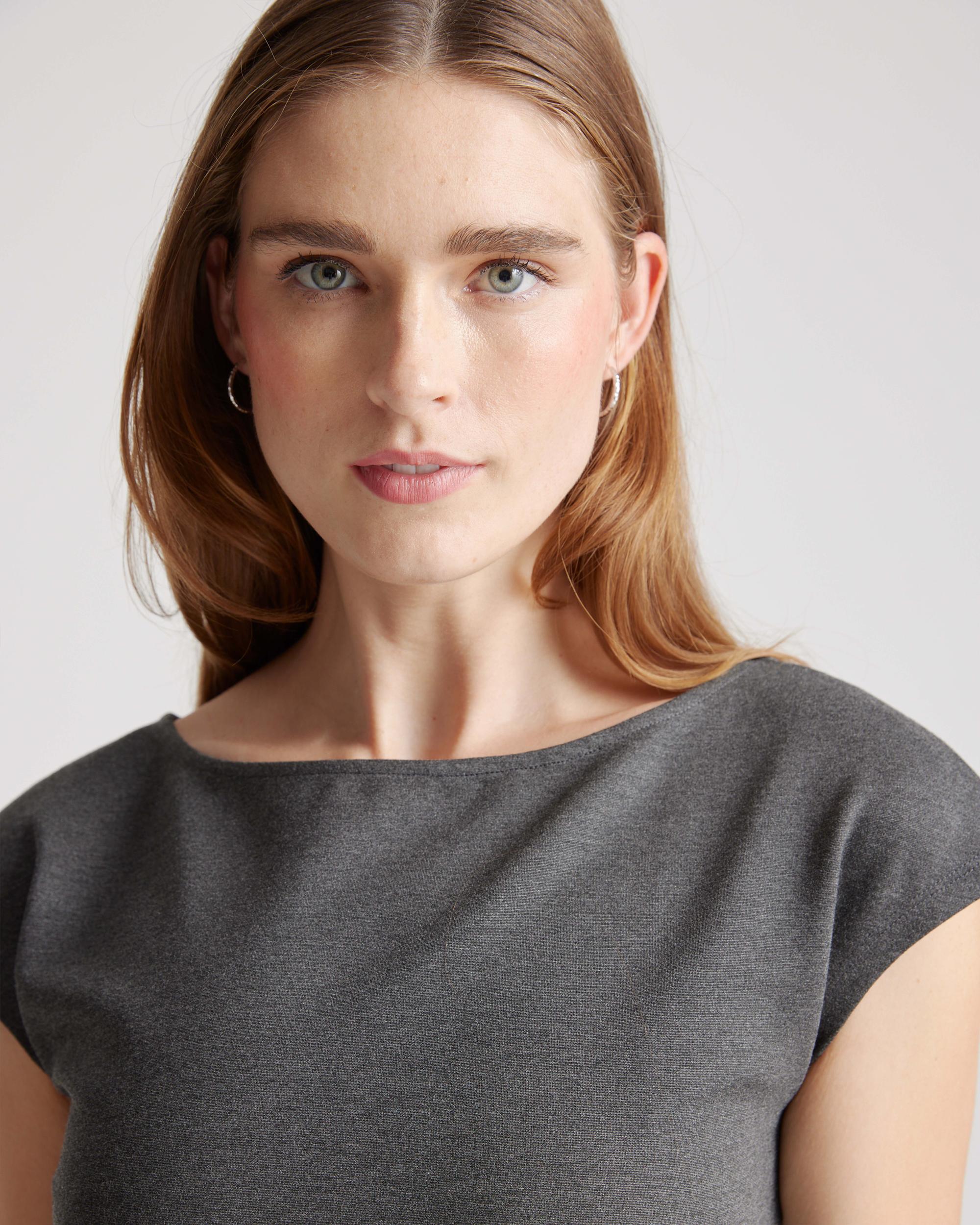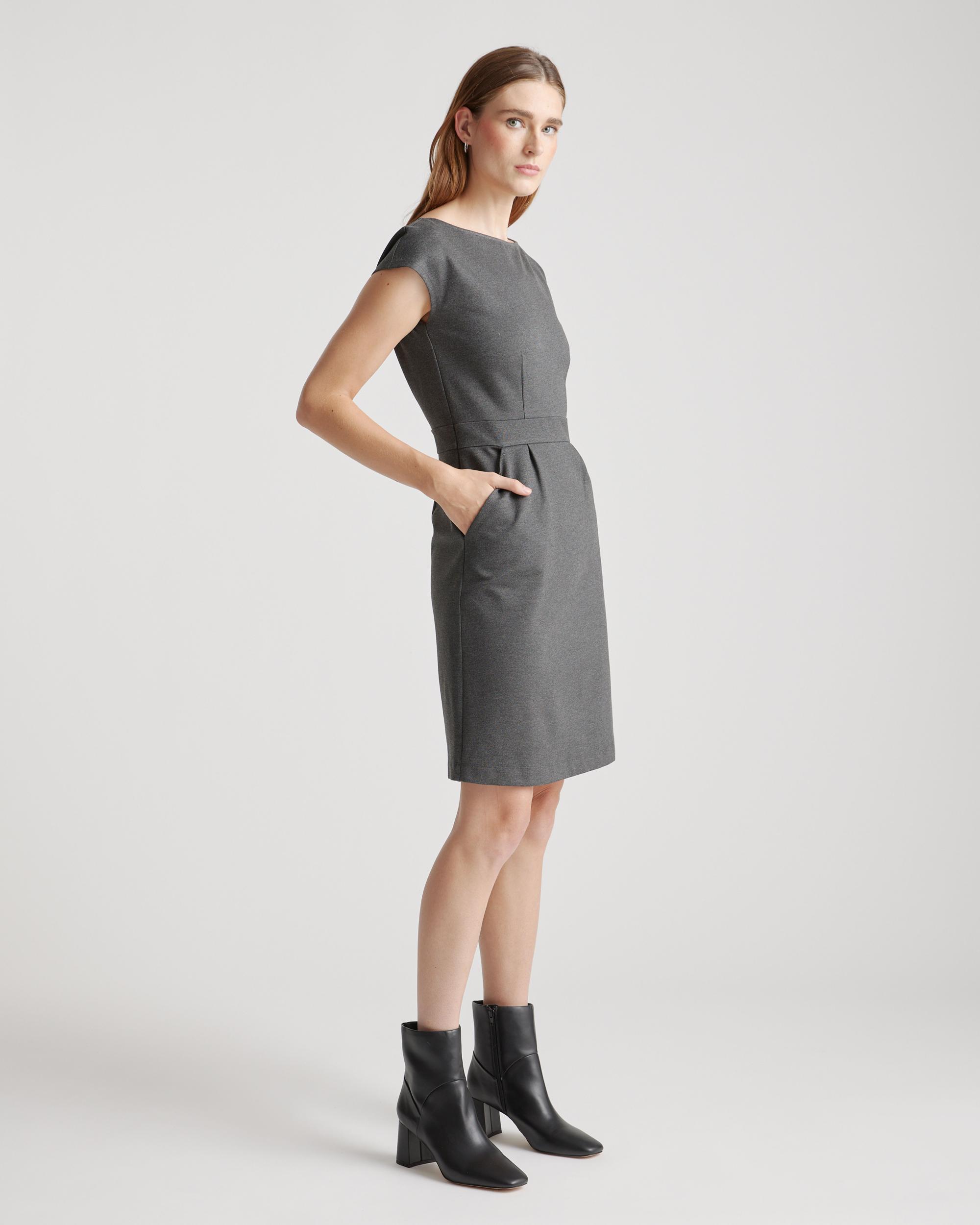 Ready to go for work or date night, this simple-yet-elegant cap sleeve dress is part of our best-selling ponte collection. You’ll feel like a boss thanks to the smooth, streamlined fit of our thick, stretchy knit fabric that’s as comfortable as it is alluring. And it looks great dressed up or down. | Quince | Women's Ultra-Stretch Ponte Cap Sleeve Dress in Charcoal, Size XS, Rayon