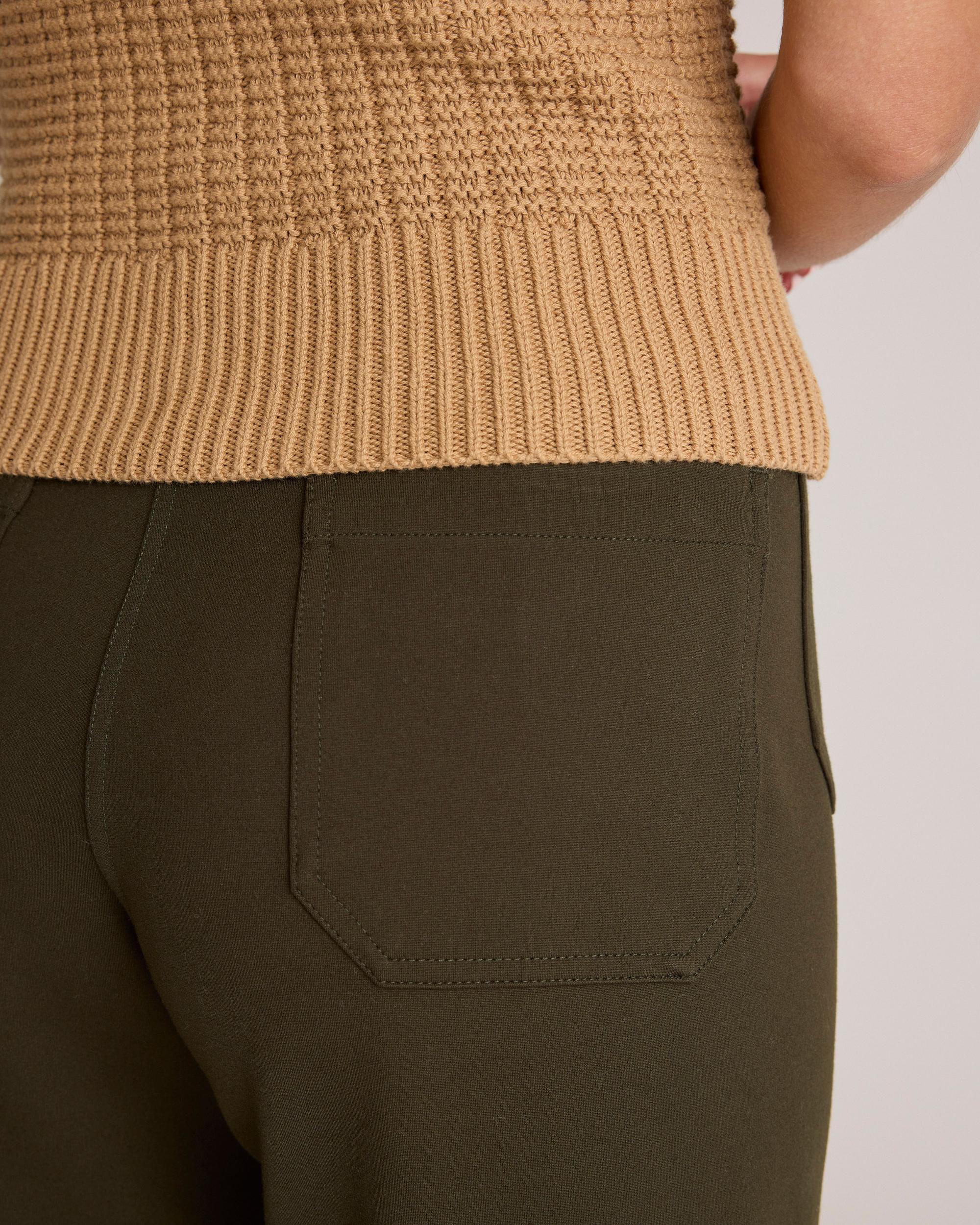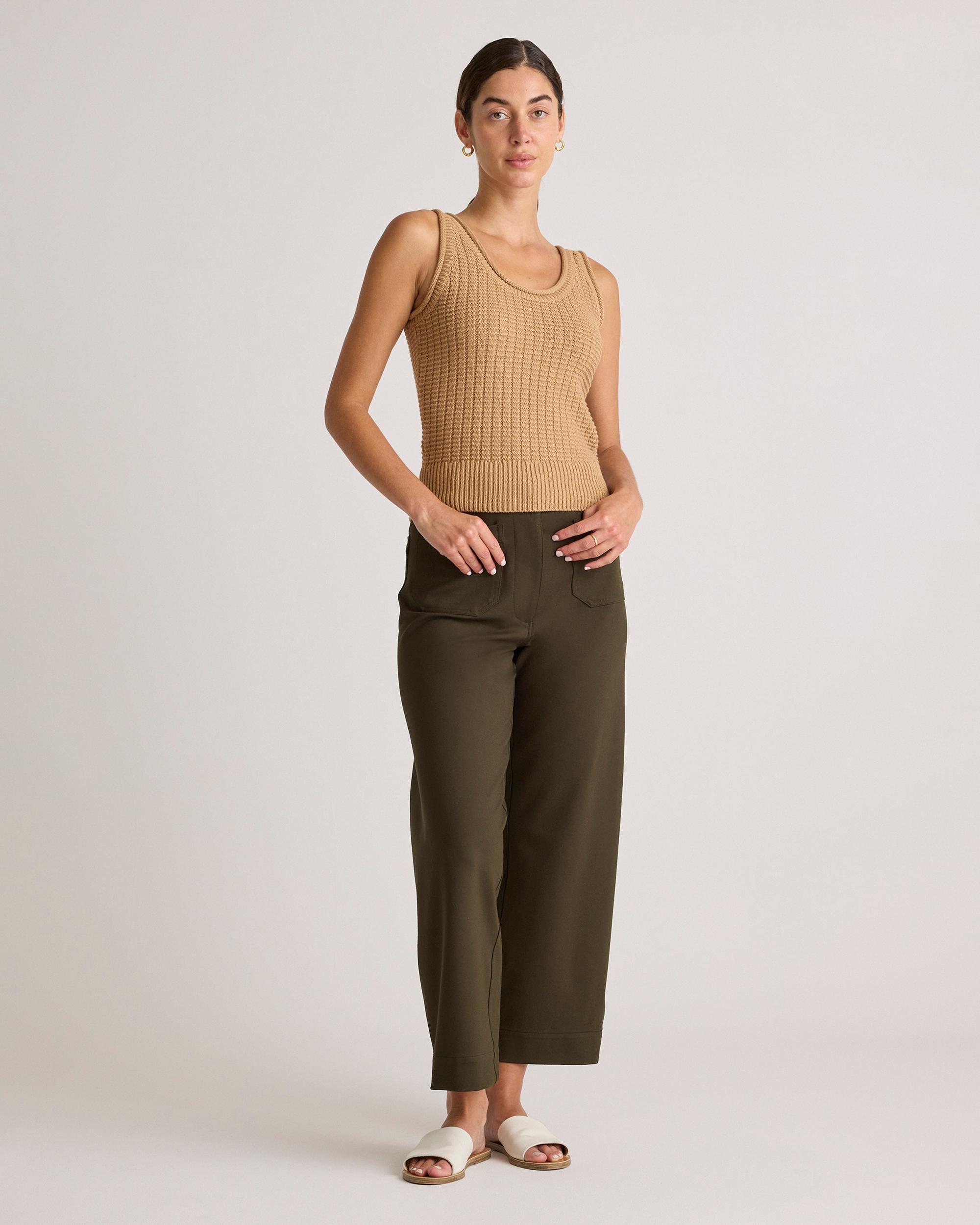 What do you get when you blend classic comfort and effortless style? These pants, of course. Designed with a double-knit, super-stretchy ponte fabric, they move with you and feel amazing. They’re also super versatile and can flex for work or the weekend. Plus the cropped length shows off your favorite kicks. They’re sure to become a new wardrobe workhorse. Looking for something longer? Check out our Ultra-Stretch Ponte Super Wide Leg Pant | Quince | Women's Ultra-Stretch Ponte Cropped Wide Leg Pants in Olive, Size 4, Rayon