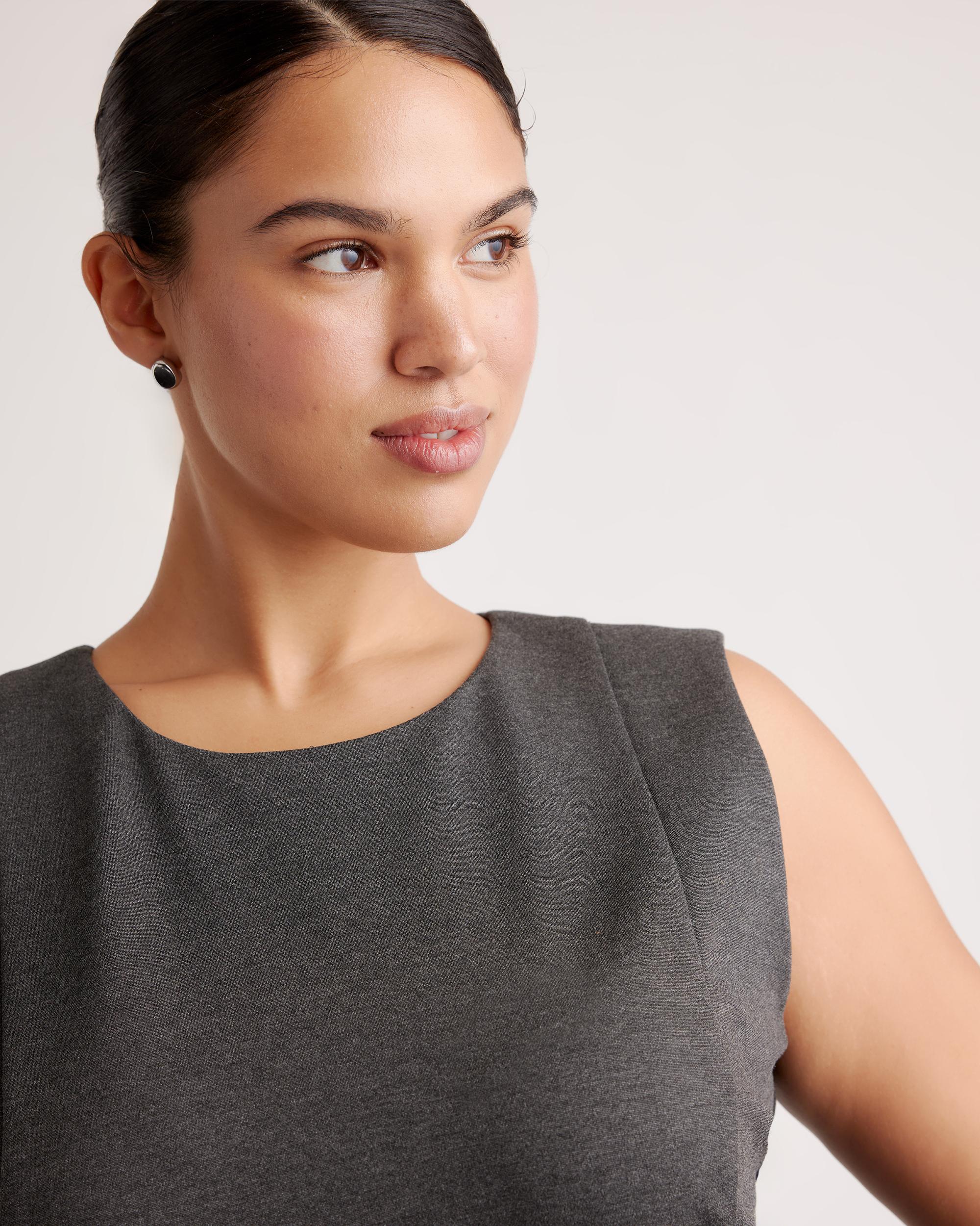This dress, though. When it comes to something that's super versatile and never going to go out of style, it's all about our Ultra-Stretch Ponte Sleeveless Dress. Made from high-quality double knit ponte fabric, it's stretchy but still polished. We're thinking a day at the office and then a few hours out on the town...because we never want to take it off. If you love this one, you'll also want to check out the Ultra-Stretch Ponte Cap Sleeve Dress version, too. | Quince | Women's Ultra-Stretch Ponte Sleeveless Dress in Charcoal, Size Large, Rayon