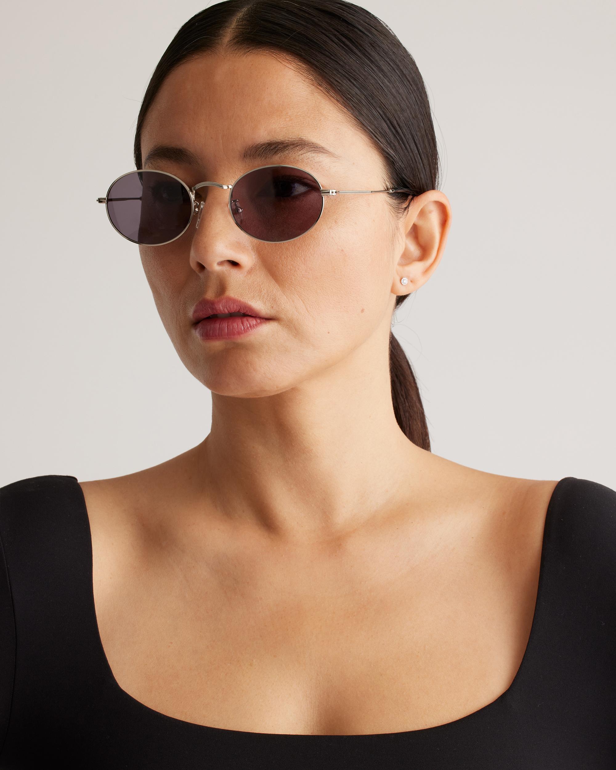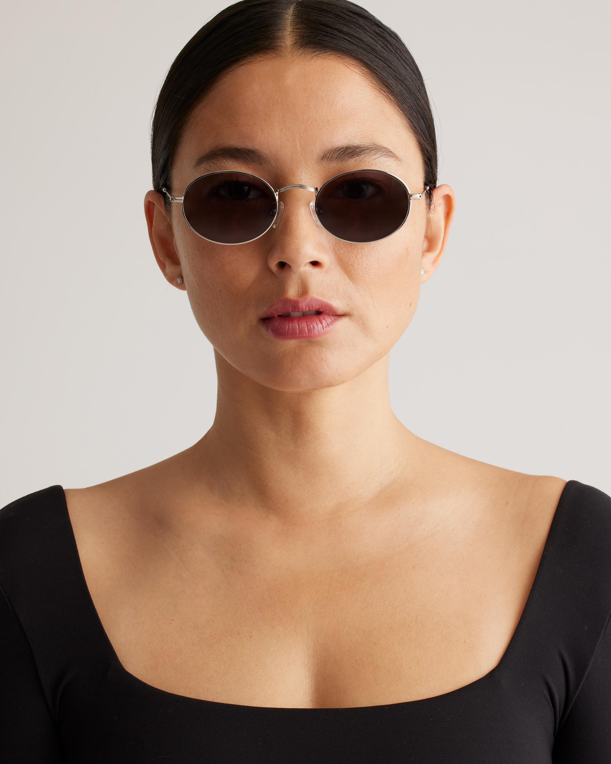 With a nod to iconic 90s style, our Venice Polarized Stainless Steel Sunglasses are the perfect tribute to retro eyewear. They’re lightweight for all-day comfort, and because they’re polarized, they’ll protect your eyes from glare. Made with a durable stainless steel frame, they're also designed to block 99% of reflecting light and 100% of UV light. | Quince | Women's Venice Polarized Stainless Steel Sunglasses in Silver with Grey lens, Size Standard, Cellulose Acetate