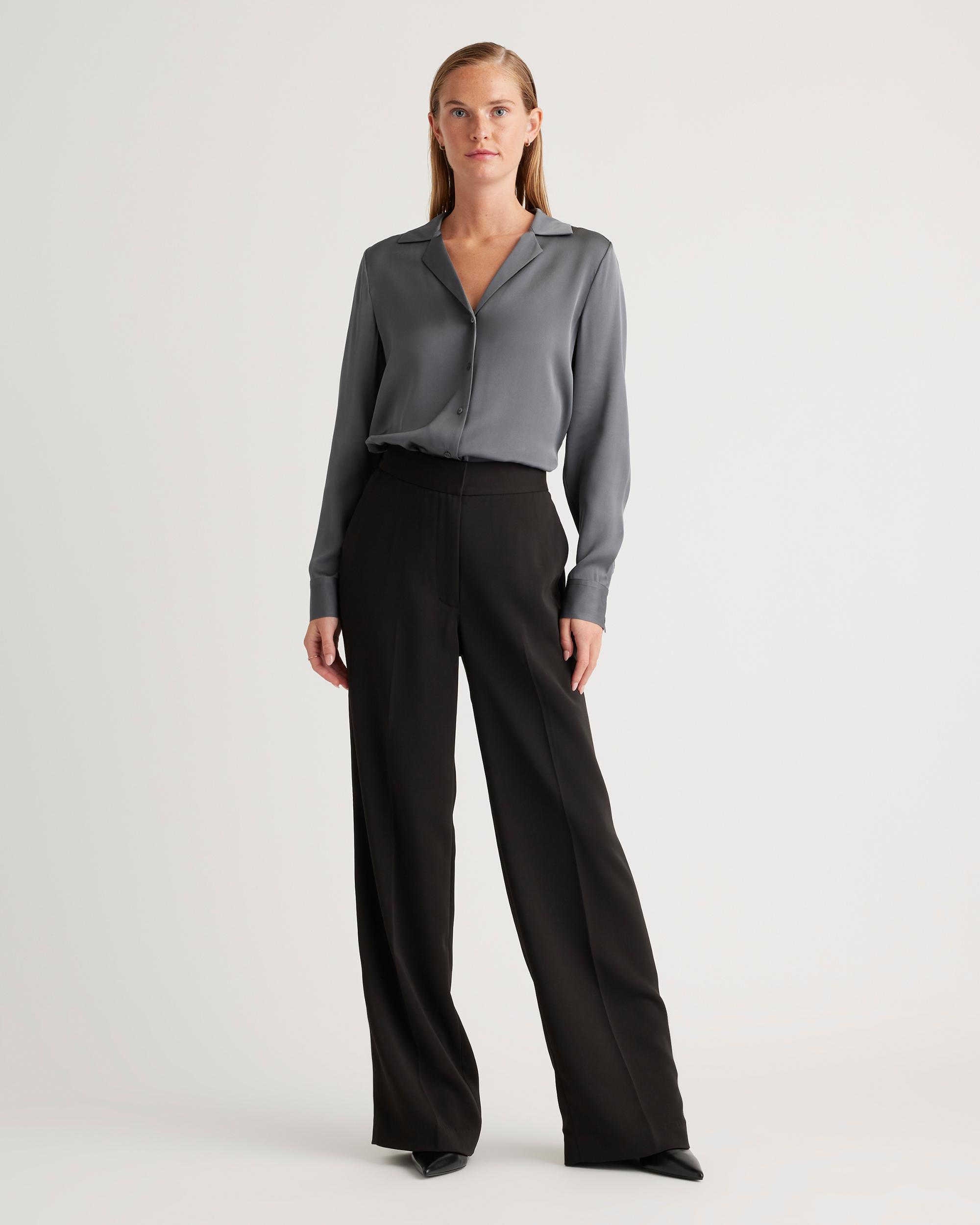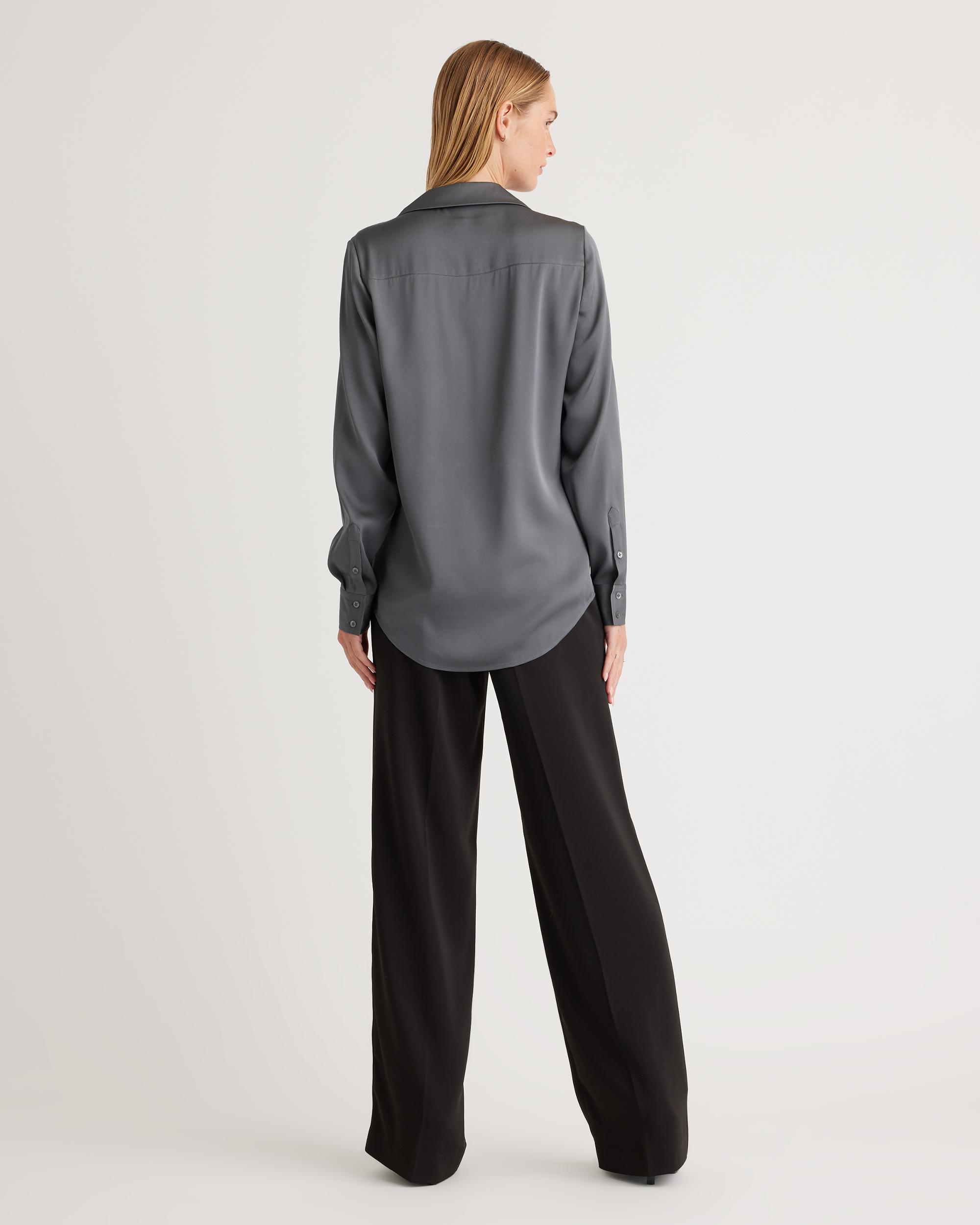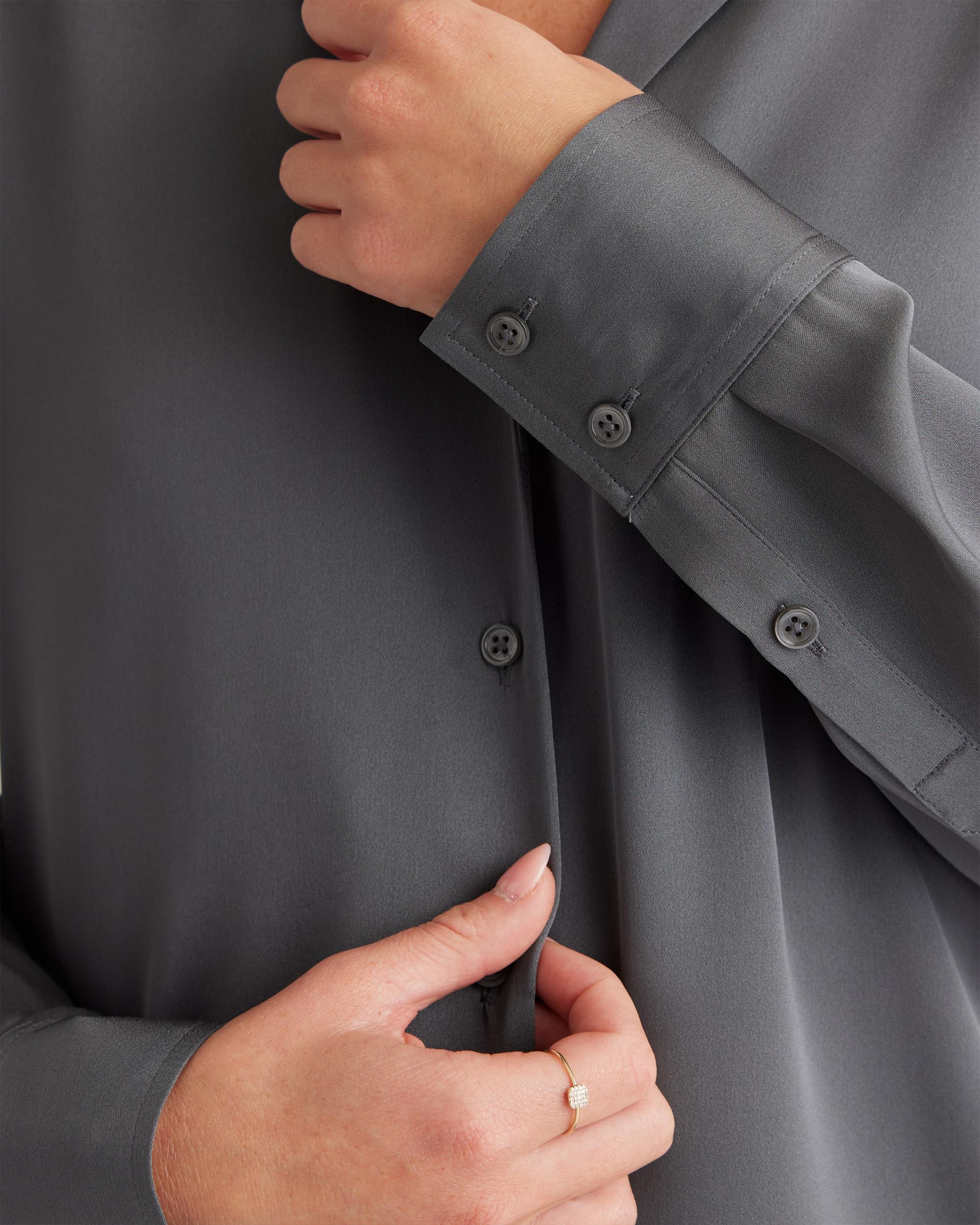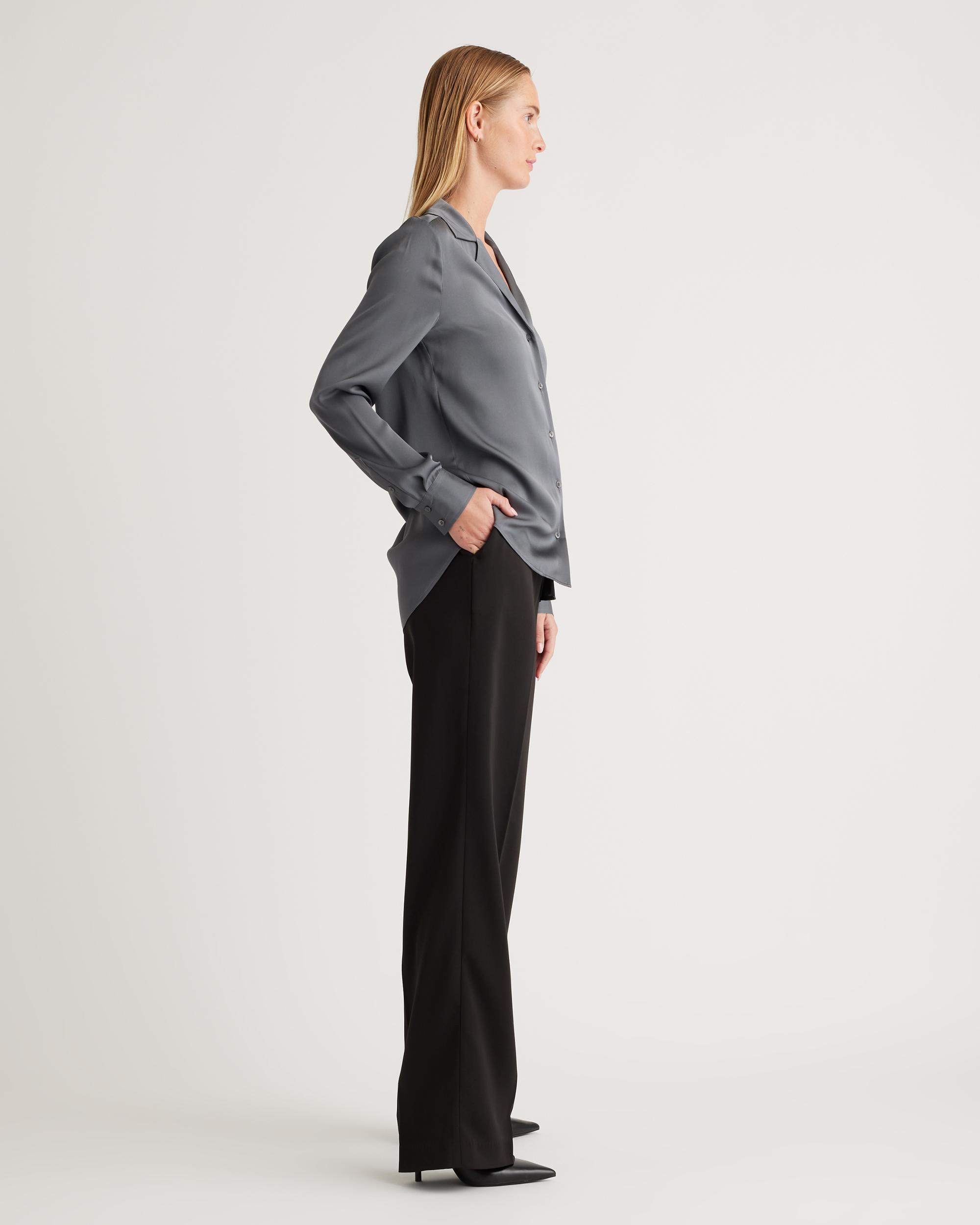 Take your collared look up a notch. We made this notch collar blouse with a relaxed, slim fit with a clean and crisp look for an everyday appeal. Perfectly made to be layered or worn solo. Plus, silk fiber contains 18 kinds of amino acids that make it amazing for skin nourishment, hypo-allergenic, and naturally thermoregulating to help maintain body temperature. Also offered in sizes 1X-3X. | Quince | Women's Washable Stretch Silk Notch Collar Blouse in Lava Smoke, Size XS