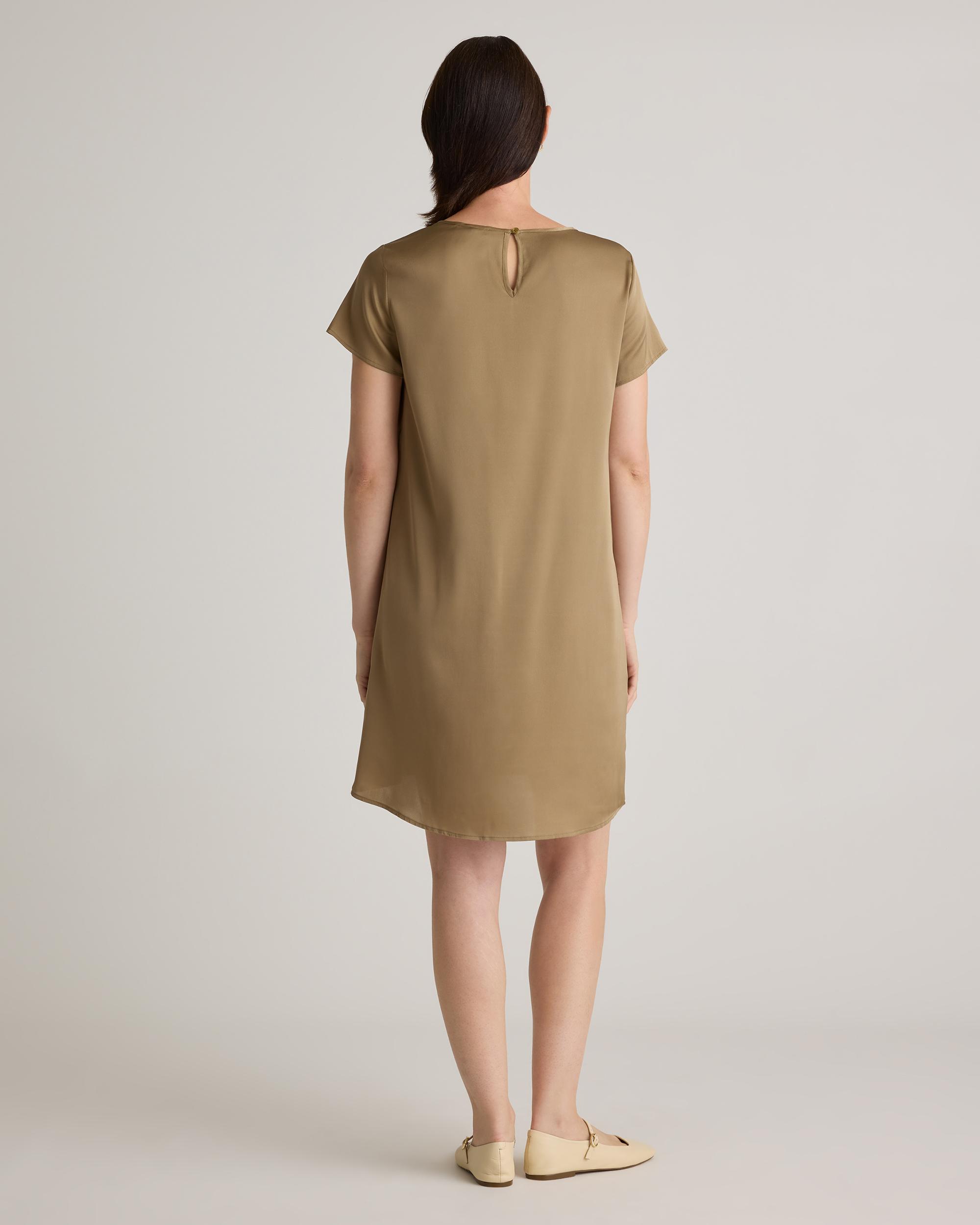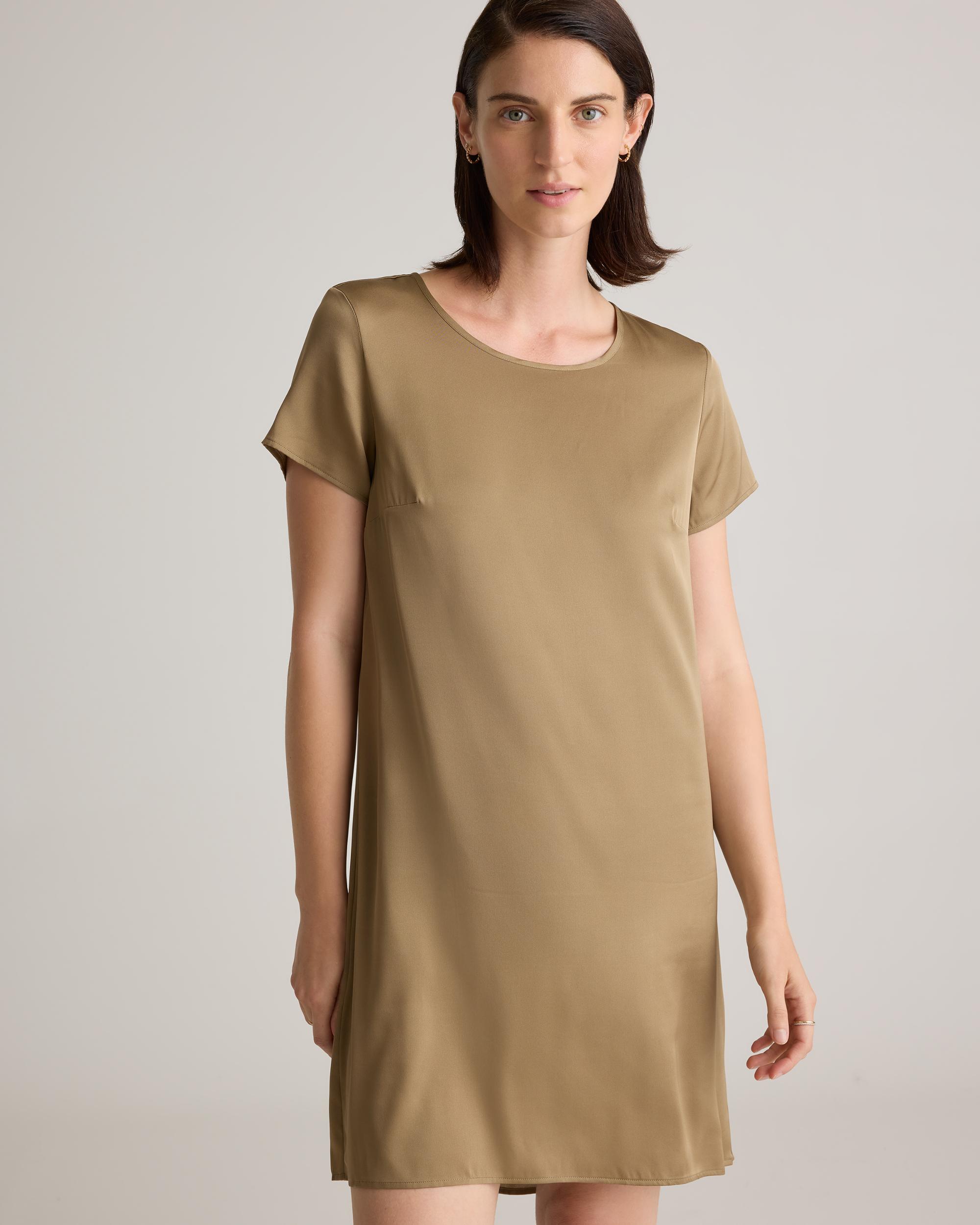 Slinky, simple and versatile. Always chic, never fussy, this dress is an easy win every time. Made from mulberry silk with a little stretch, our silk is washable for low-maintenance ease. Plus, silk fiber contains 18 kinds of amino acids that make it amazing for skin nourishment, hypo-allergenic, and naturally thermoregulating to help maintain body temperature. | Quince | Women's Washable Stretch Silk T-Shirt Dress in Dogwood, Size Small