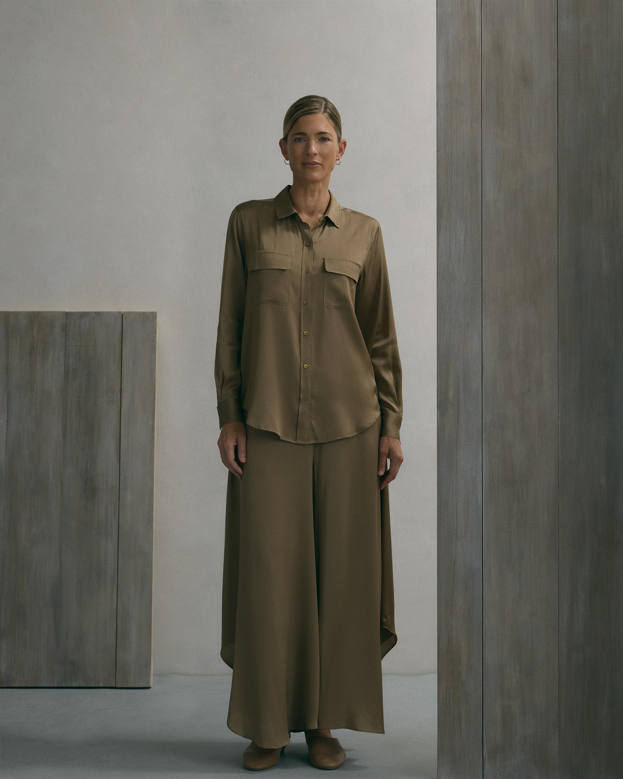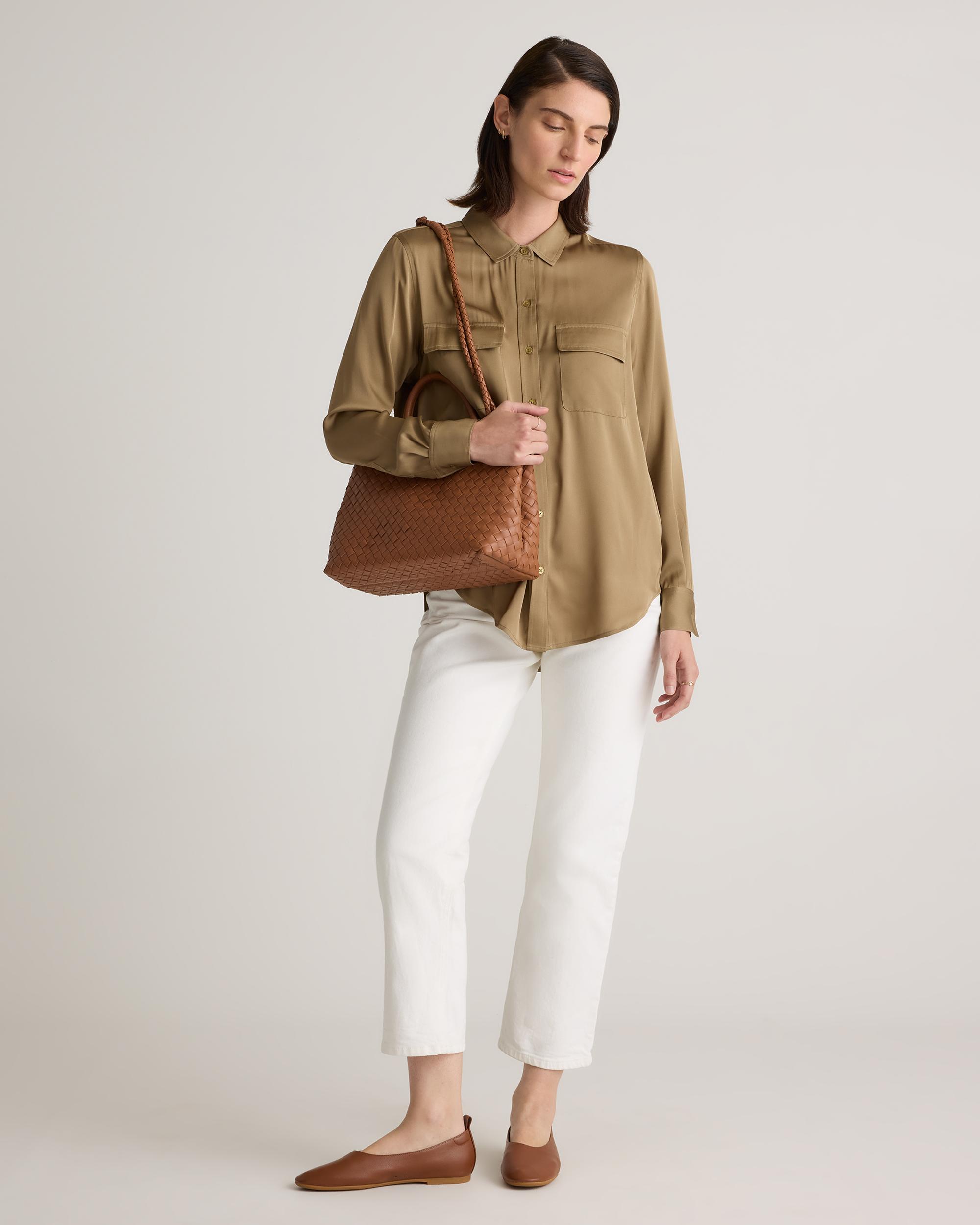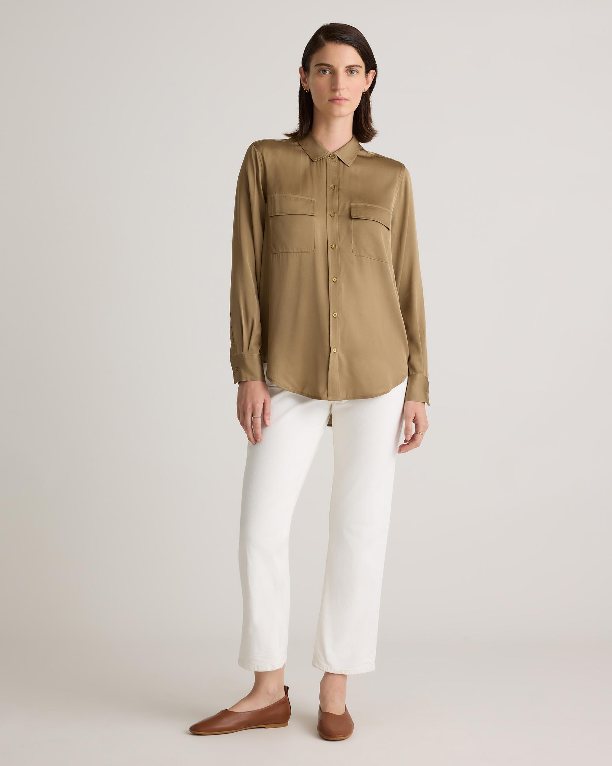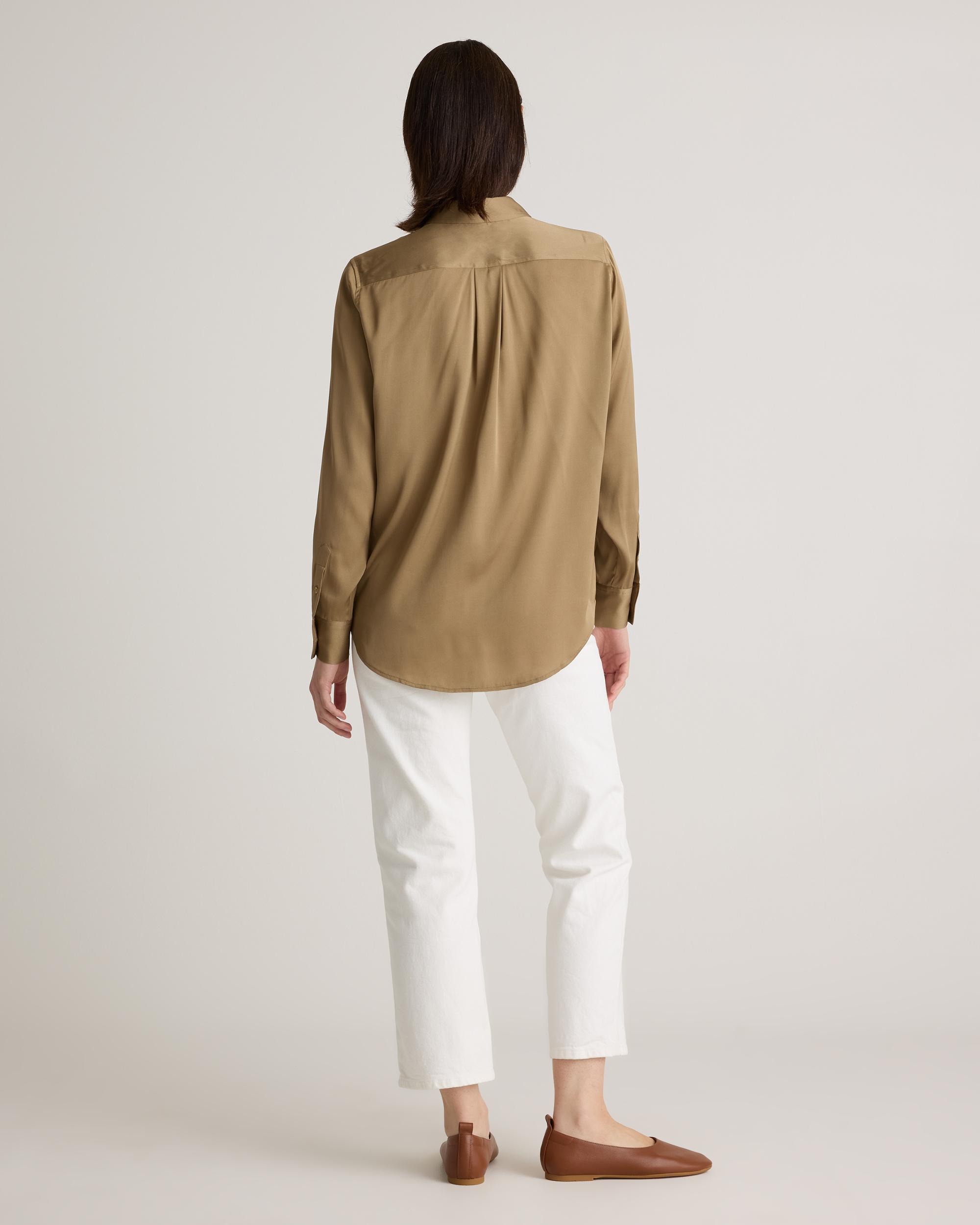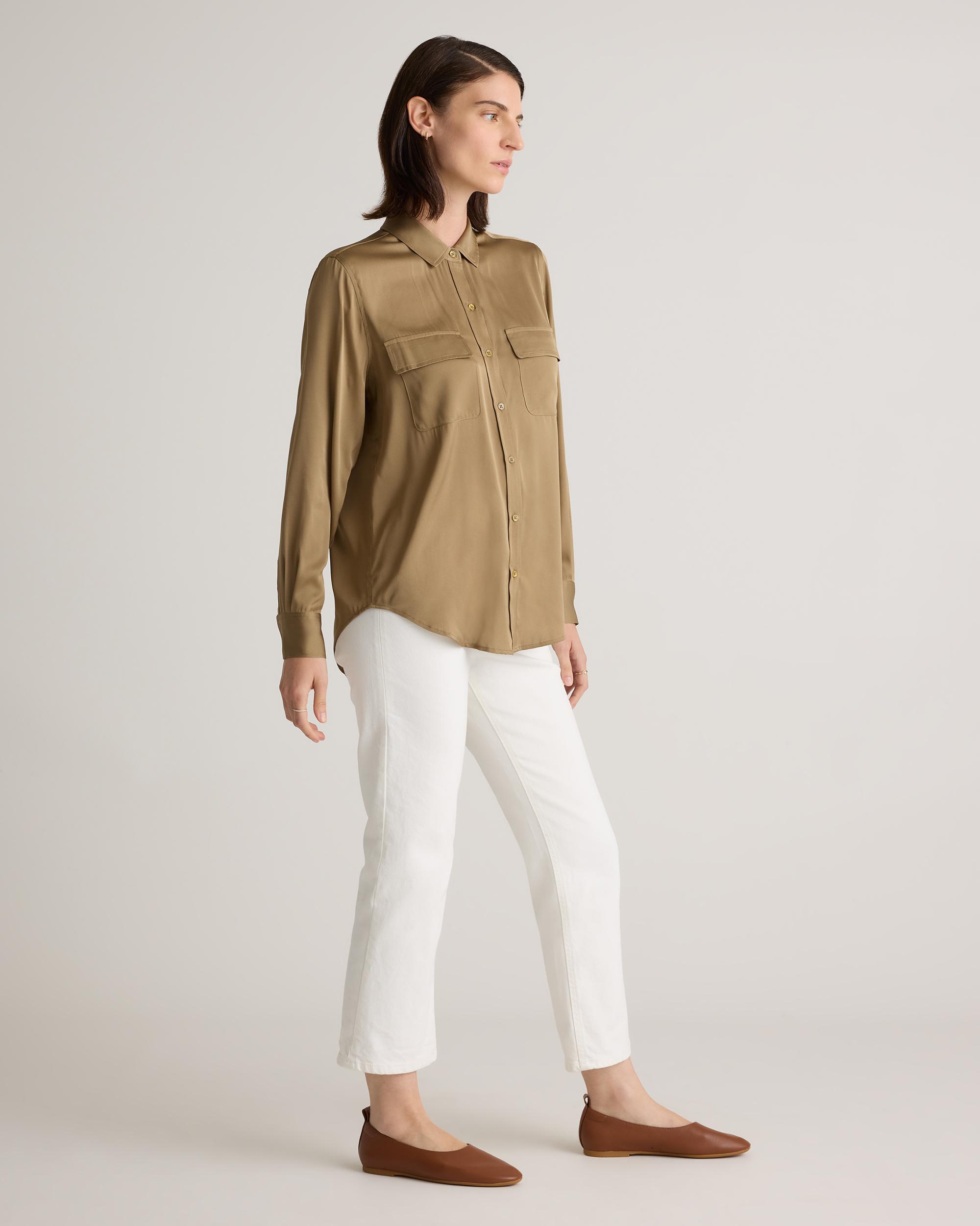 Add extra versatility to your wardrobe with our Washable Stretch Silk Utility Long Sleeve Blouse. This classic shirt features two patch pockets and is made from soft, super luxe mulberry silk. It's a look you can layer, wear solo, tuck in, tie at the hem—the options go on. Let's see how you put your spin on it. | Quince | Women's Washable Stretch Silk Utility Long Sleeve Blouse in Dogwood, Size Small