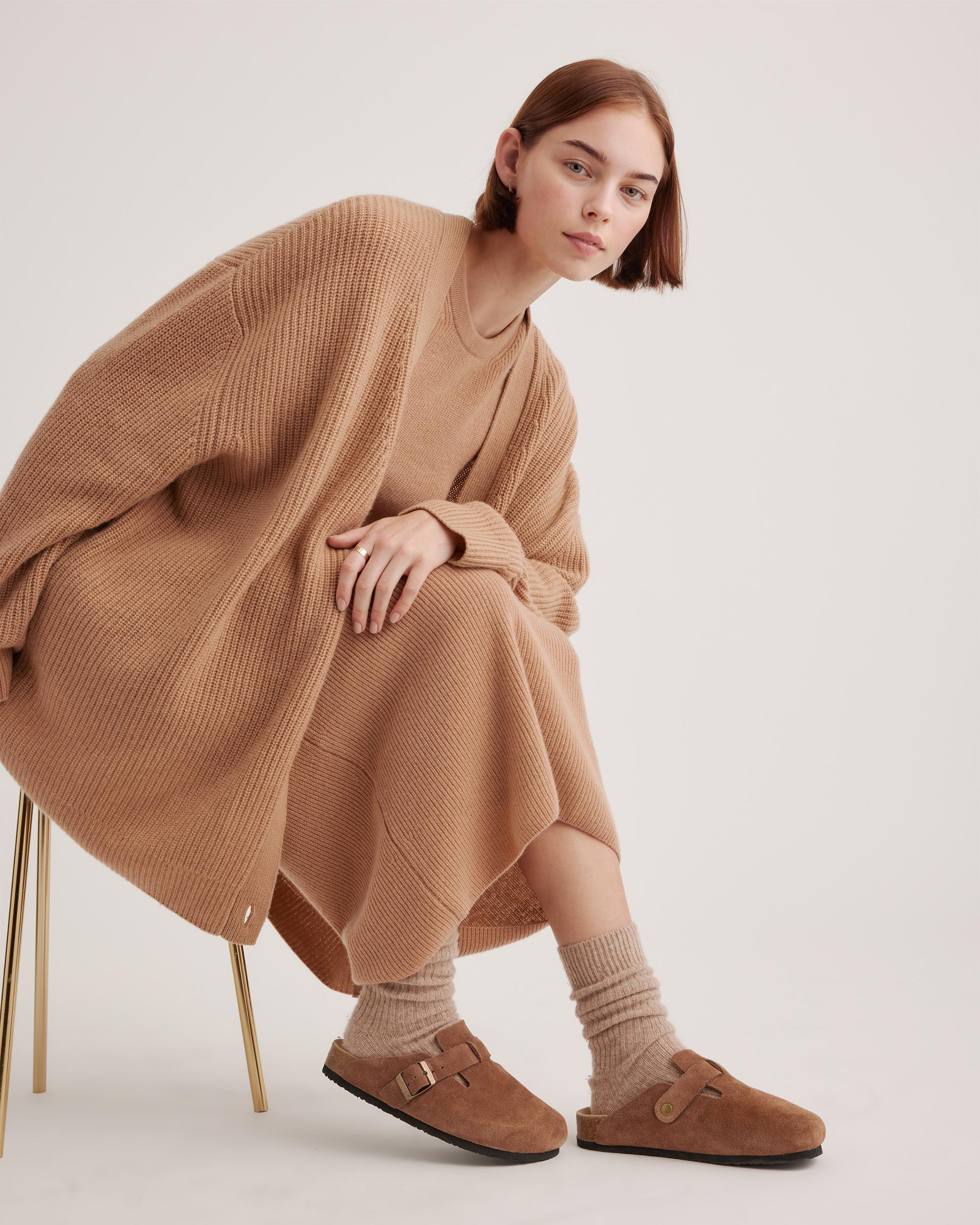 This shoe's not afraid of a little drizzle in the forecast. Our Water Repellent Suede Clog Mule is easy to love—it's lightweight, easy to slip on and off, and crafted from luxe suede with a cushy foam insole. And one more thing...the leather comes from an eco-minded tannery and was ethically crafted. So comfy feet aren't the only thing you can feel good about. | Quince | Women's Water Repellent Suede Clog Mule in Cafe, Size 9, Leather