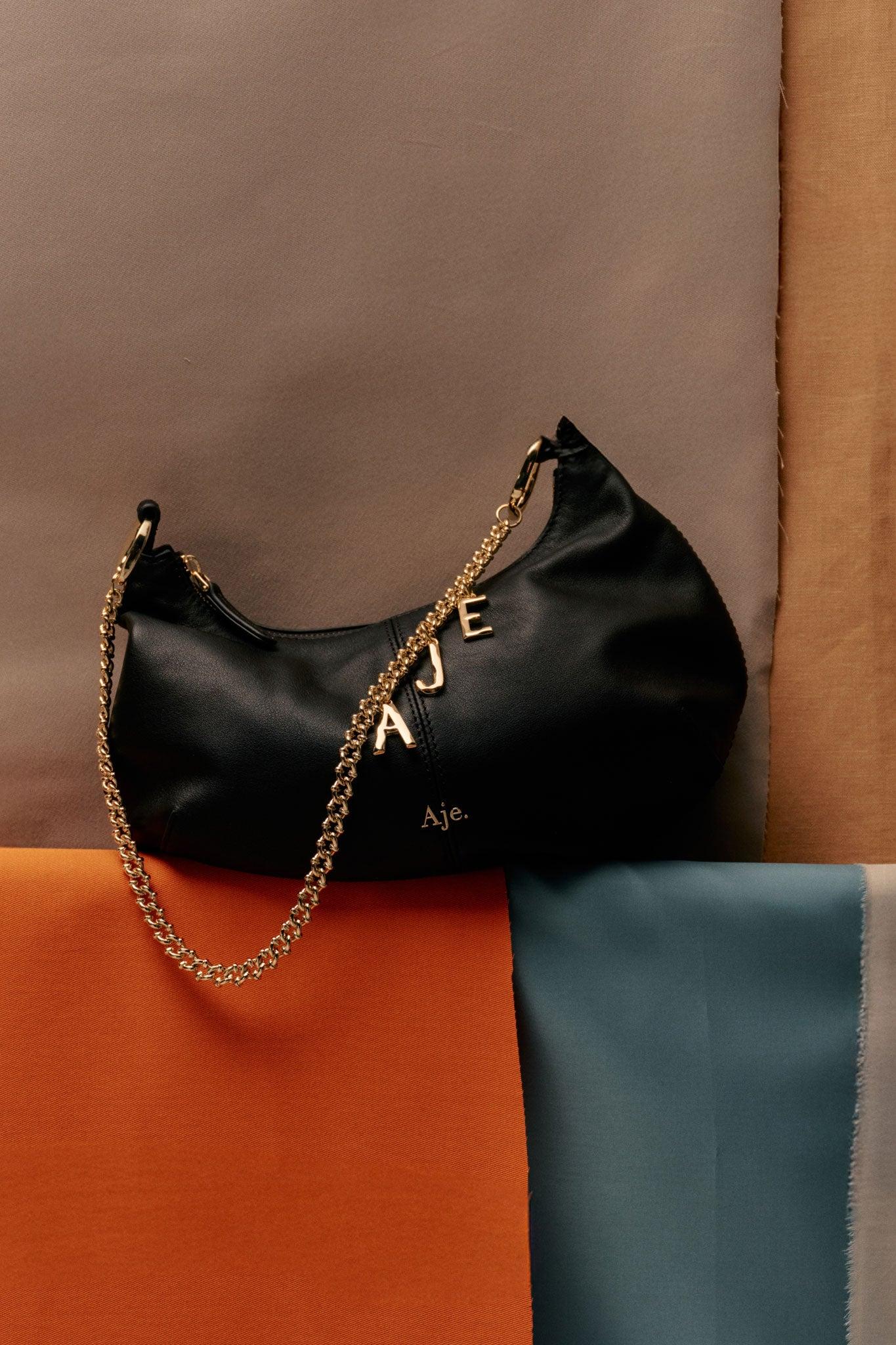 PRODUCT DETAILS Leather crossbody bag Leather shoulder strap Chain strap with logo charms Main compartment with internal slide pocket Vegan leather lining Main:...