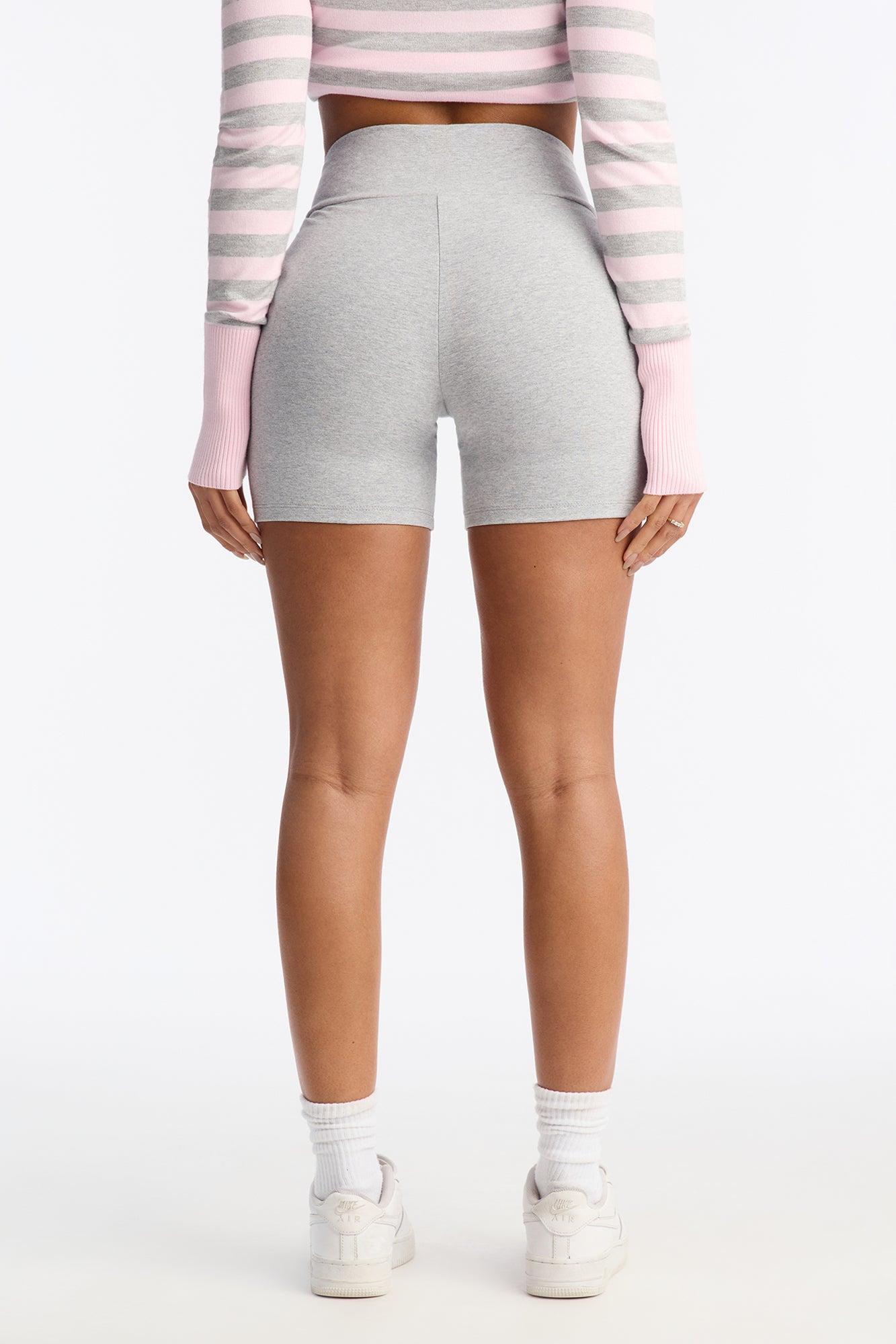 Quinn Mid Rise Everyday Cotton Biker Short 5″ - Heather Grey Female