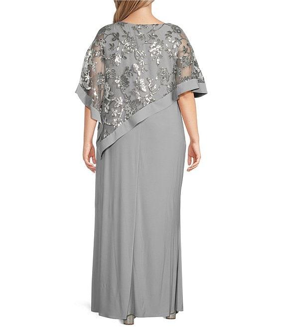 R & M Richards Plus Size Side Slit Sequin Lace Poncho Dress